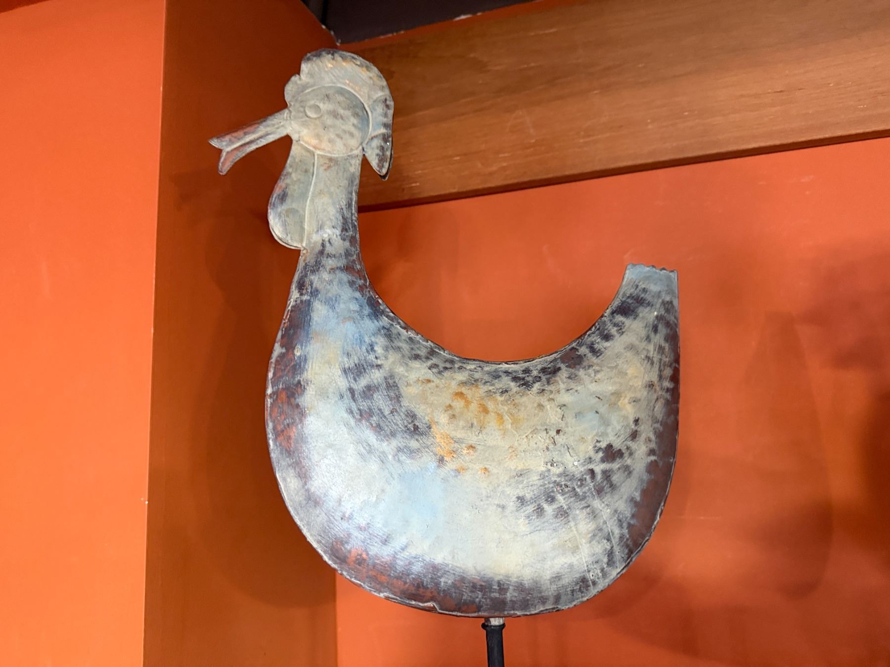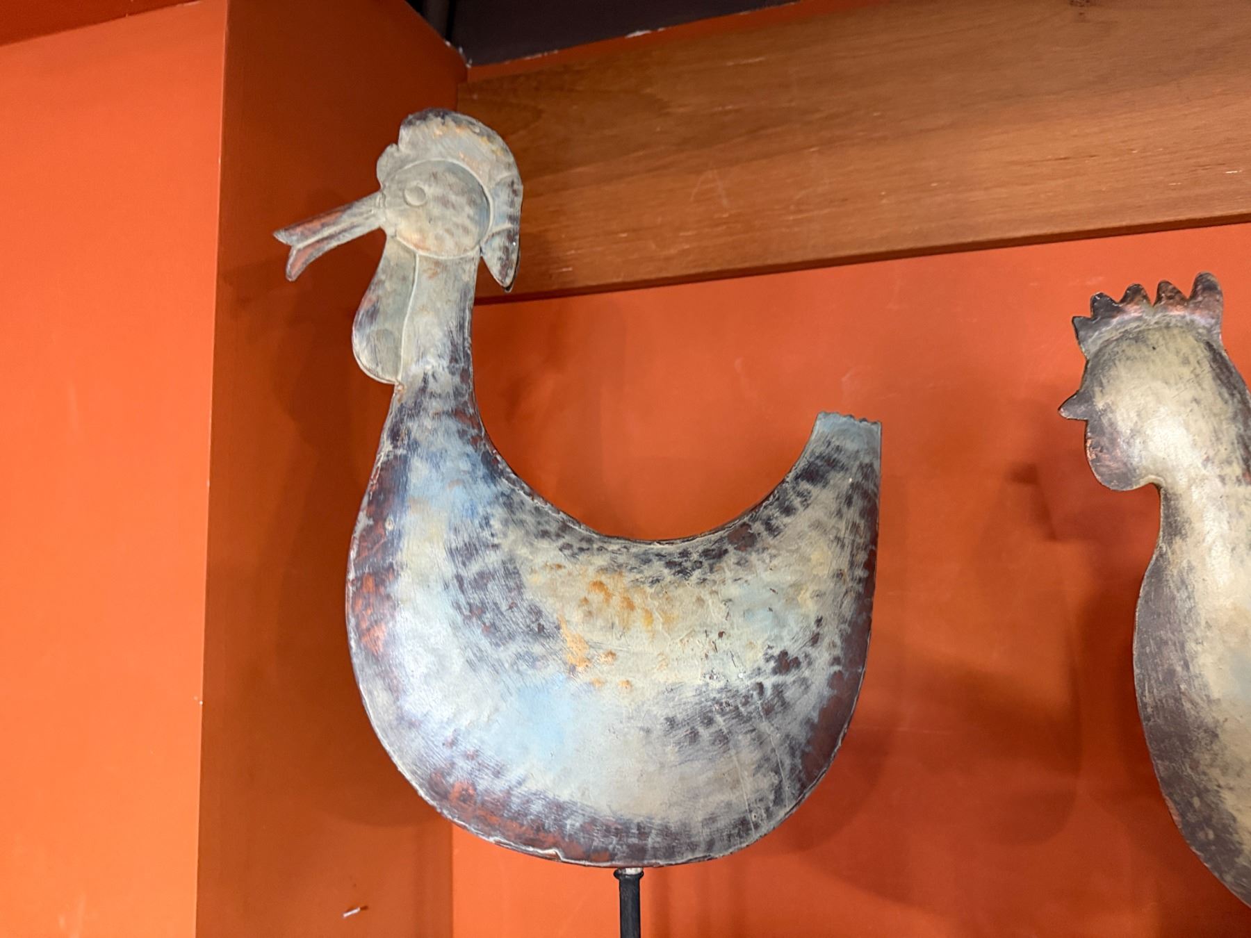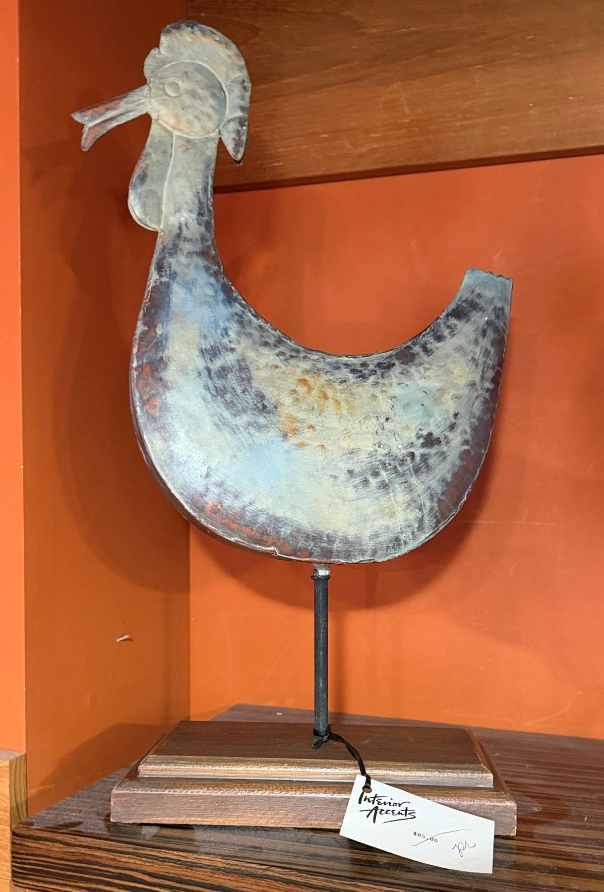 Lot 86 Metal Chicken Weathervane Sculpture on Wooden Base 21"H