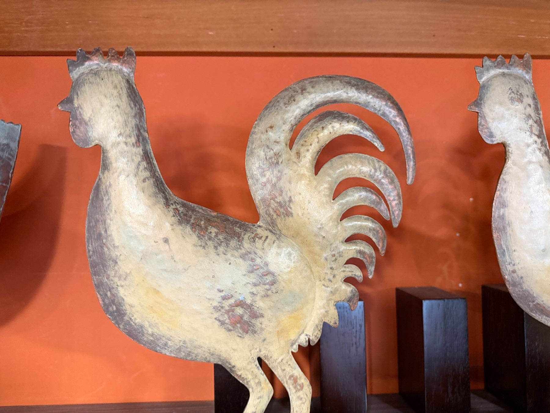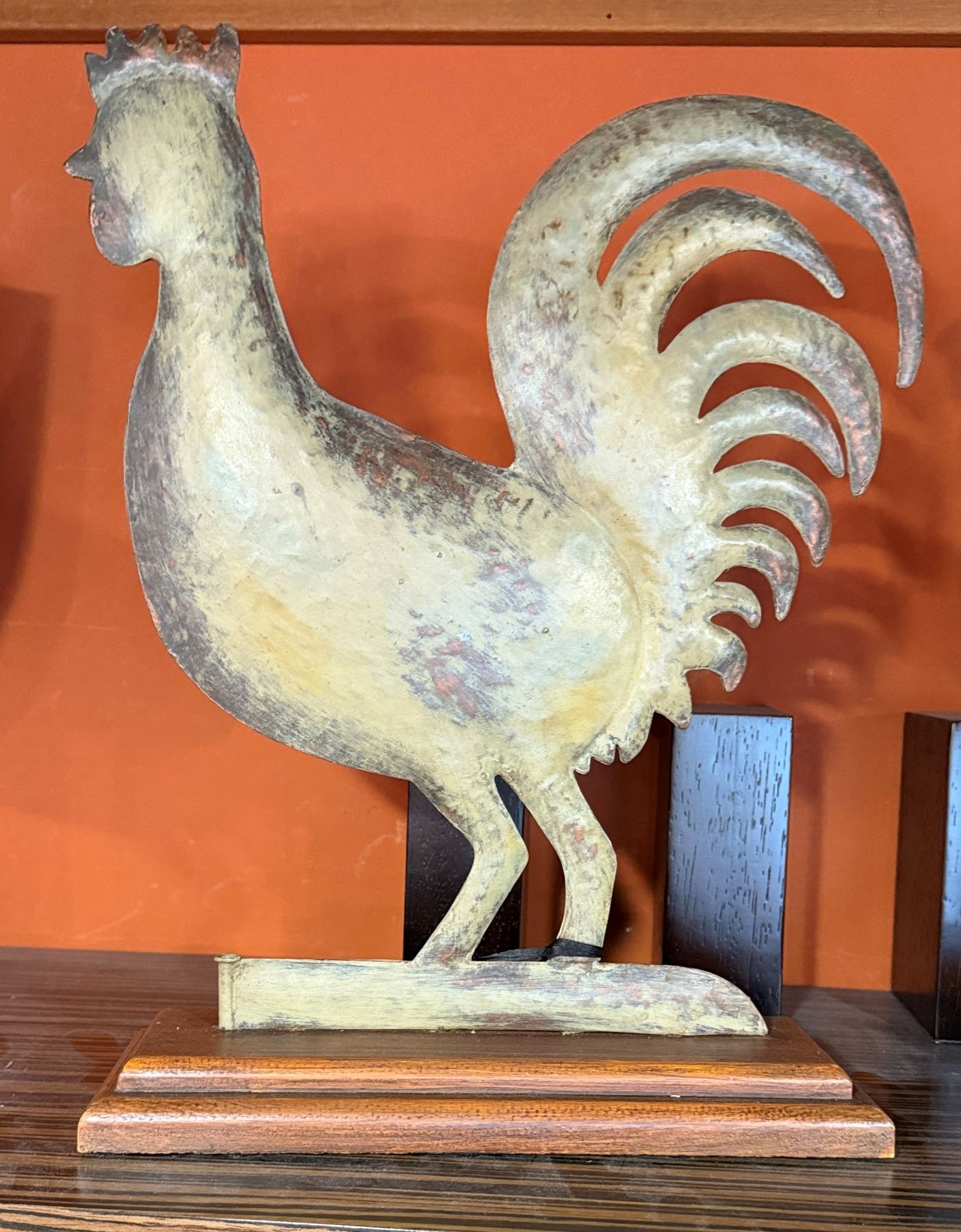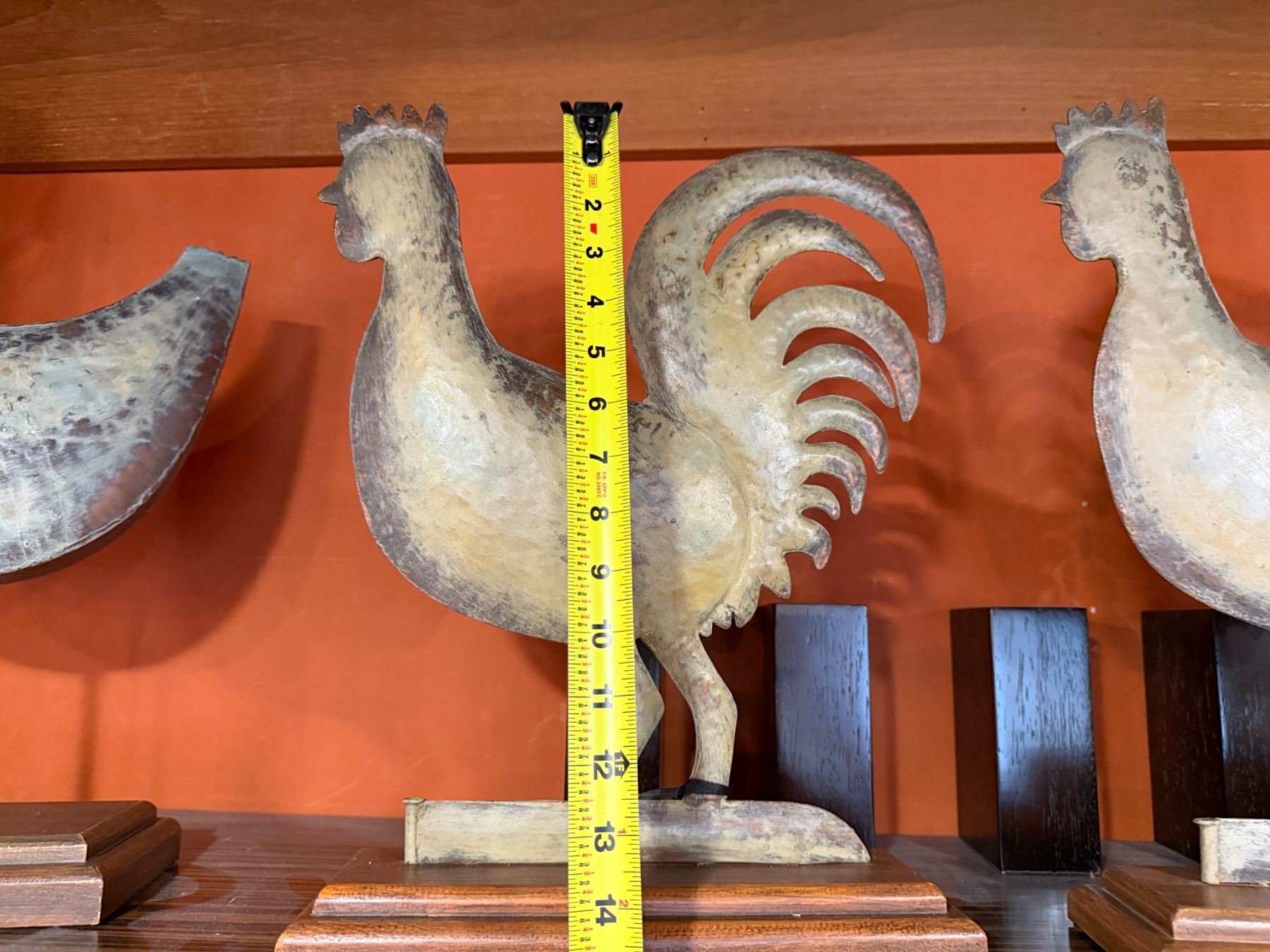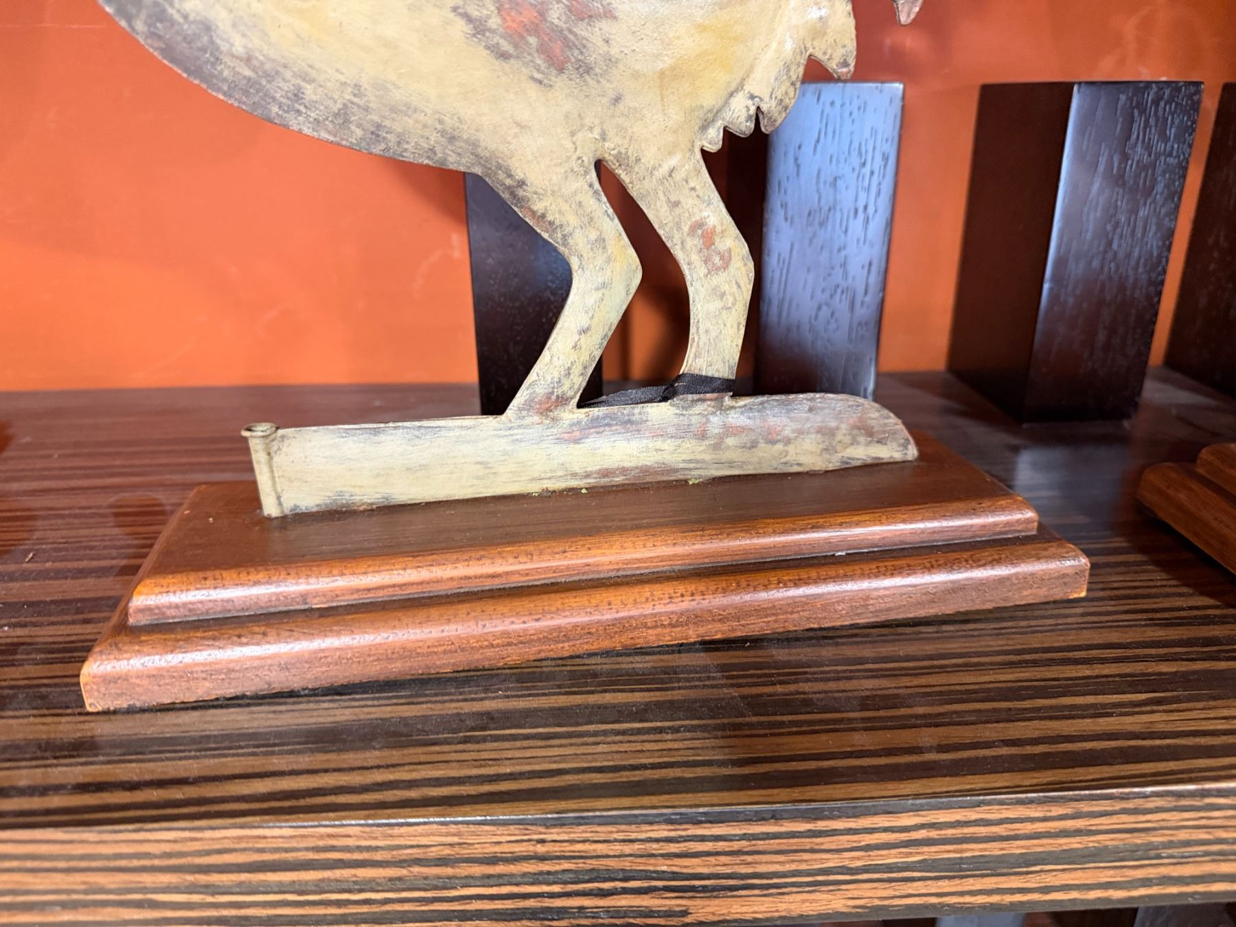 Lot 87 Metal Chicken Weathervane Sculpture on Wooden Base 15"H