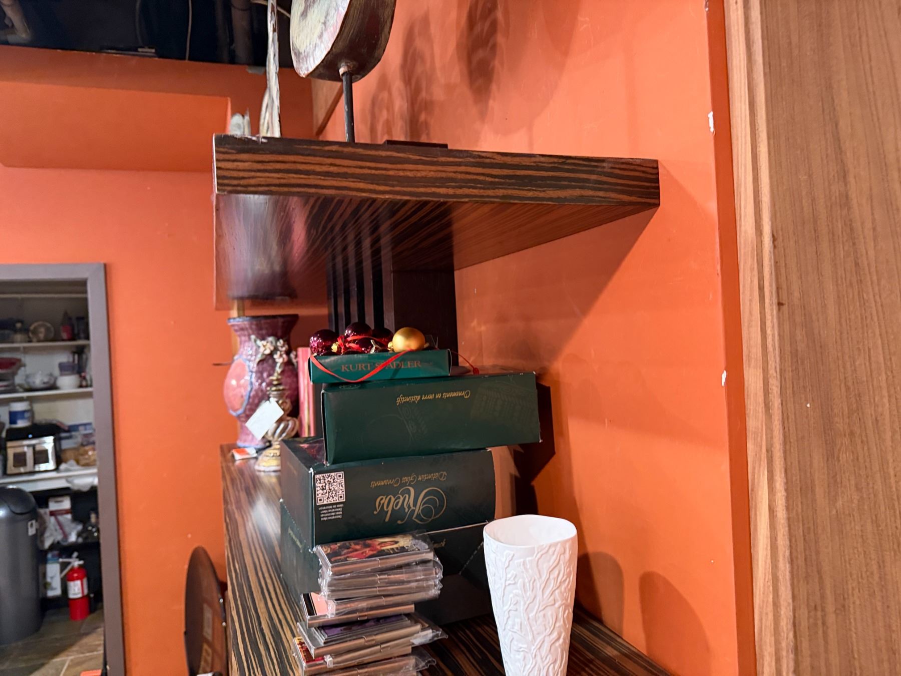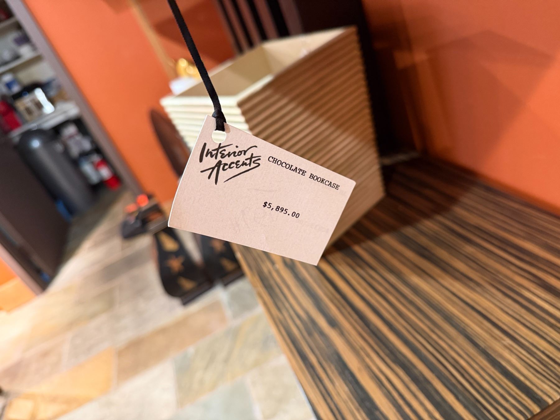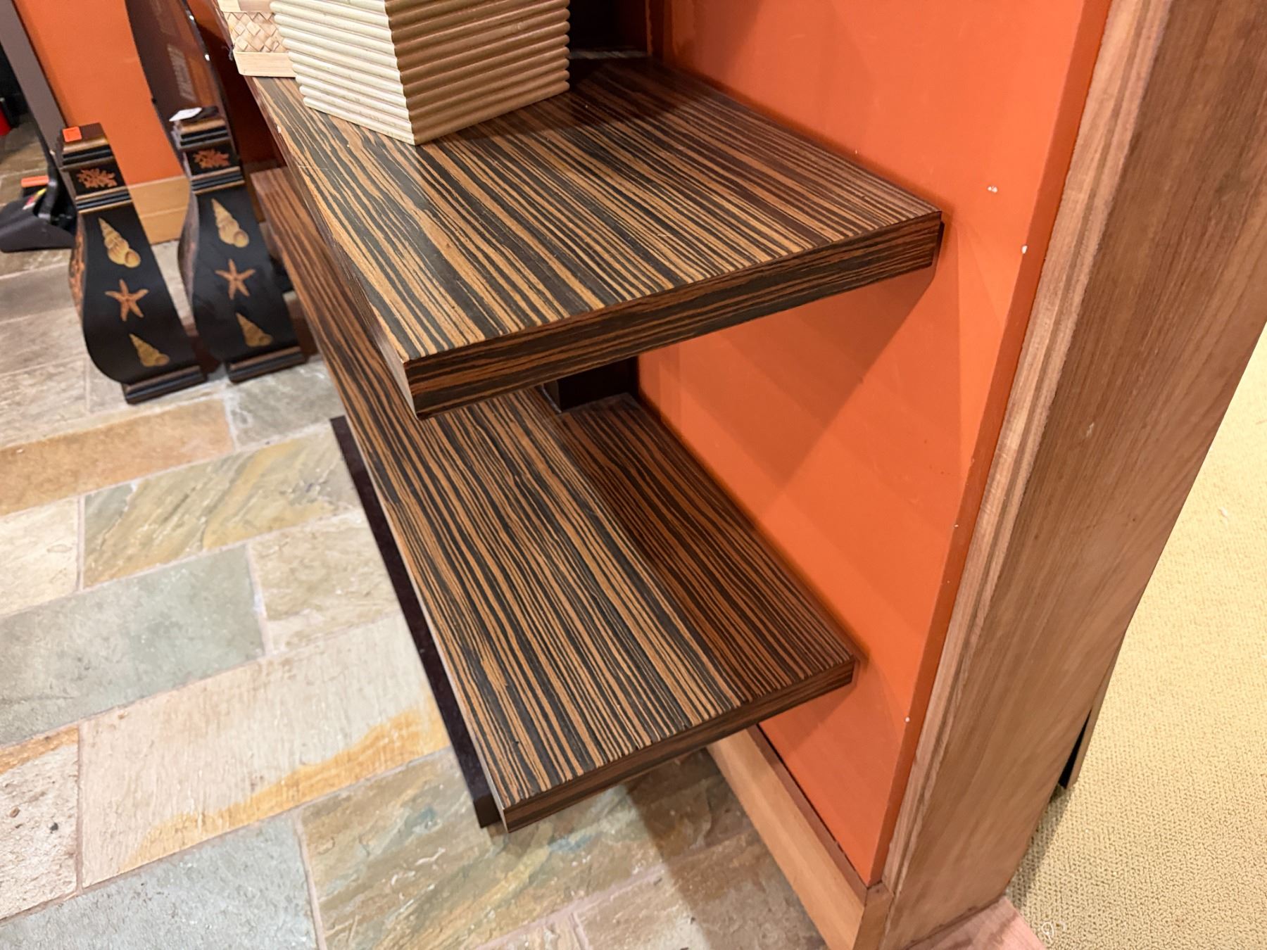 Lot 91 Adriana Hoyos Equador Wooden 4 Tier Chocolate Bookcase w/ Black Pillars (contents not included)