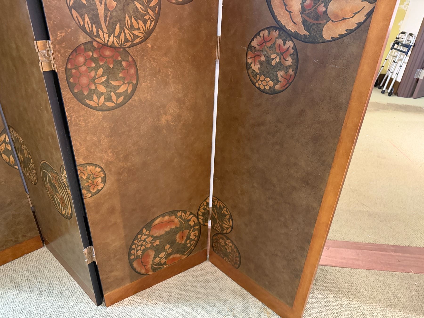 Lot 93 Asian 4-Panel Room Divider Screen w/ Leaf-Motif 20" x 80"H (each panel)