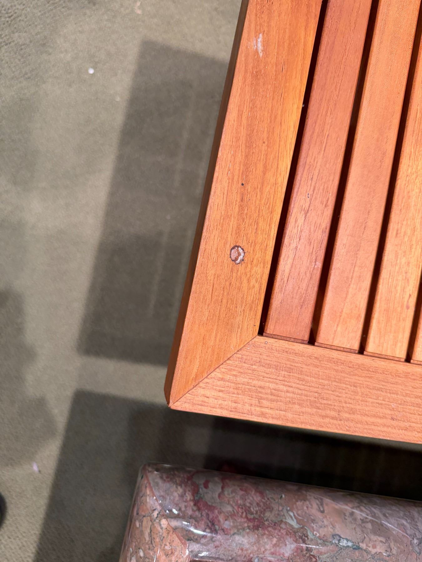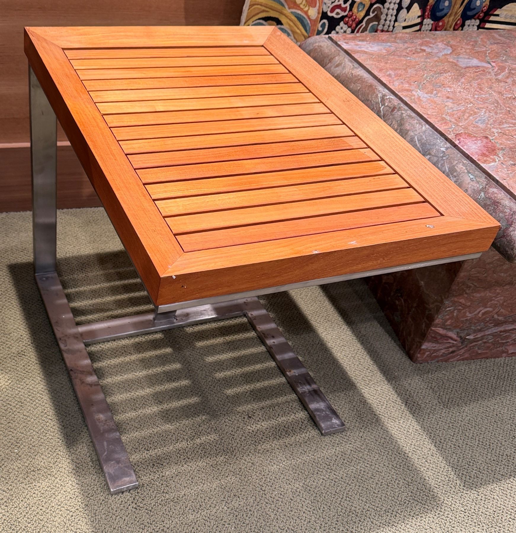 Lot 99 Tommy Bahama Slatted Outdoor Table on Metal Base 26" x 19" x 22"H