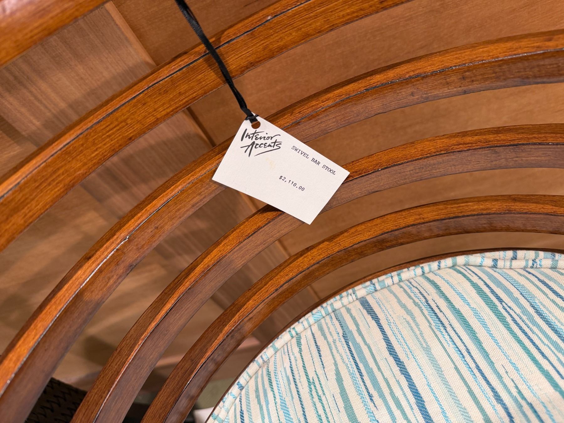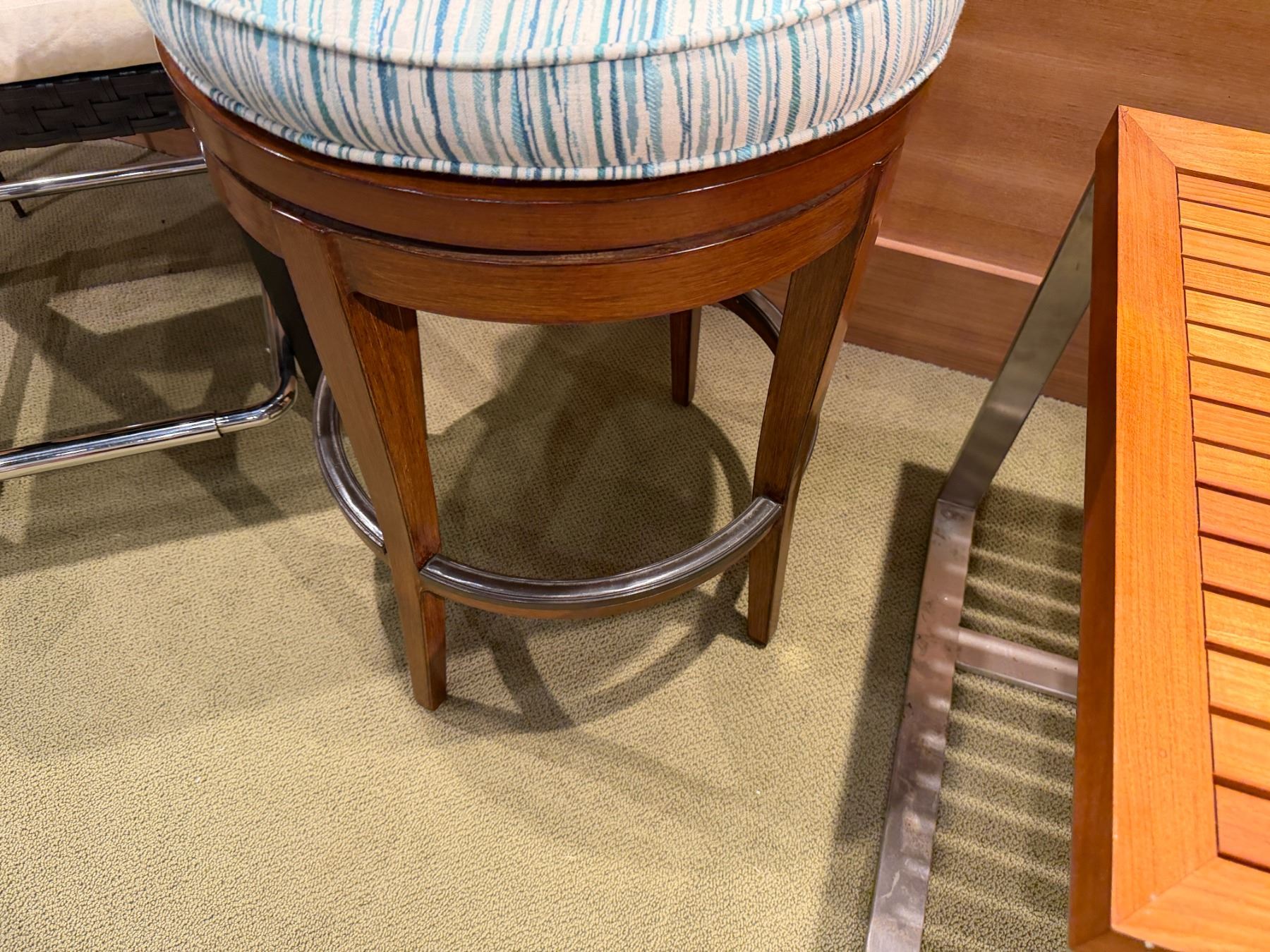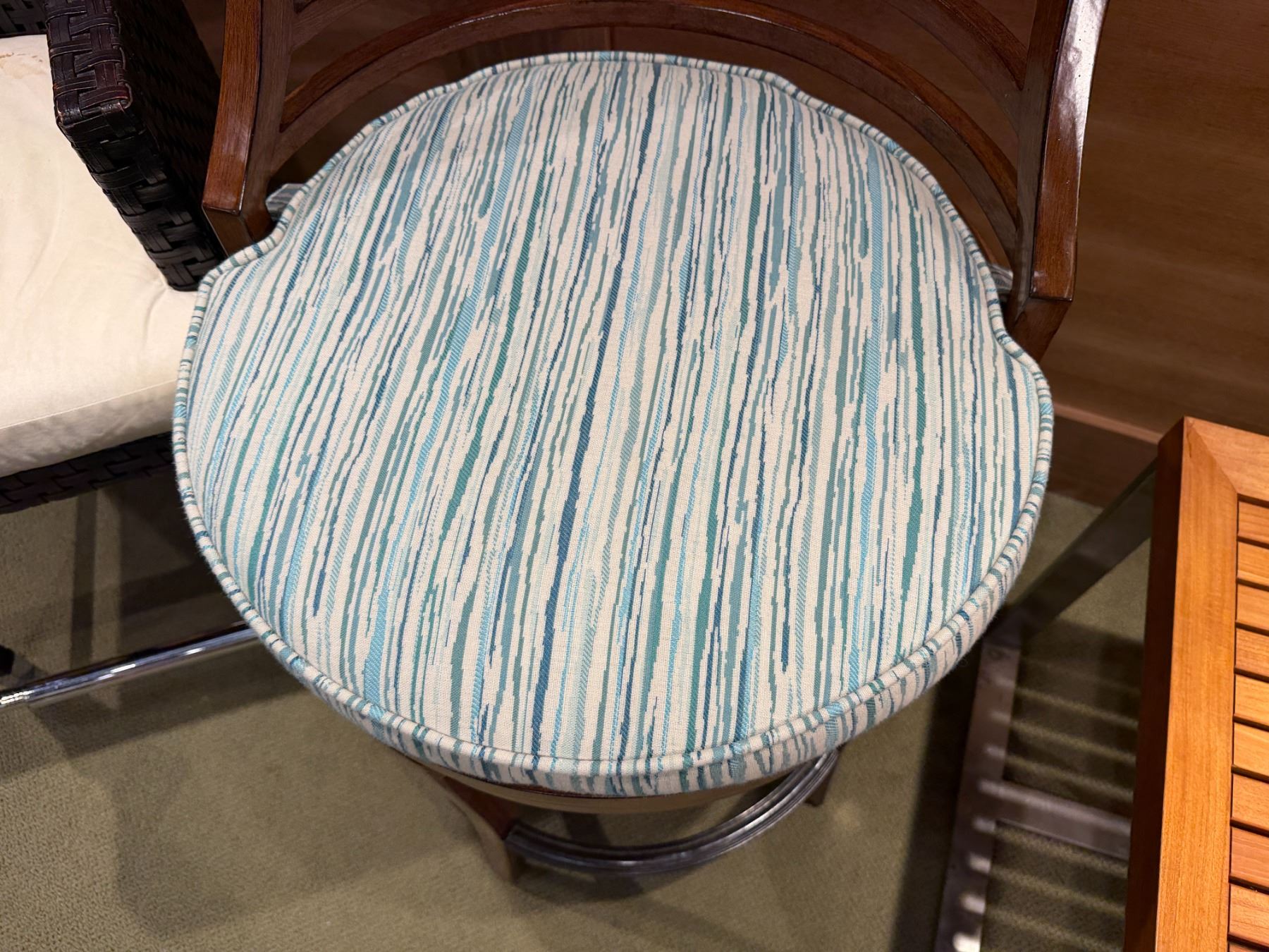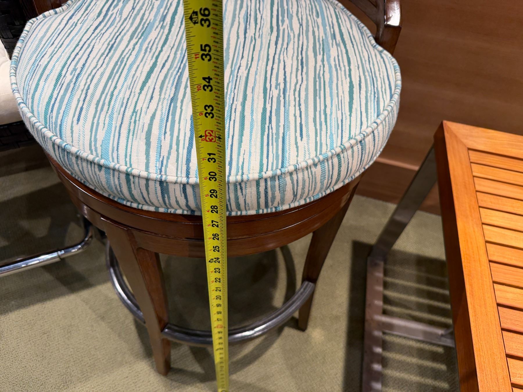 Lot 100 Tommy Bahama Wooden Outdoor Swivel Bar Stool w/ Upholstered Seat 20" Dia, 41"H