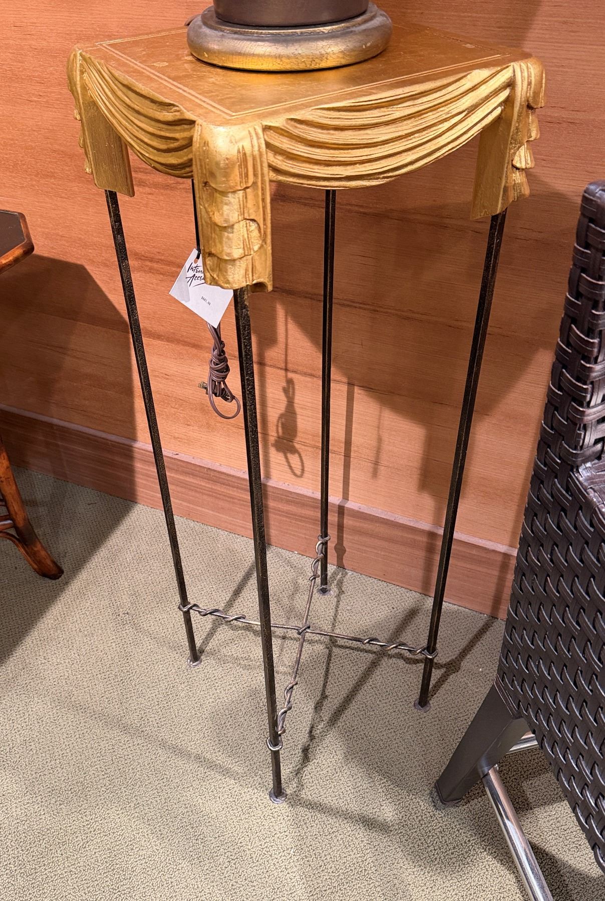 Square Metal Table w/ Gilt Top 13" x 13" x 42"H