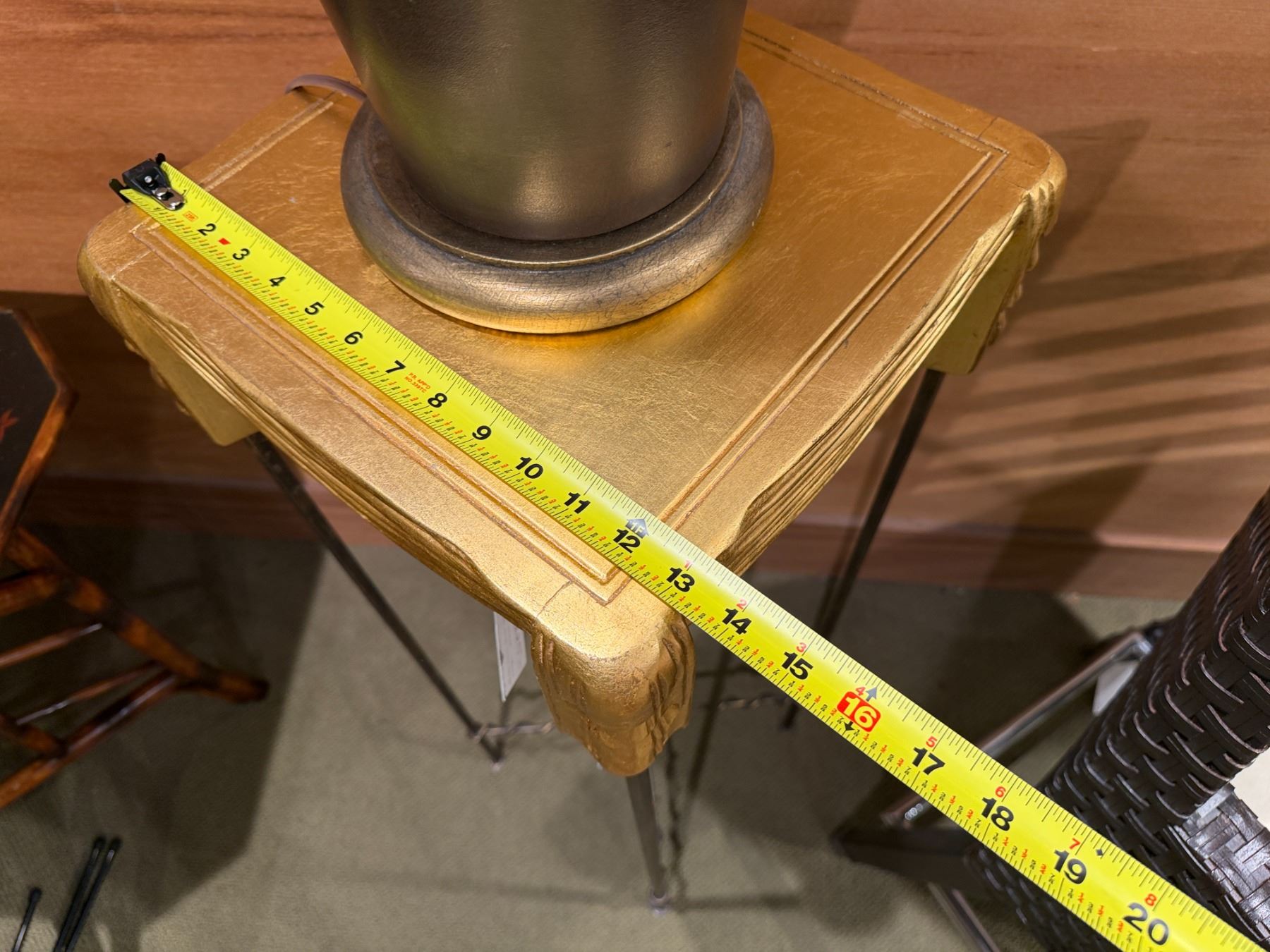 Lot 104 Square Metal Table w/ Gilt Top 13" x 13" x 42"H