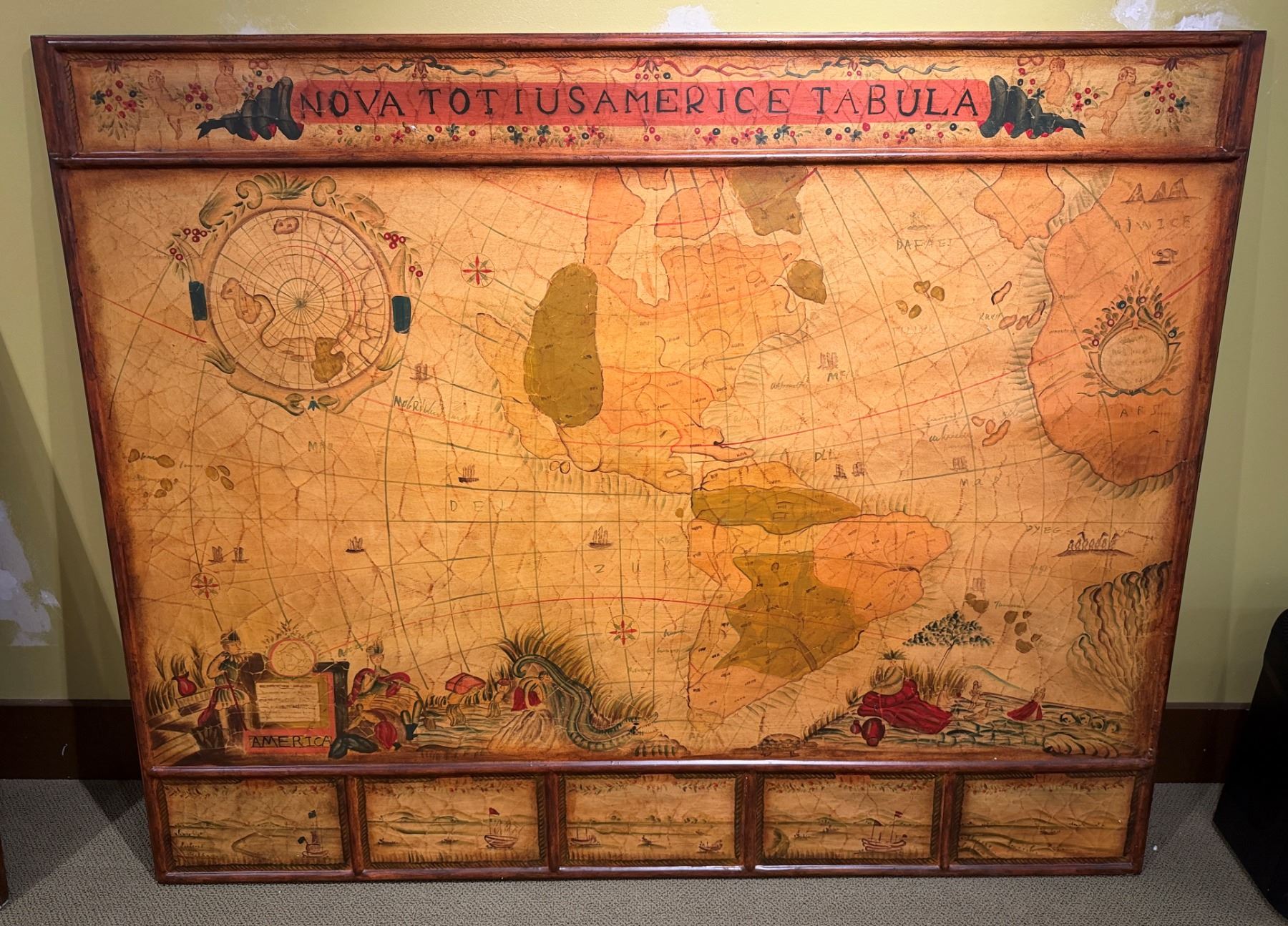 Large Vintage-Style Map Marked 'NOVA TOTIUS AMERICAE TABULA' 67" x 54"