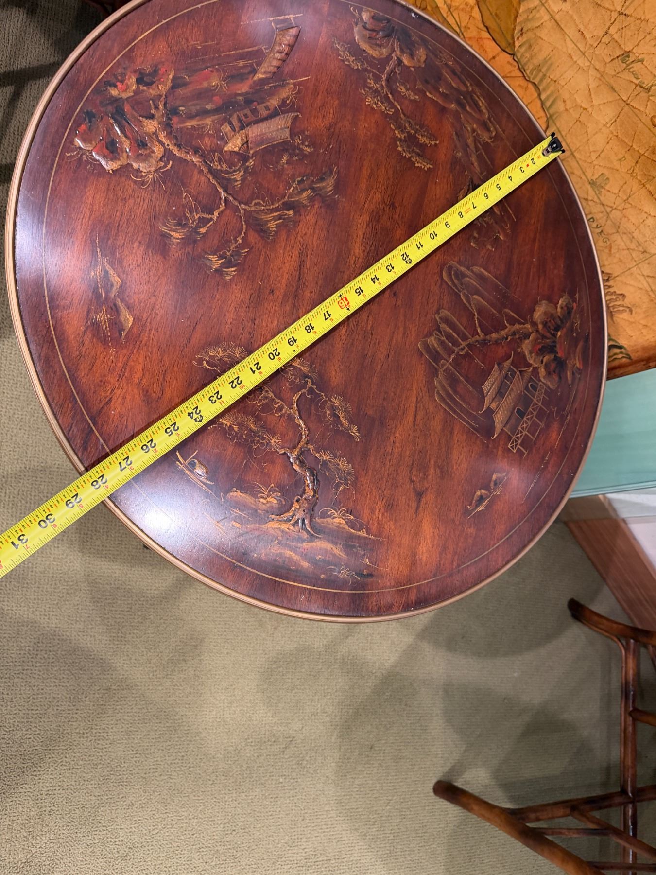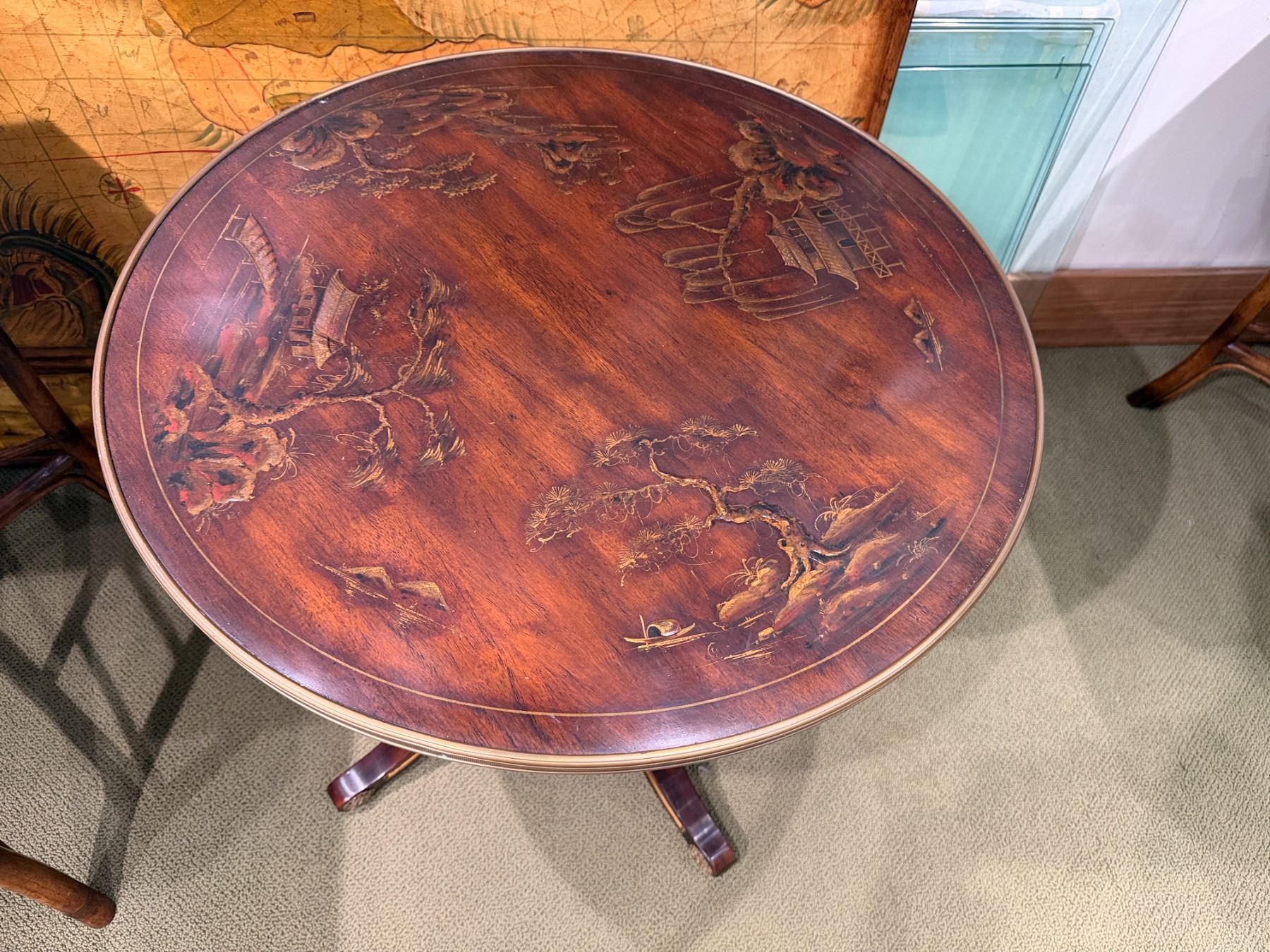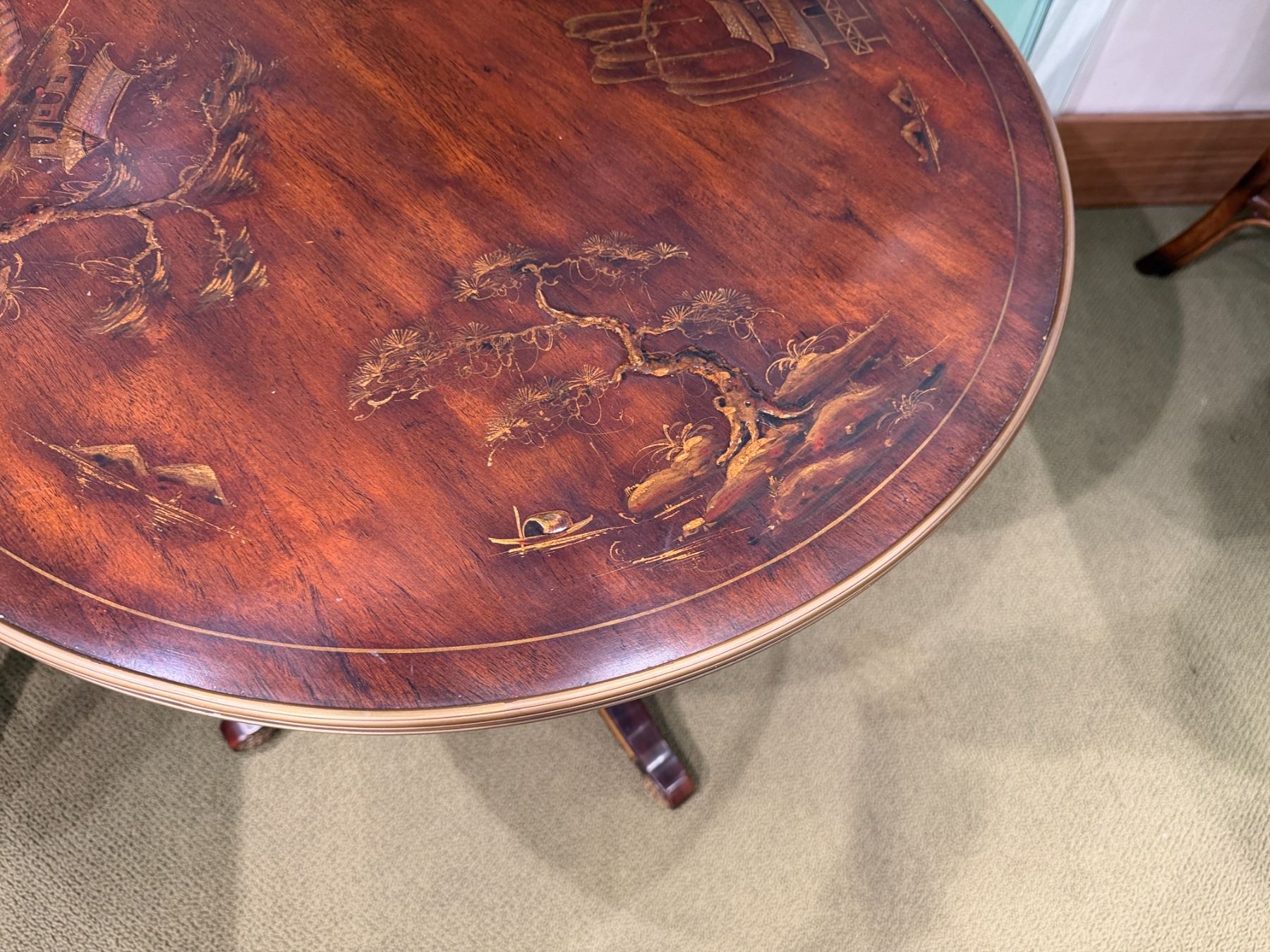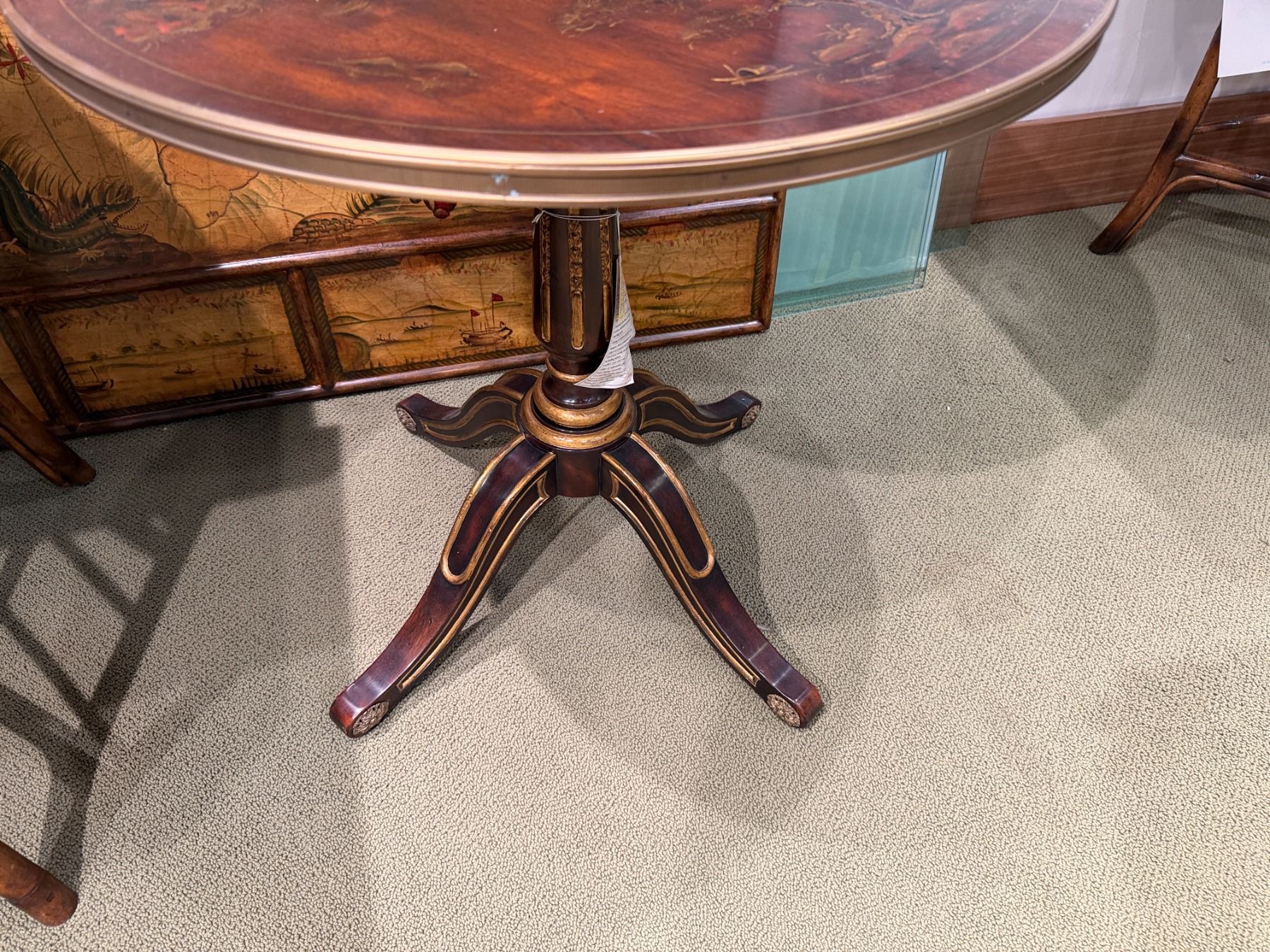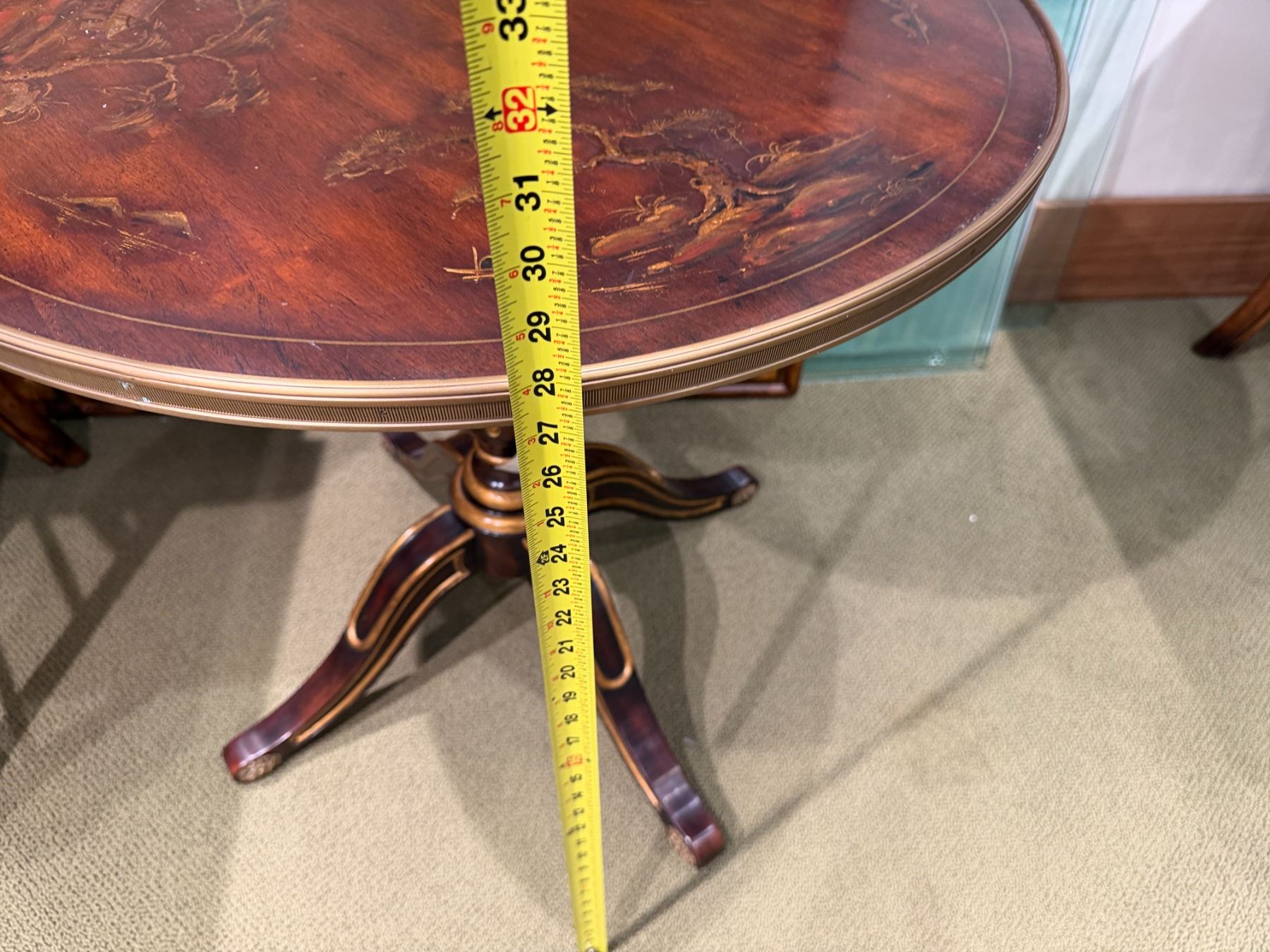 Lot 123 Theodore Alexander Round Side Table on Pedestal Base w/ Asian Floral Top 28" Dia, 28"H