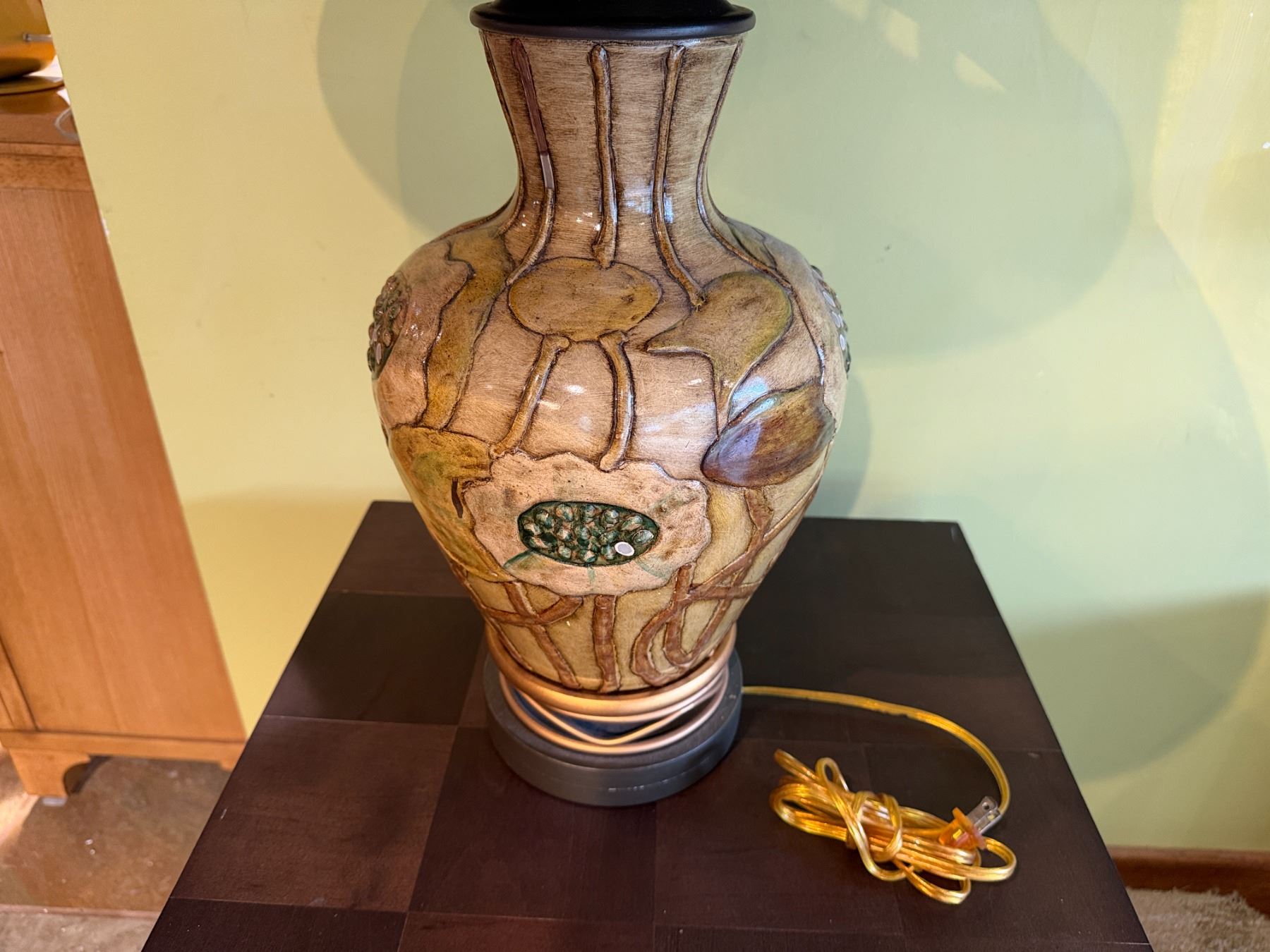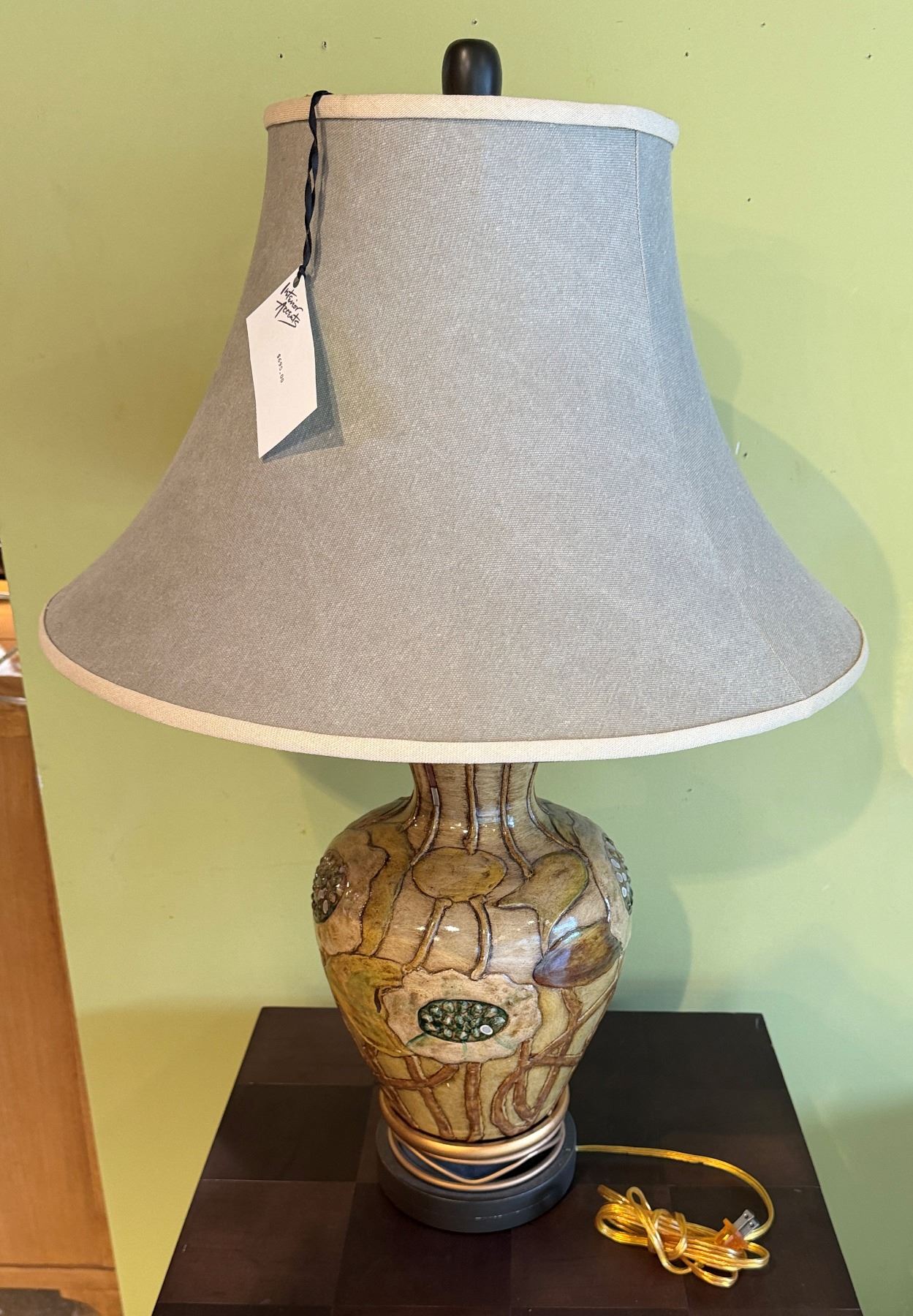 Lot 138 Table Lamp w/ Ceramic Base & Gray Shade 30"H