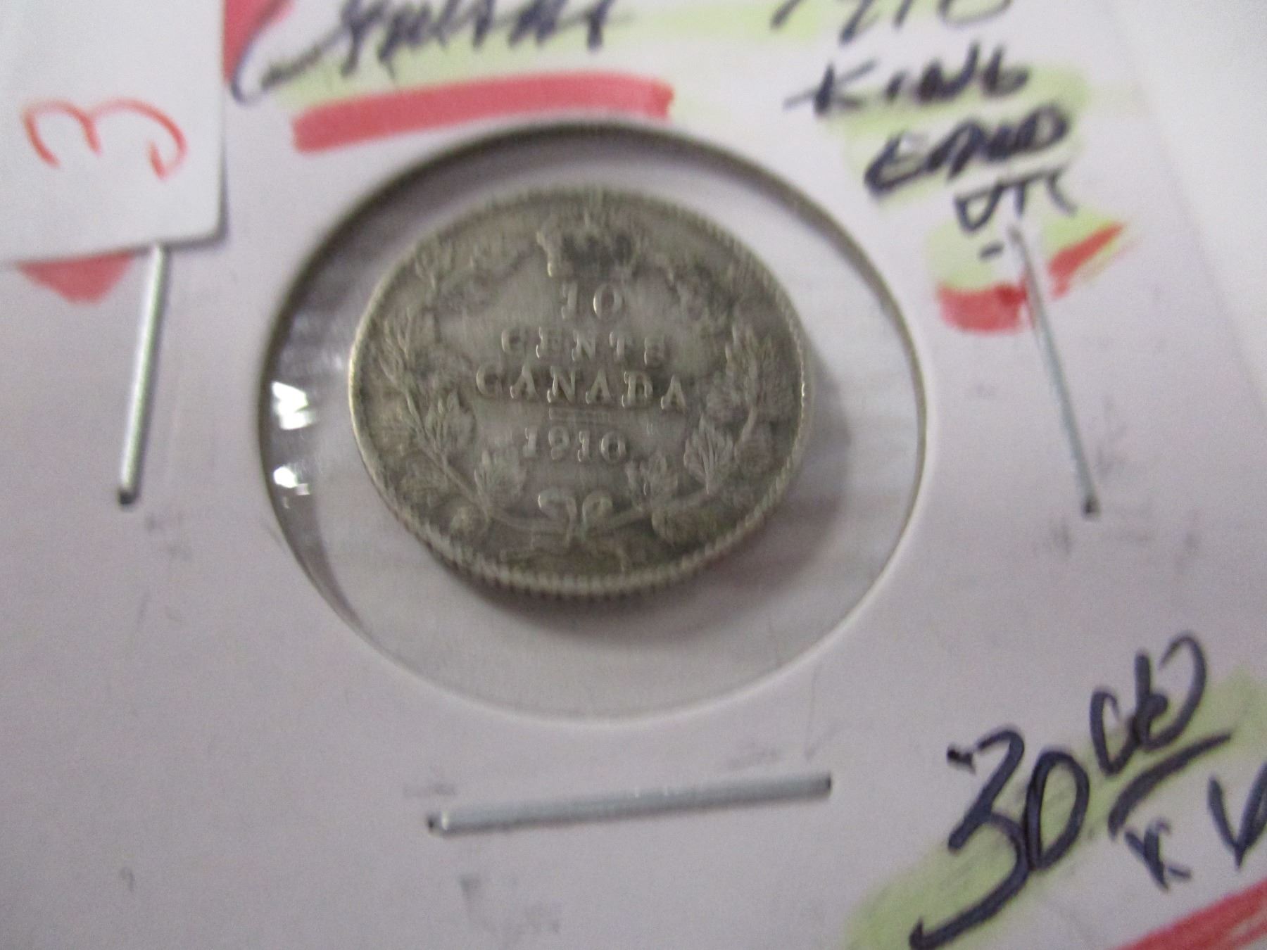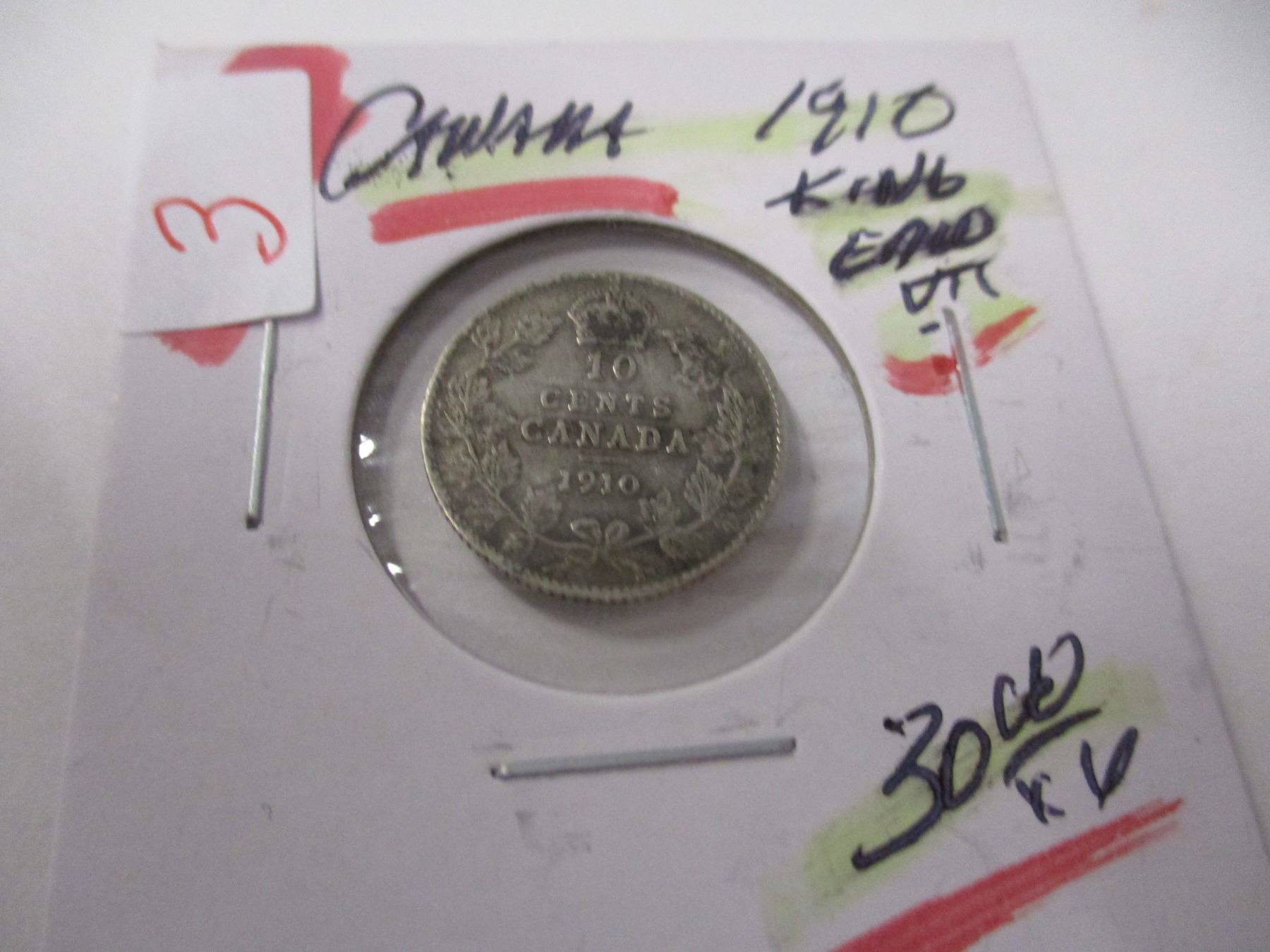 Lot 3 1910 CANADA KING EDWARD VII SILVER DIME