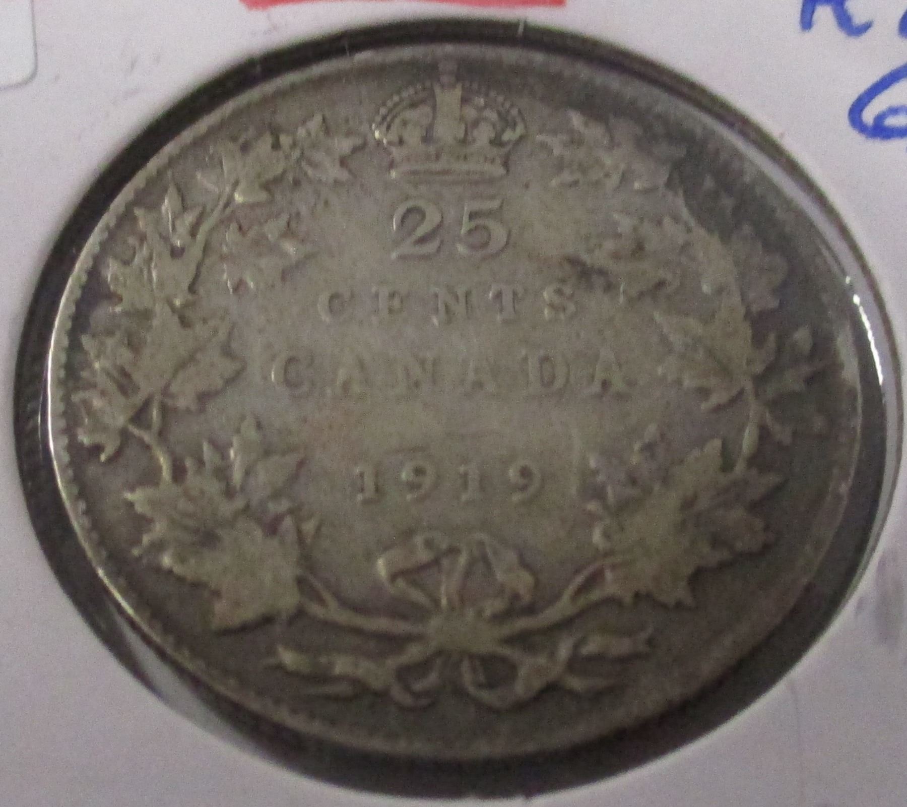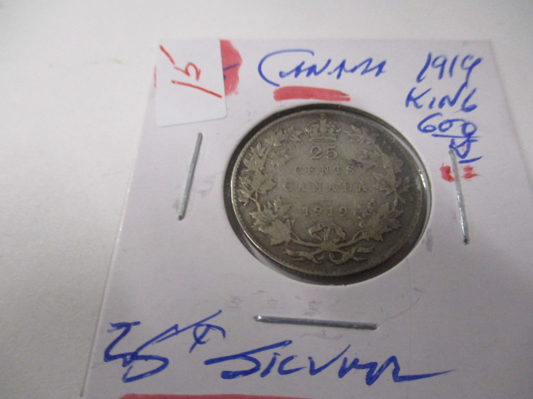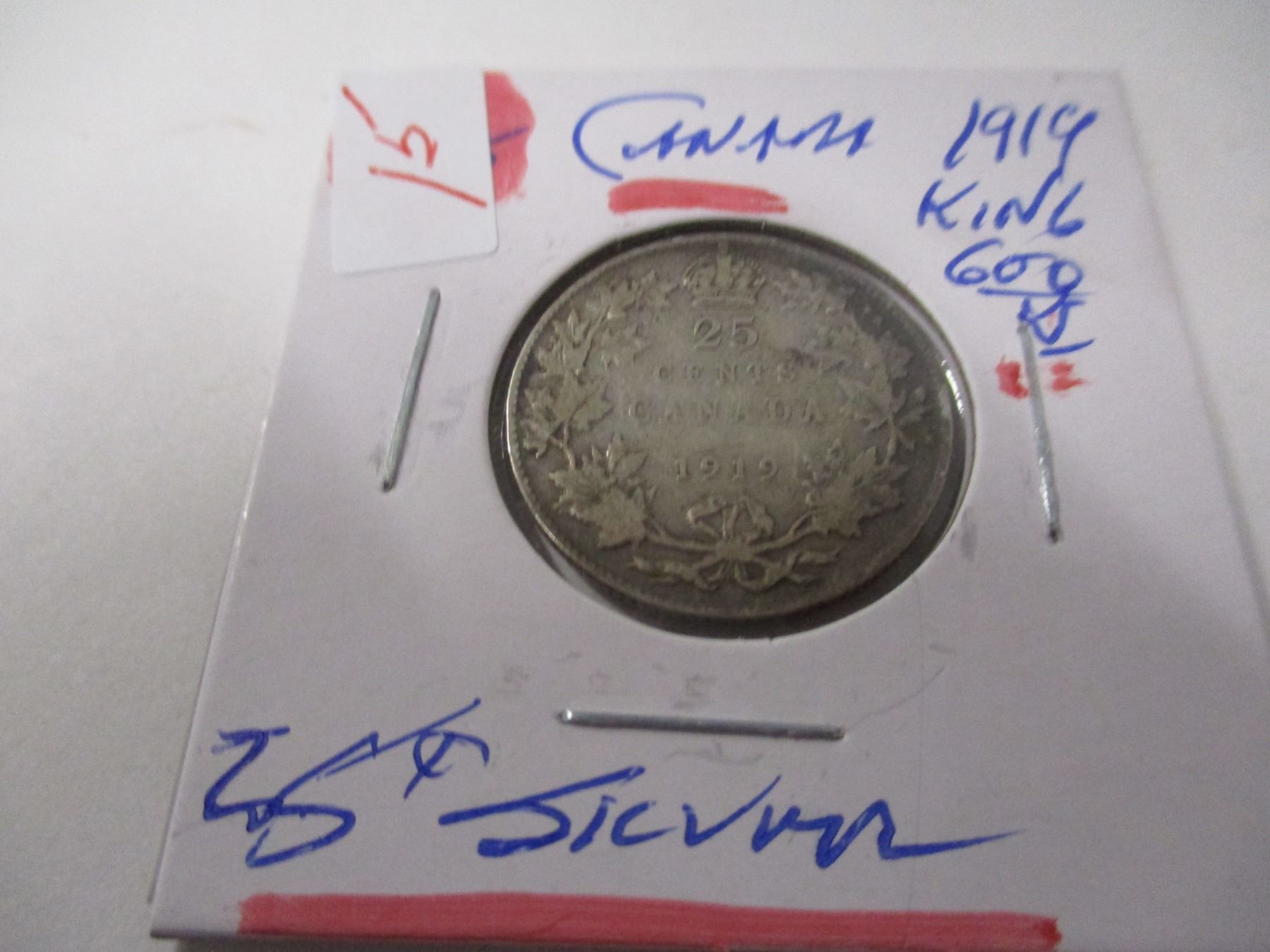 Lot 15 1919 CANADA KING GEORGE V SILVER QUARTER