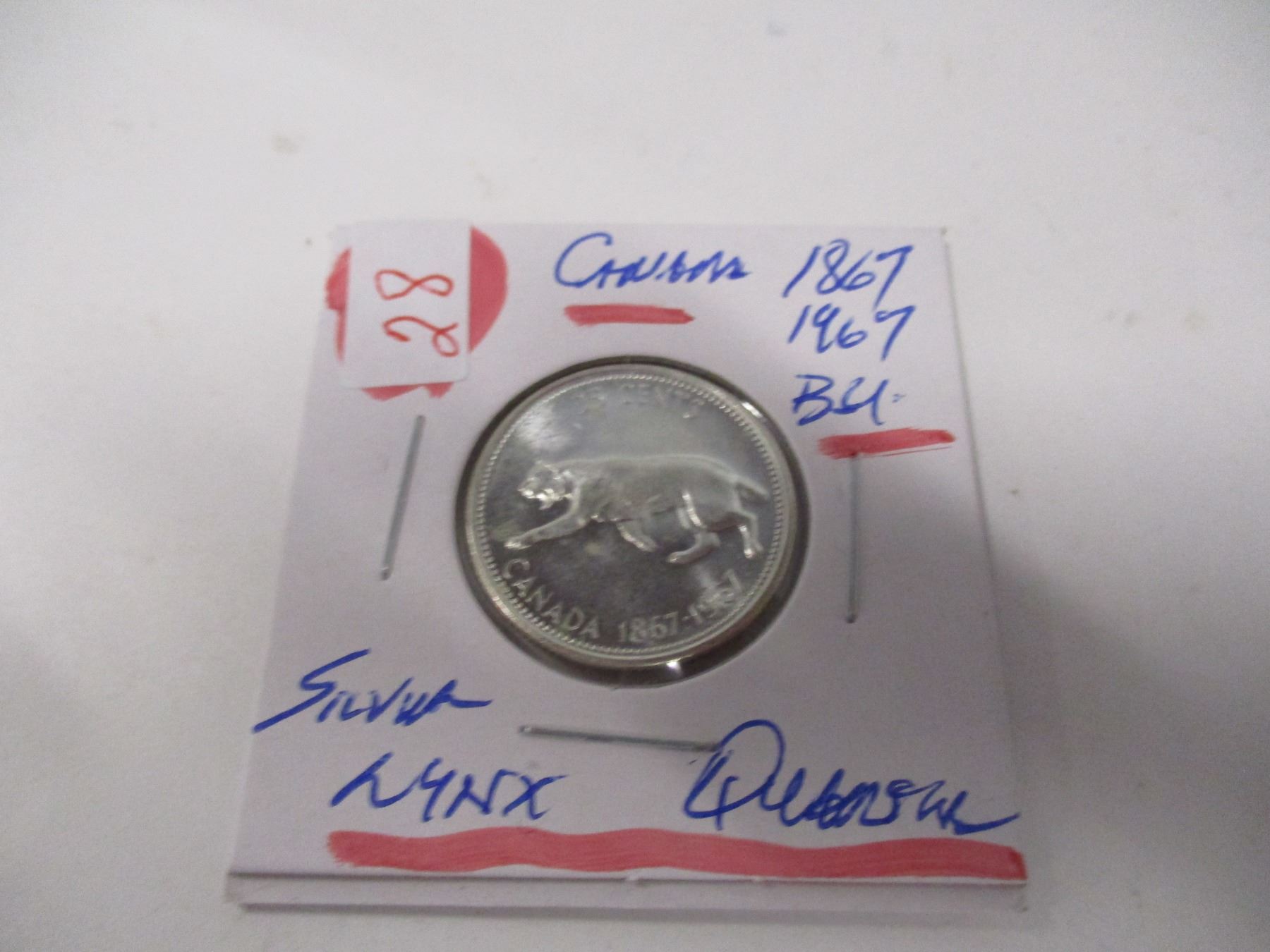 Lot 28 1867 - 1967 BU CANADA LYNX SILVER QUARTER