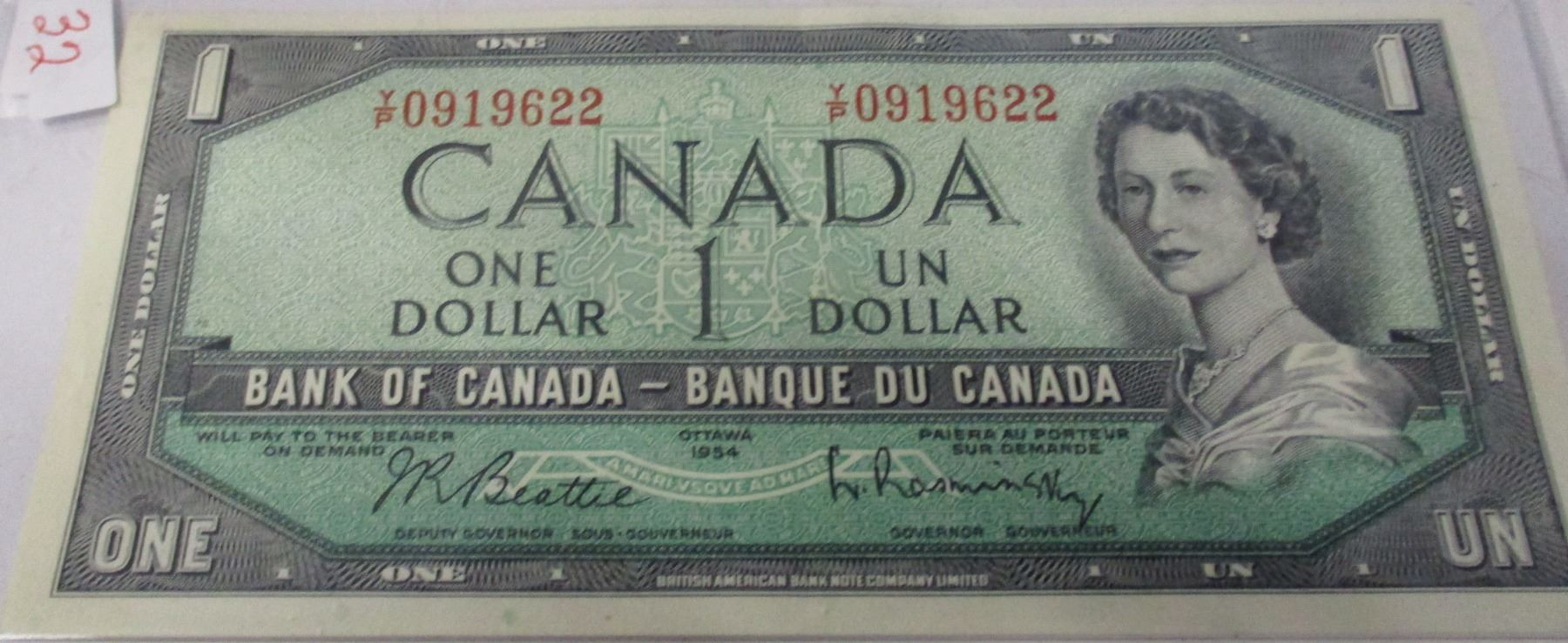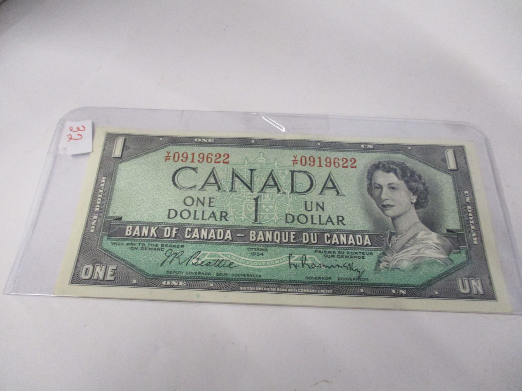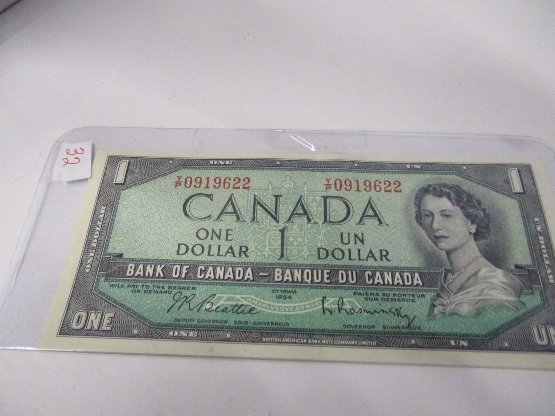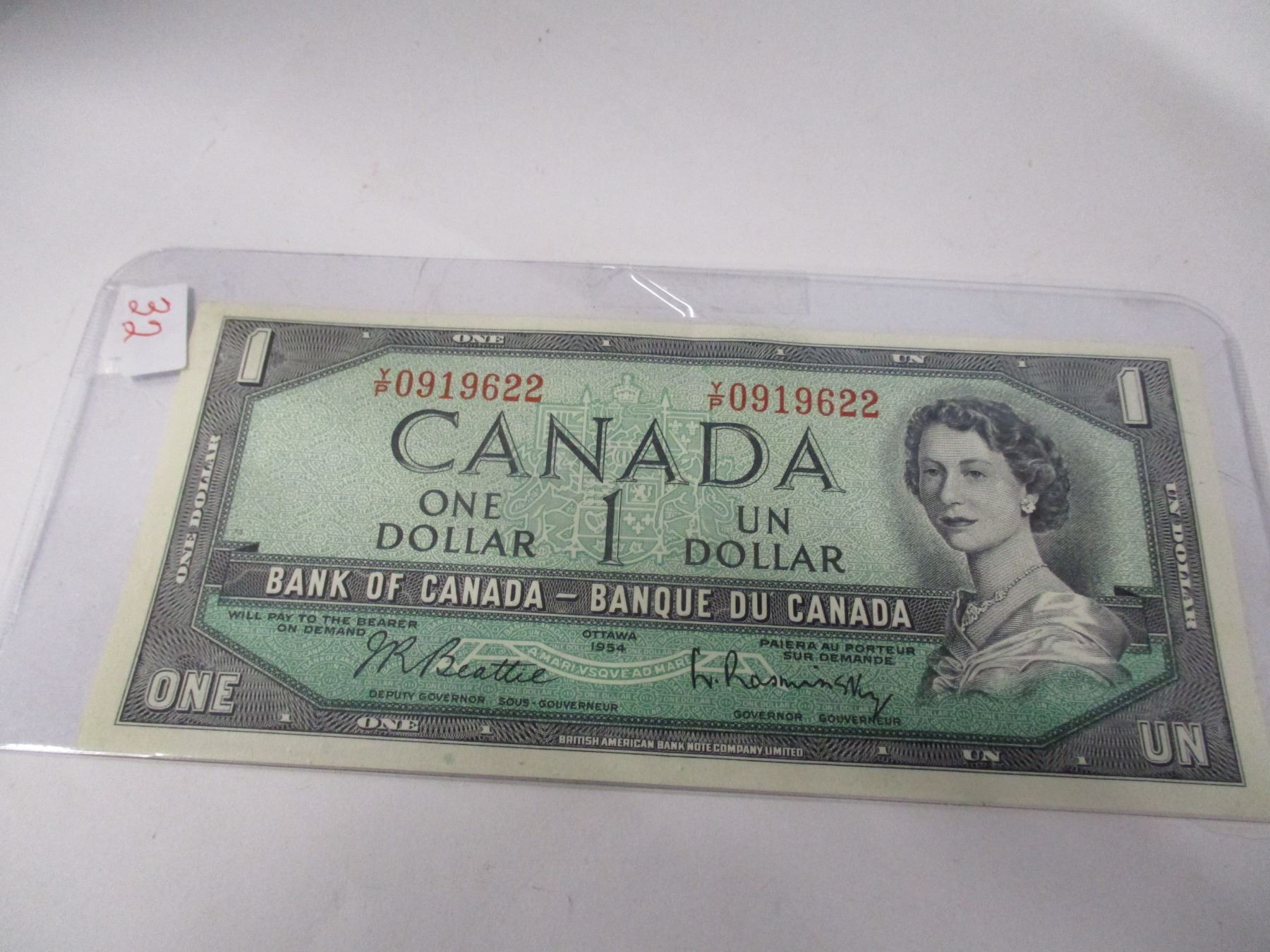 Lot 32 1954 CRISP UNCIRCULATED LAST OF CANADA $1 BILL