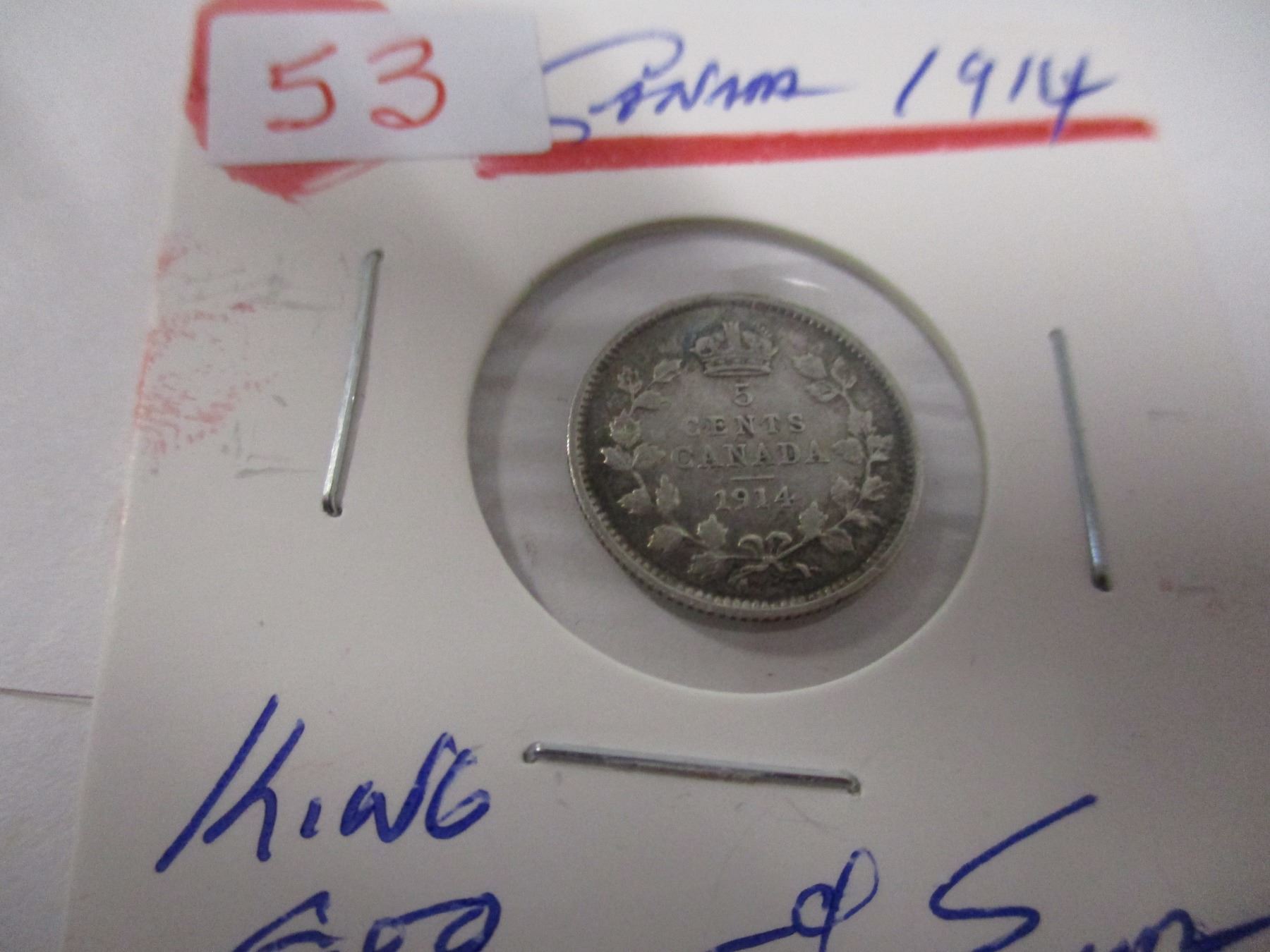 Lot 53 1914 CANADA KING GEORGE V SILVER FIVE CENT