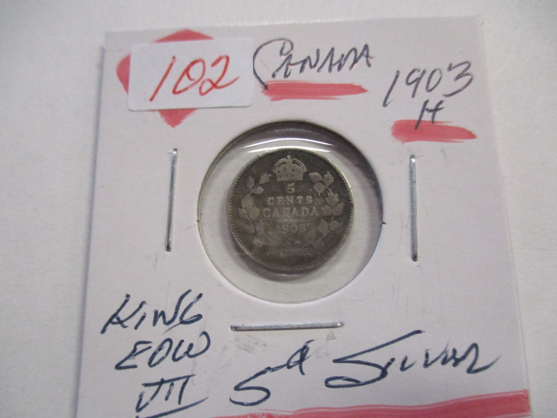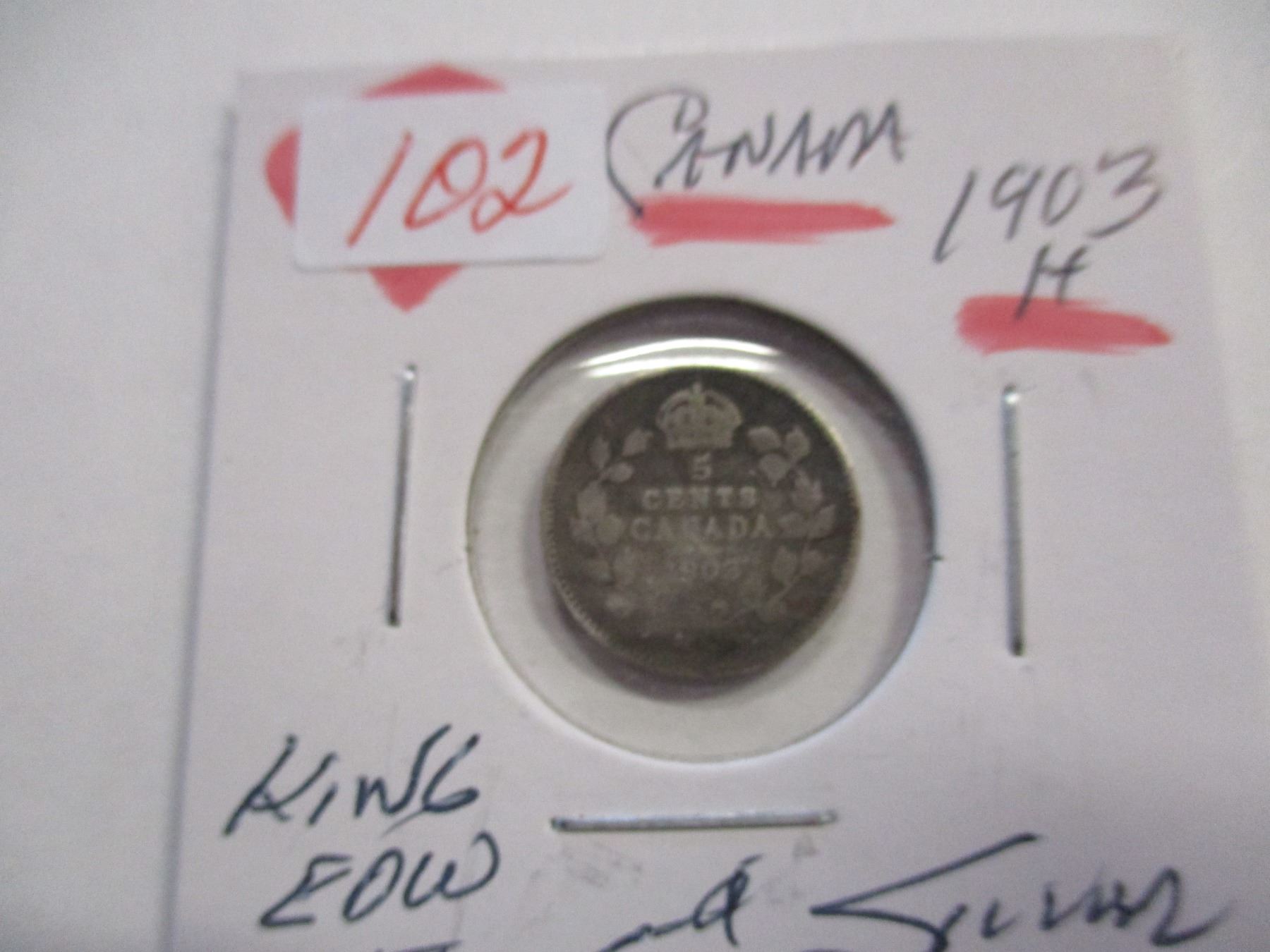 Lot 102 1903H CANADA KING EDWARD VII SILVER FIVE CENT