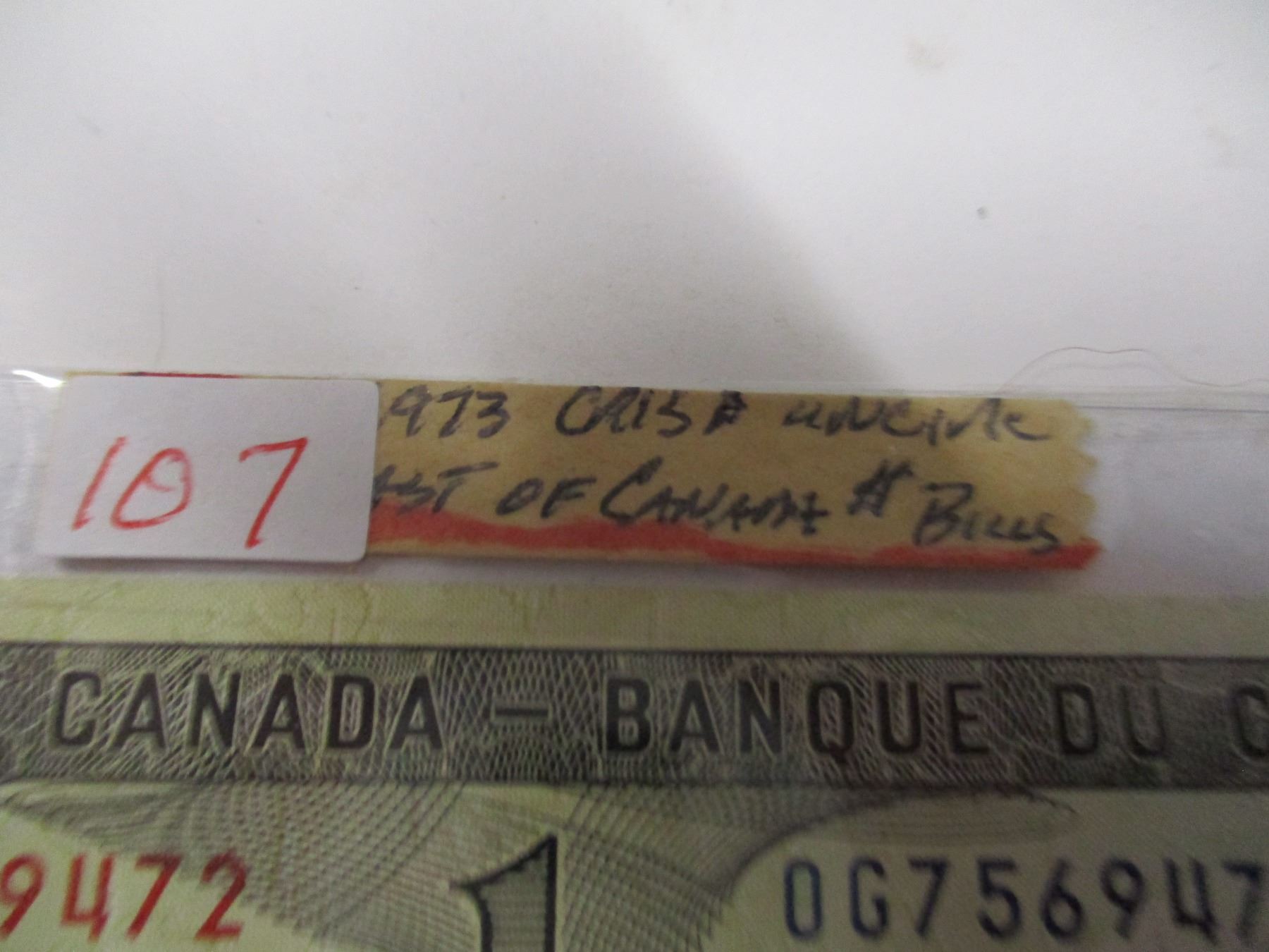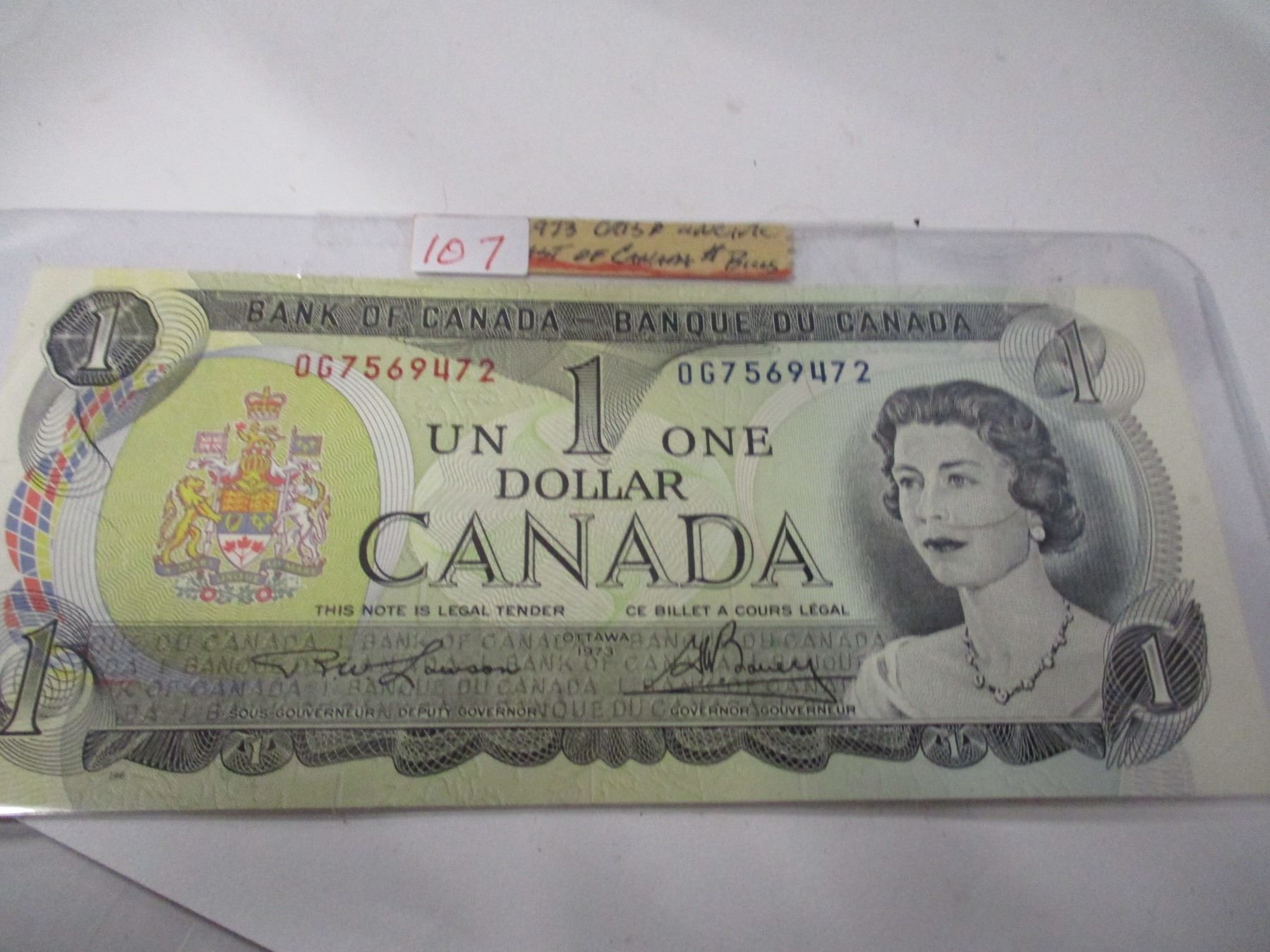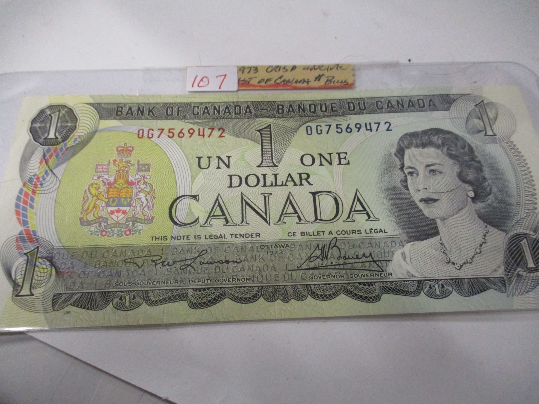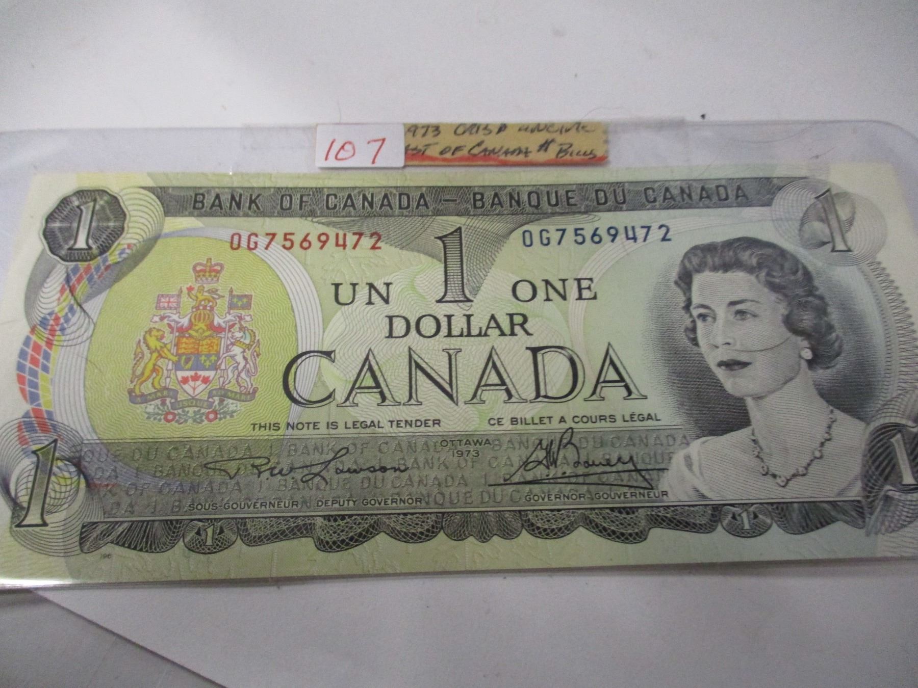 Lot 107 1973 CRISP UNCIRCULATED LAST OF CANADA $1 BILL