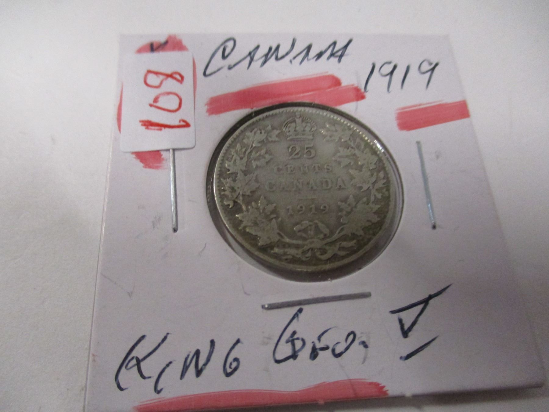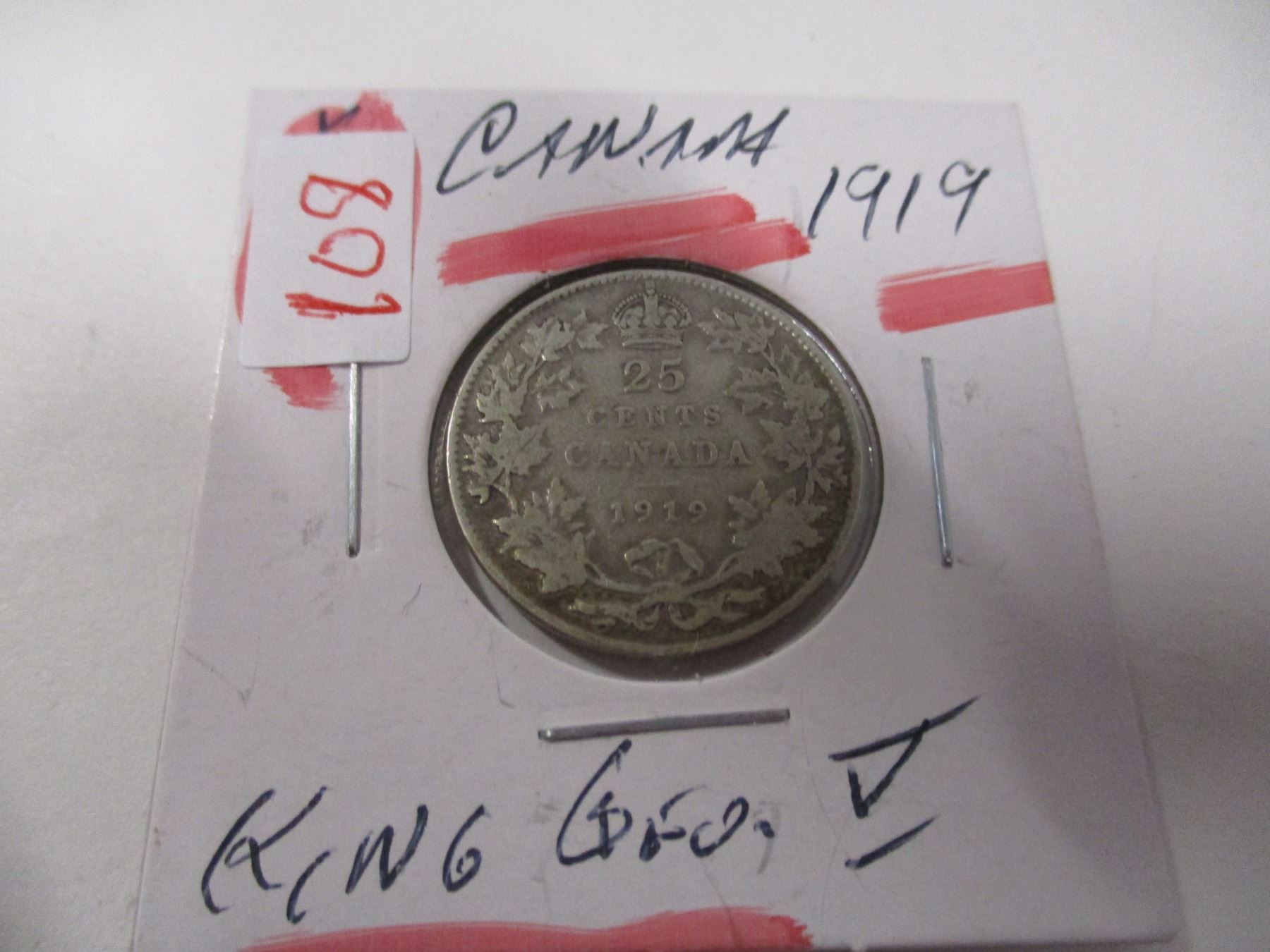 Lot 108 1919 CANADA KING GEORGE V SILVER QUARTER