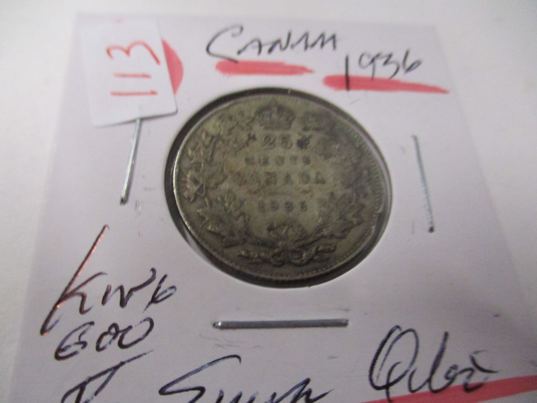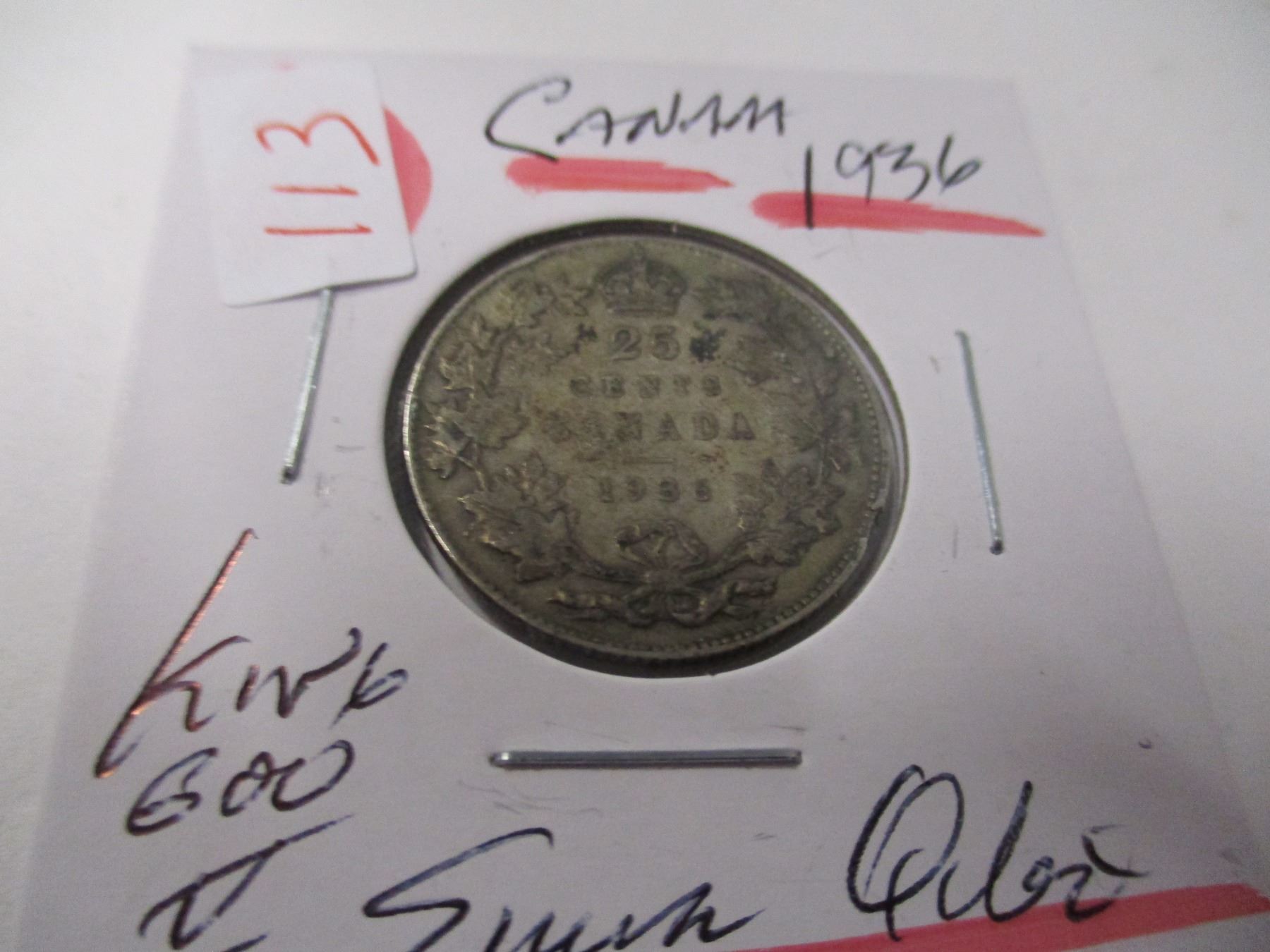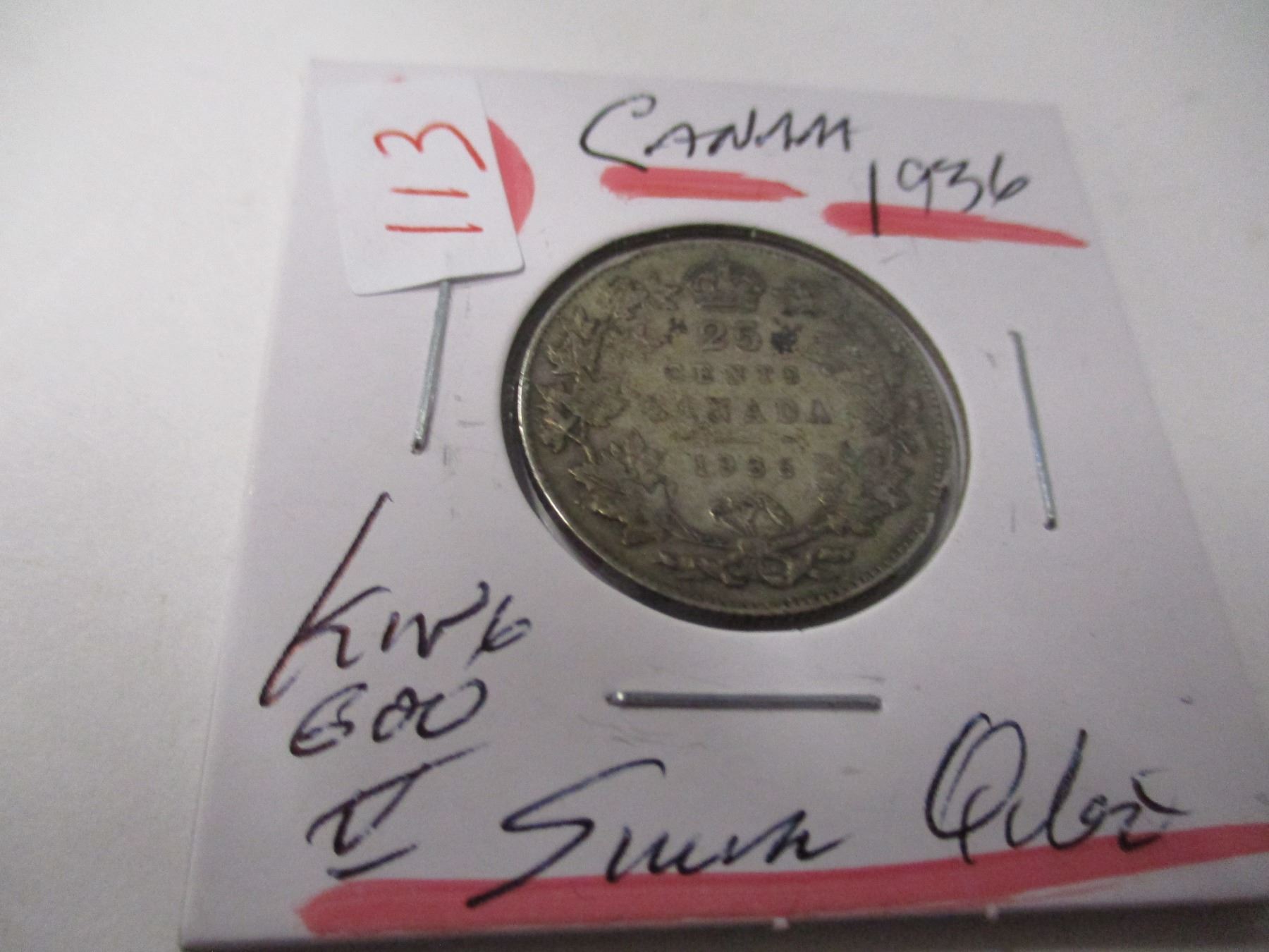 Lot 113 1936 CANADA KING GEORGE V SILVER QUARTER