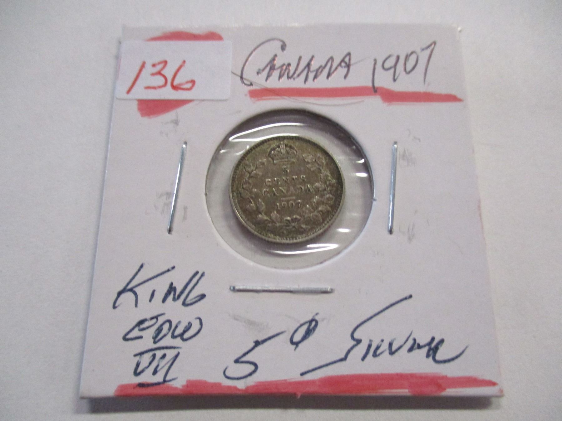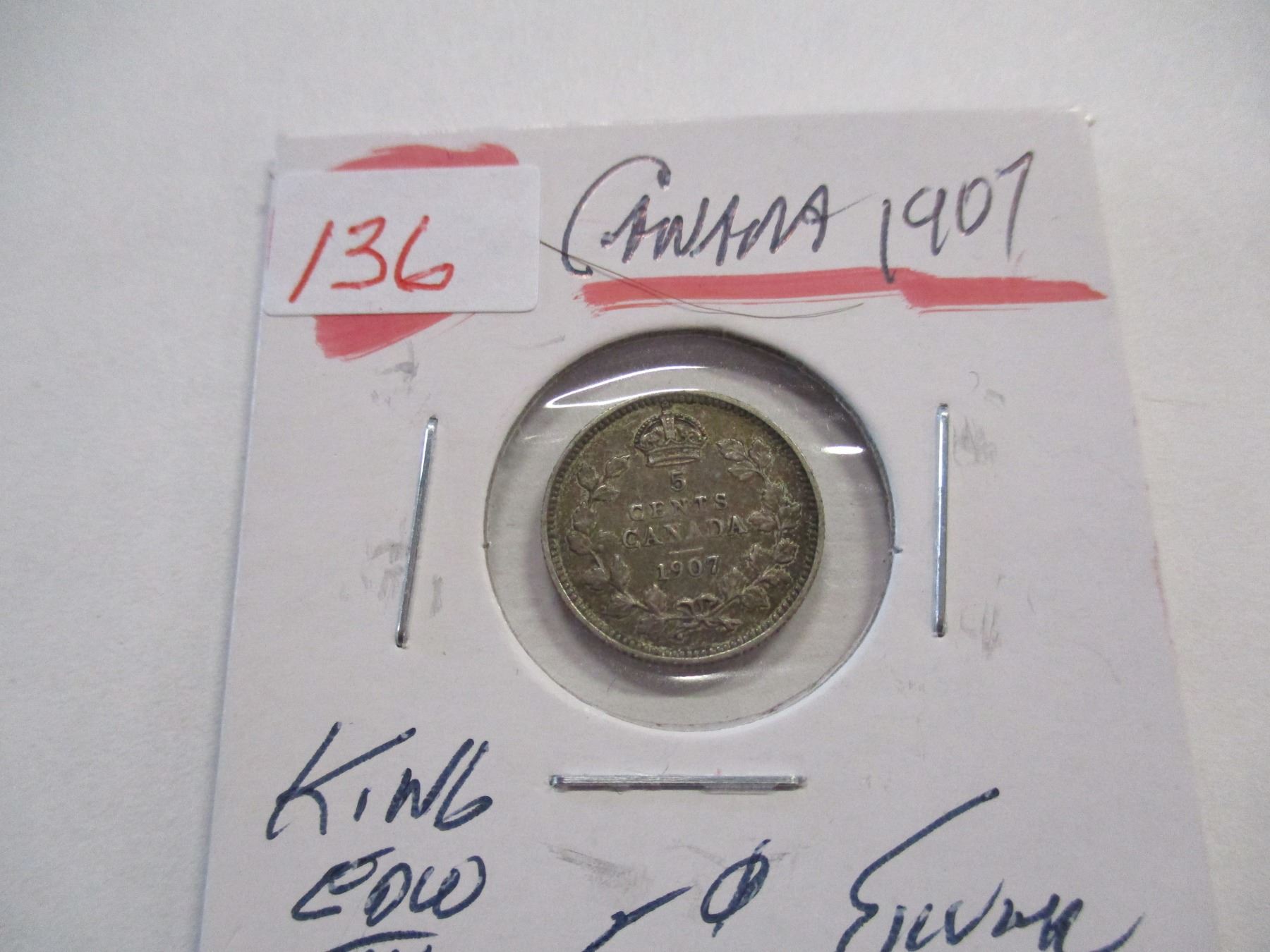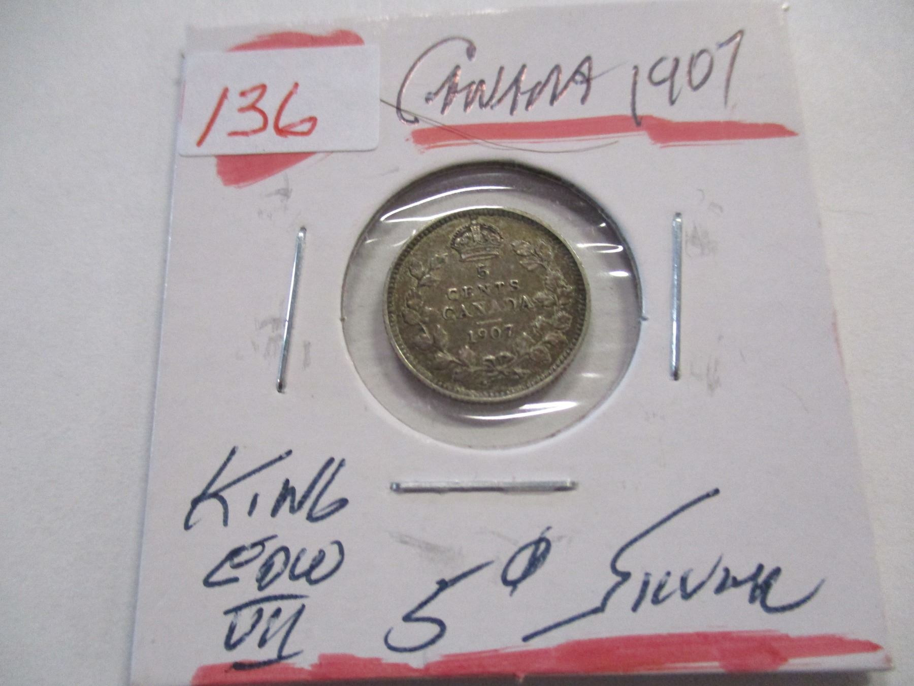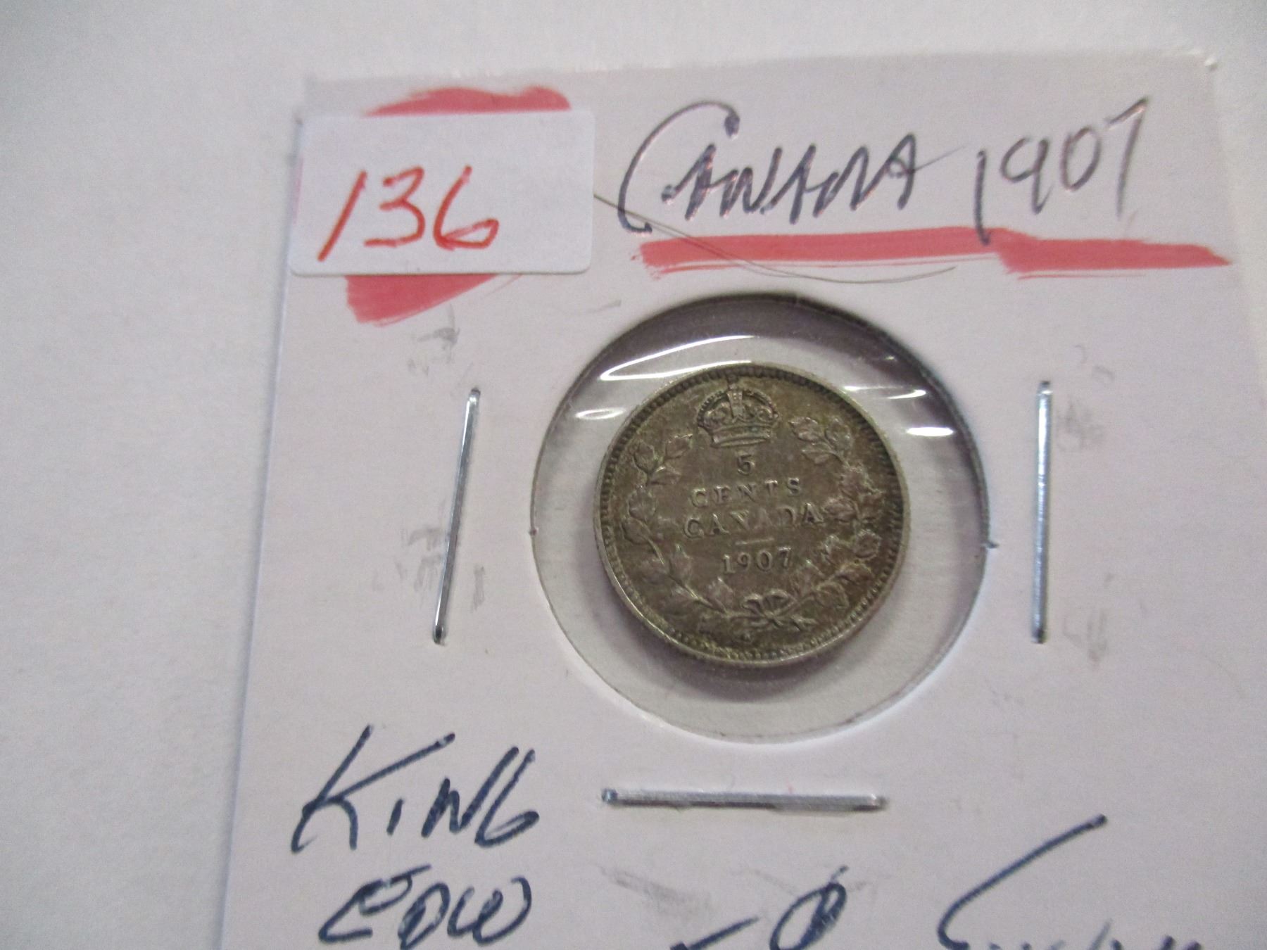 Lot 136 1907 CANADA KING EDWARD VII SILVER FIVE CENT
