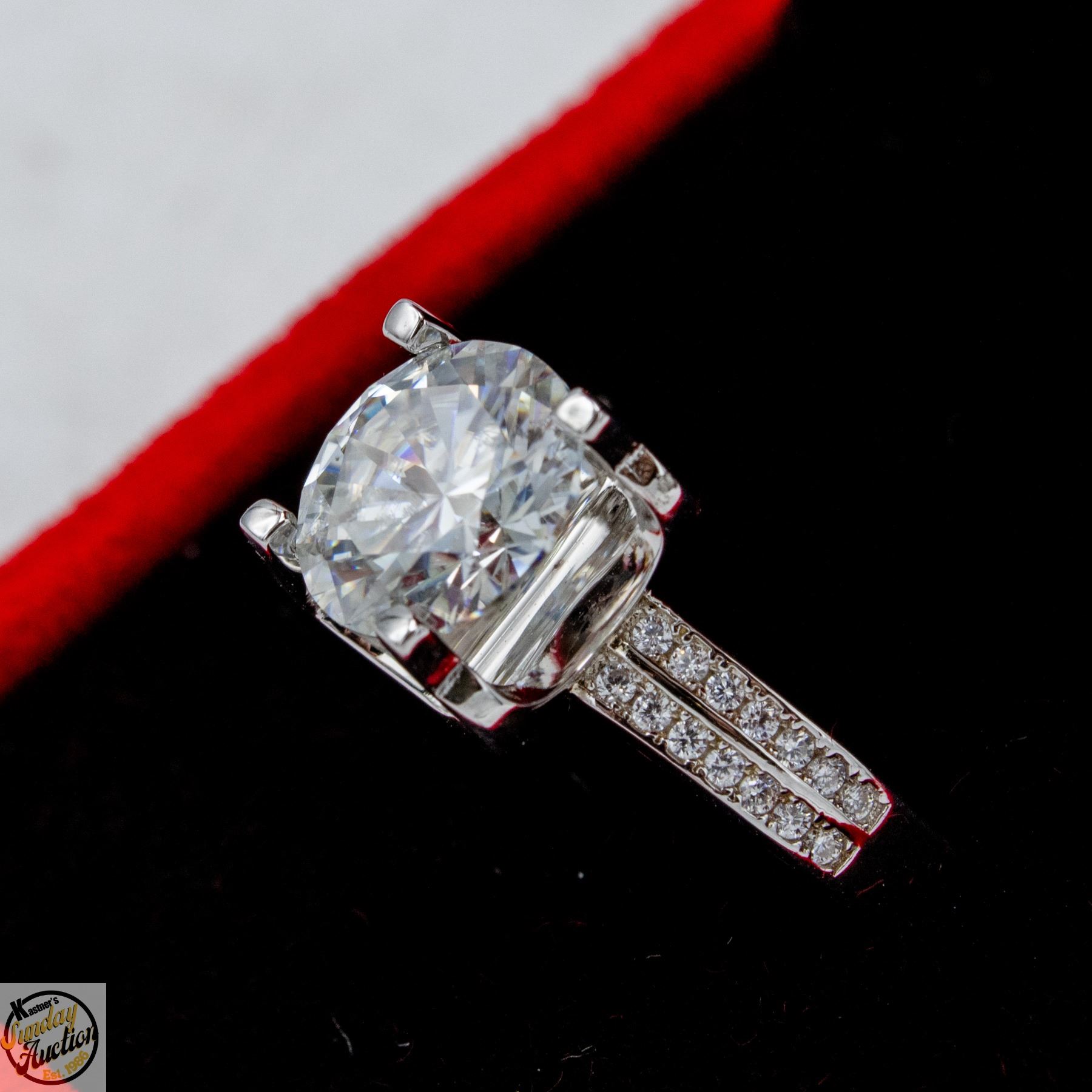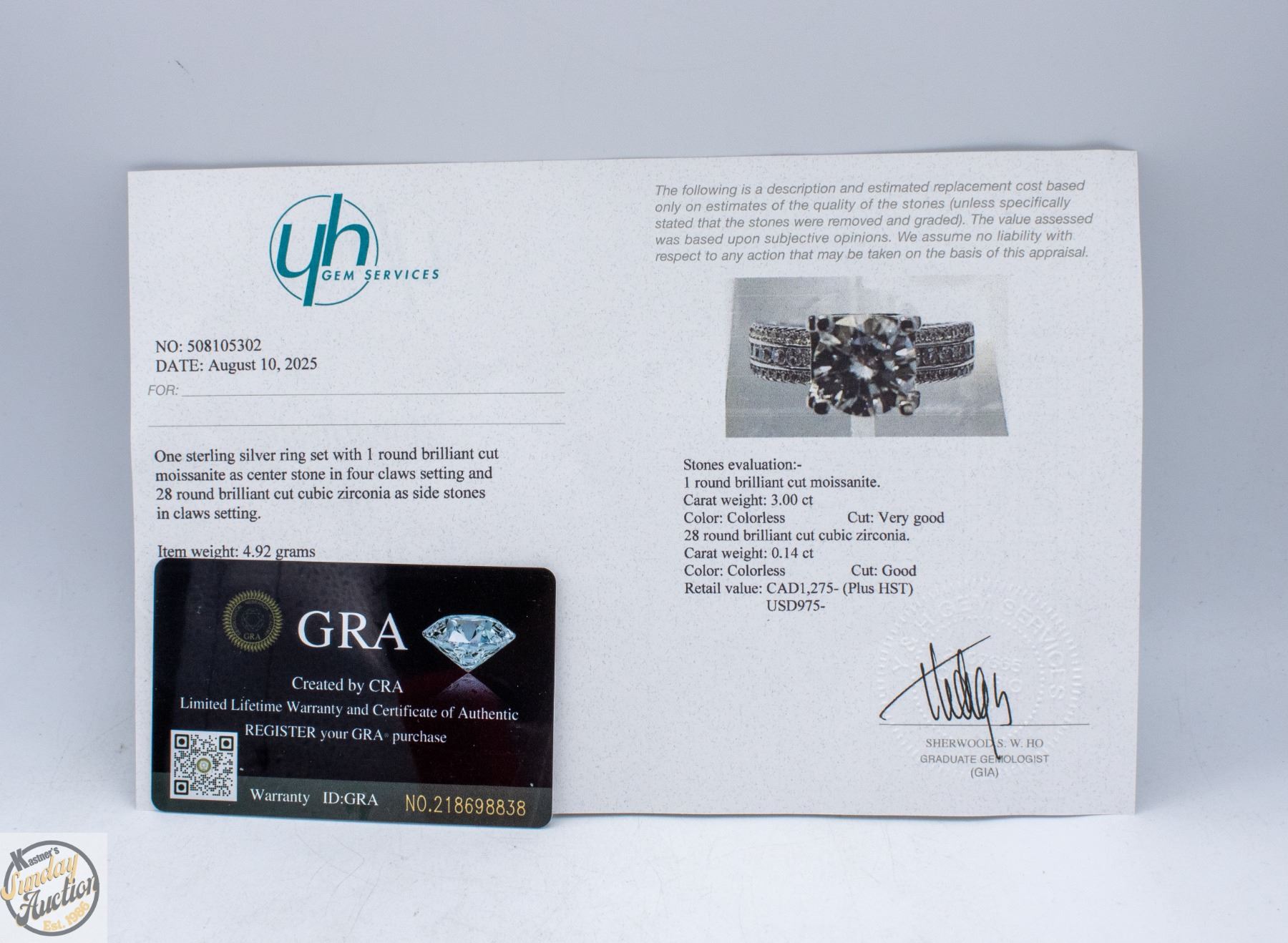 BRILLIANT CUT MOISSANITE STONE VVS D COLOR WITH 28 ROUND BRILLIANT CUT CUBIC ZIRCONIA SET IN 2 ROWS IN SHANKS SET IN 925 SILVER RING SIZE 7 RETAIL VALUE $1,275.00 **ALL ITEMS MUST BE REMOVED BY 5PM SATURDAY, APRIL 25TH 2026. ALL REMAINING ITEMS WILL BE SUBJECT TO A $6.00 PER DAY STORAGE CHARGE. ANY ITEMS REMAINING AFTER MONDAY, MAY 11TH 2026 WILL BE CONSIDERED FORFEITED. NO REFUNDS WILL BE ISSUED FOR FORFEITED ITEMS. TO SCHEDULE A PICK UP APPOINTMENT CLICK HERE