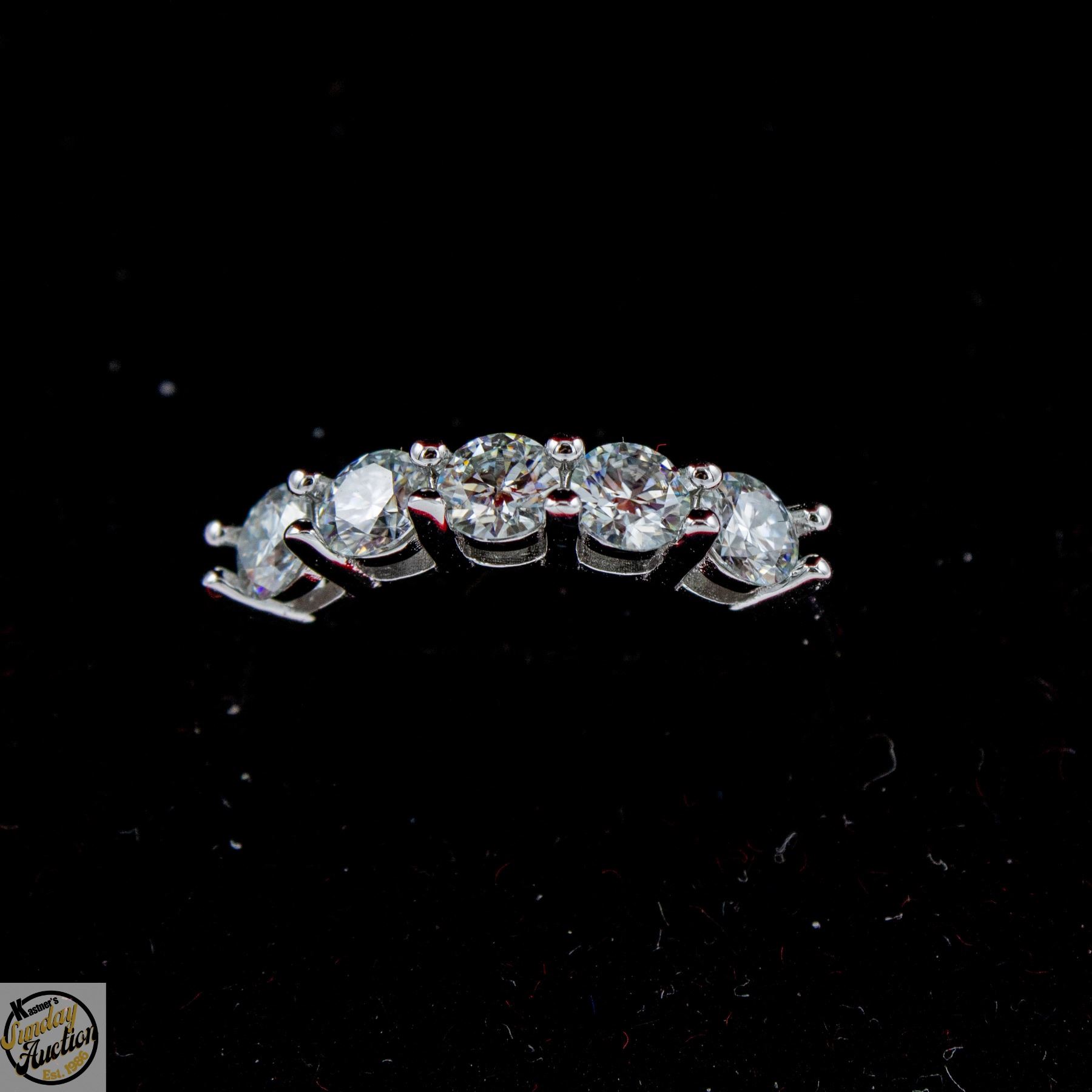 BRILLIANT CUT MOISSANITE STONES VVS D COLOR WITH THE 5 SET IN 4 CLAW HEADS SET IN 925 SILVER RING SIZE 7 **ALL ITEMS MUST BE REMOVED BY 5PM SATURDAY, APRIL 25TH 2026. ALL REMAINING ITEMS WILL BE SUBJECT TO A $6.00 PER DAY STORAGE CHARGE. ANY ITEMS REMAINING AFTER MONDAY, MAY 11TH 2026 WILL BE CONSIDERED FORFEITED. NO REFUNDS WILL BE ISSUED FOR FORFEITED ITEMS. TO SCHEDULE A PICK UP APPOINTMENT CLICK HERE