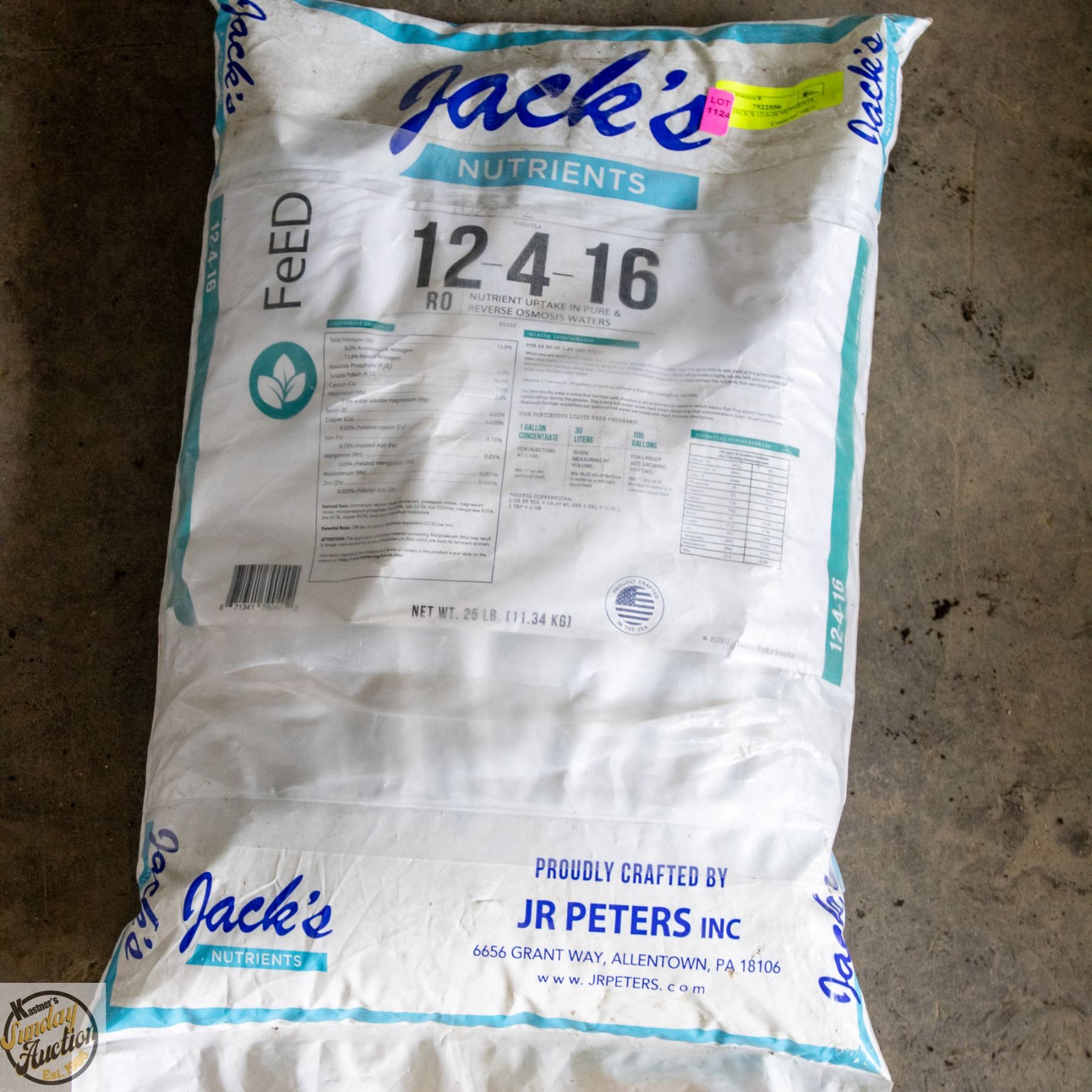 Lot 1124 25 LBS JACK’S 12-4-16 NUTRIENTS VEG