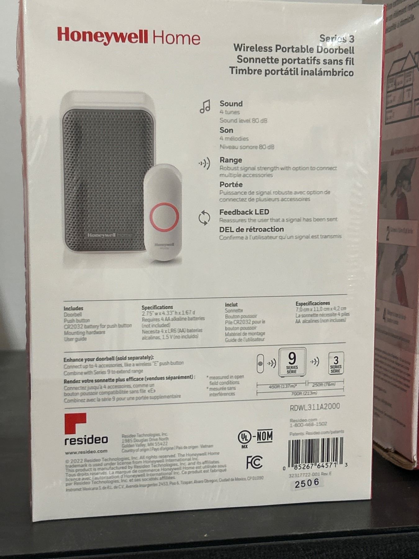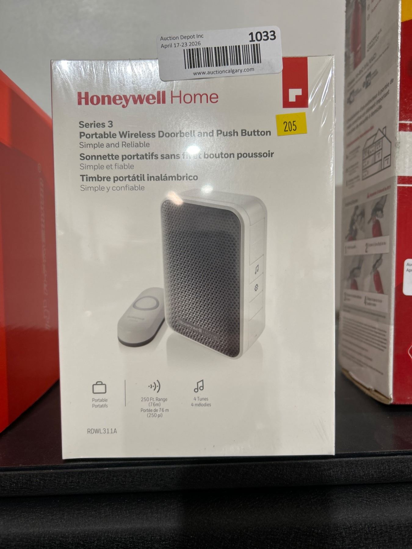 Lot 1033 Honeywell Home Series 3 Wireless Doorbell with Portable Speaker