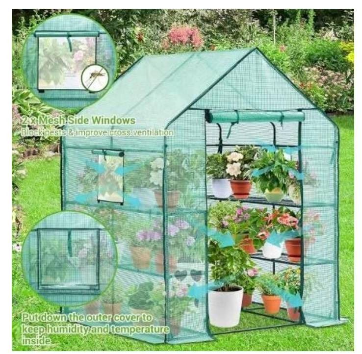 FCL Walk-In Greenhouse 56in x 56in x 77in with PE Cover and Zipper Front Roll-Up Access