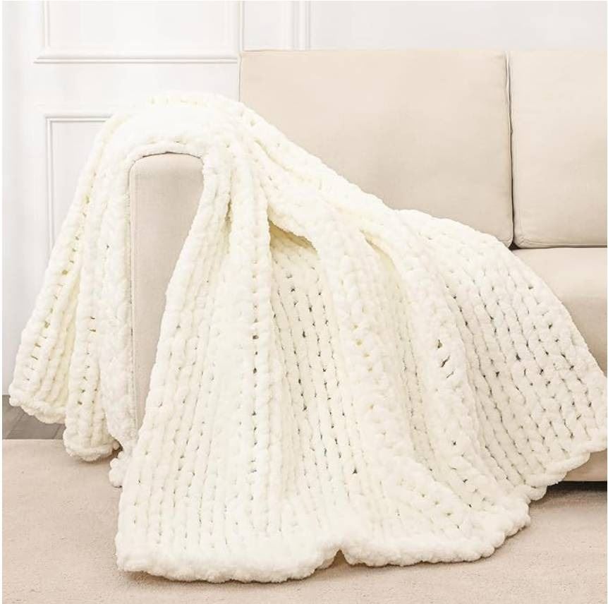 60" x 80" Bigacogo Chunky Knit Blanket Throw for Couch or Bed, White