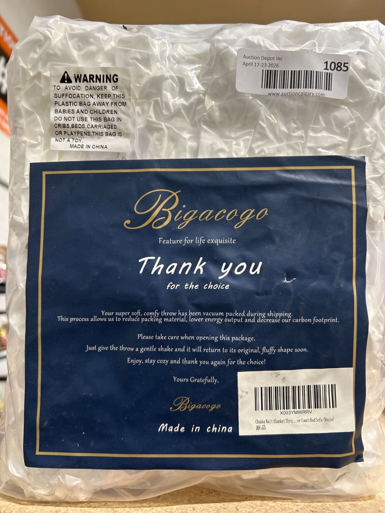 Lot 1085 60" x 80" Bigacogo Chunky Knit Blanket Throw for Couch or Bed, White