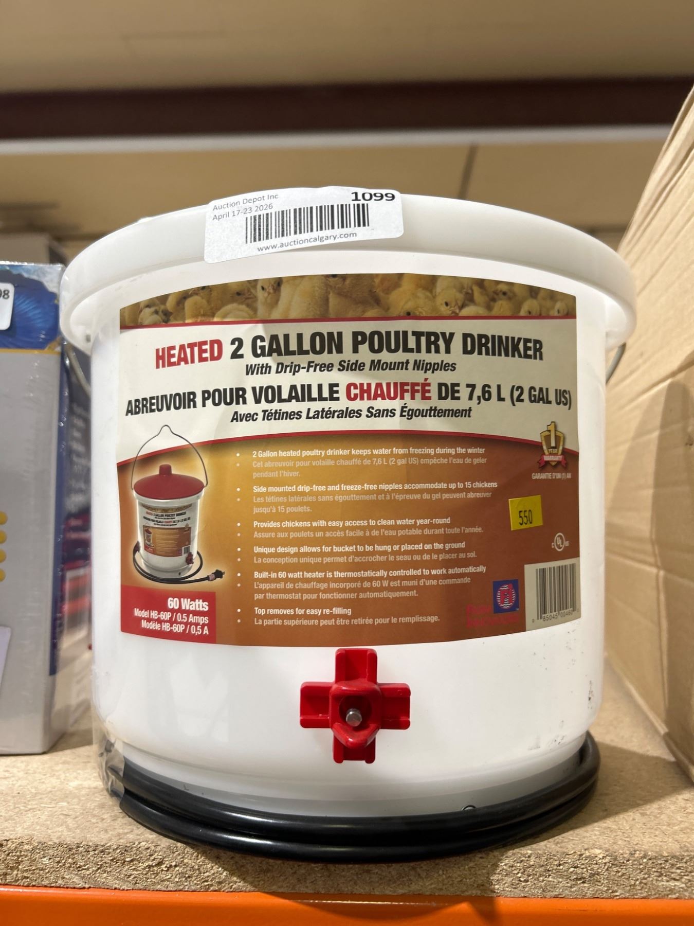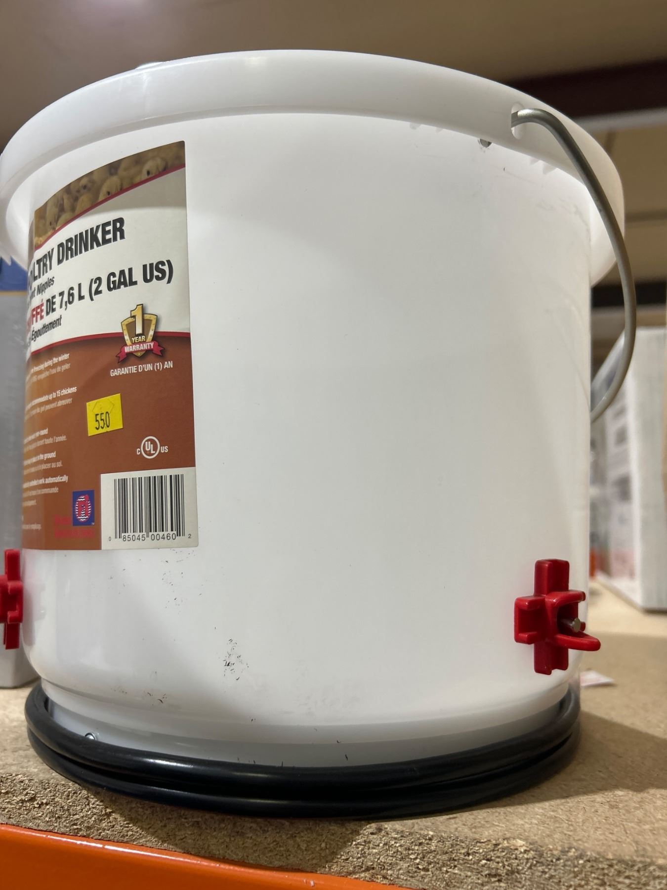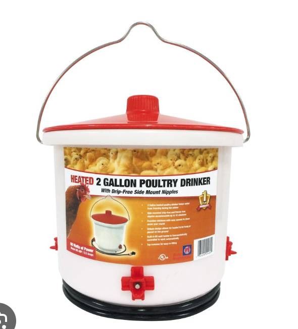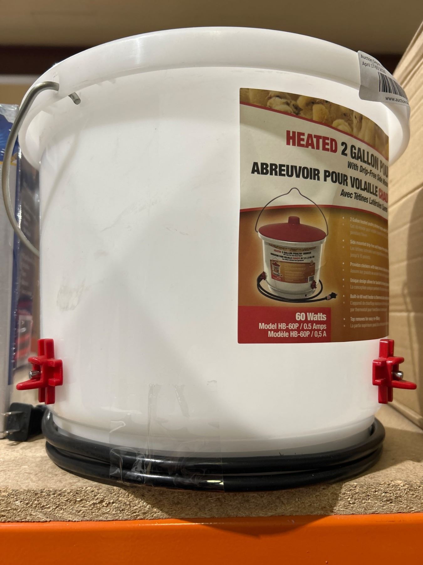 Lot 1099 Heated 2 Gallon Poultry Drinker with Drip-Free Side Mount Nipples **NO LID**