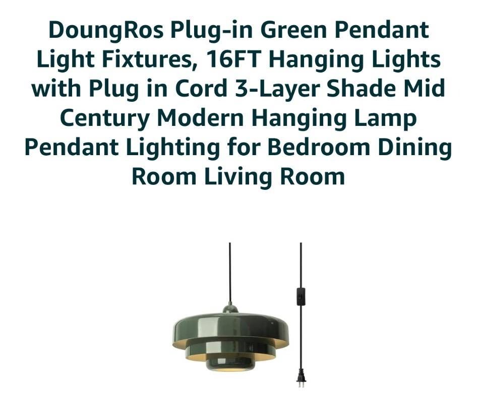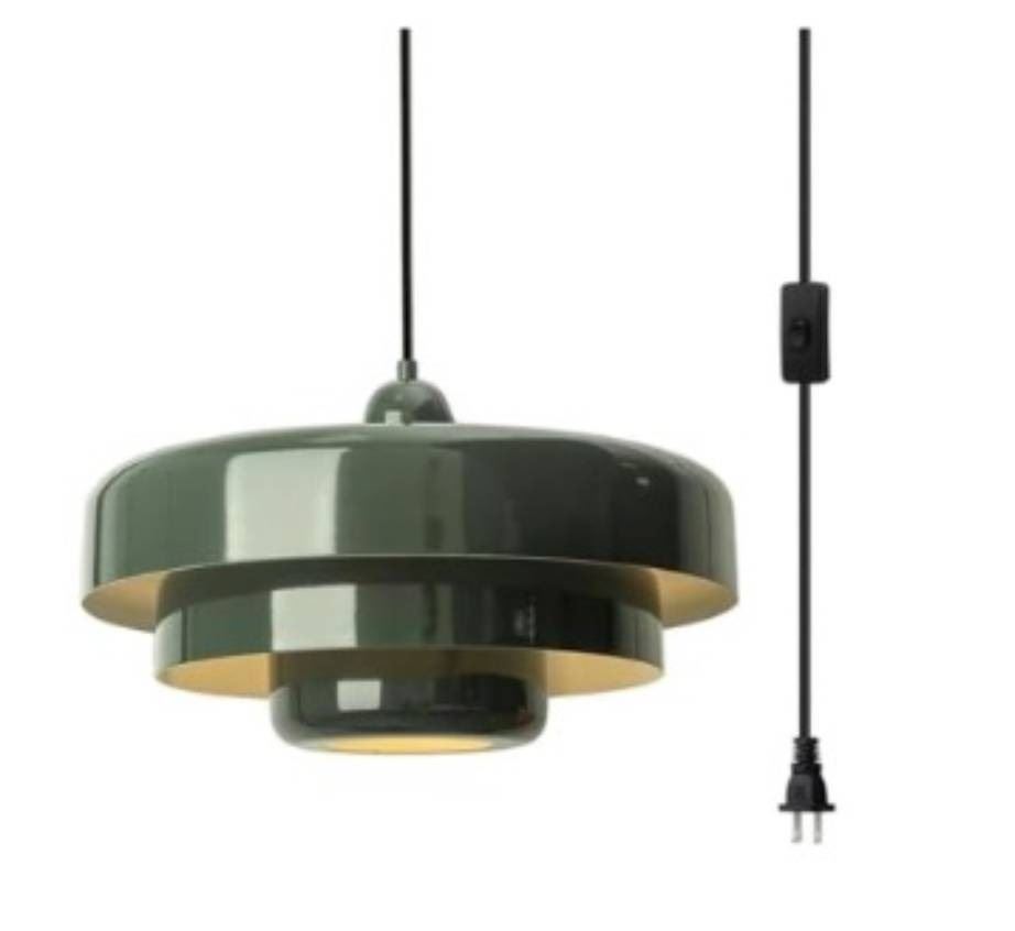 DoungRos Plug-in Green Pendant Light Fixture, 16FT Cord, 3-Layer Shade Design