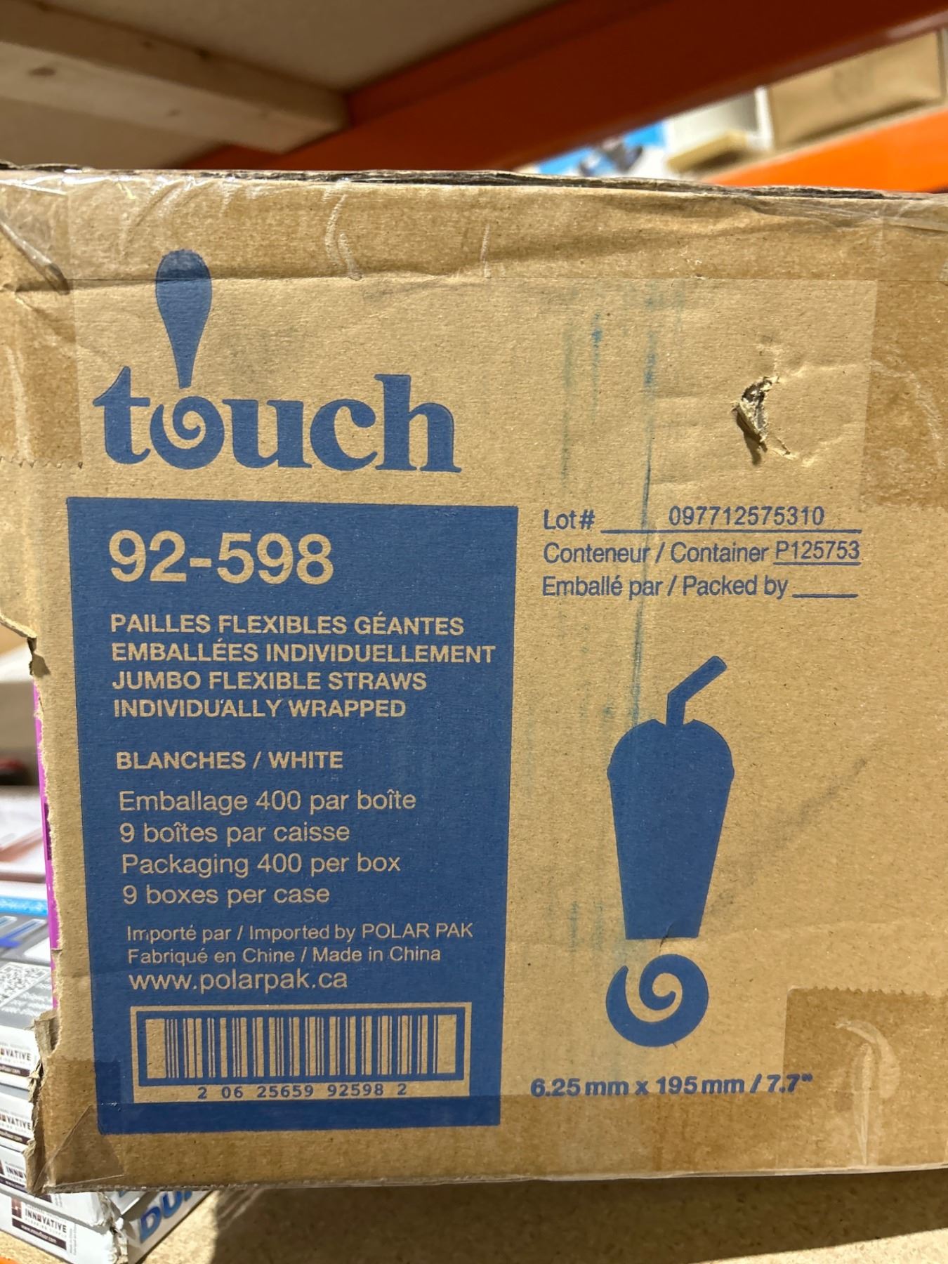 Lot 1116 Lot of 9 Boxes - Touch 92-598 Jumbo Flexible Straws Individually Wrapped, 400 Count per Box