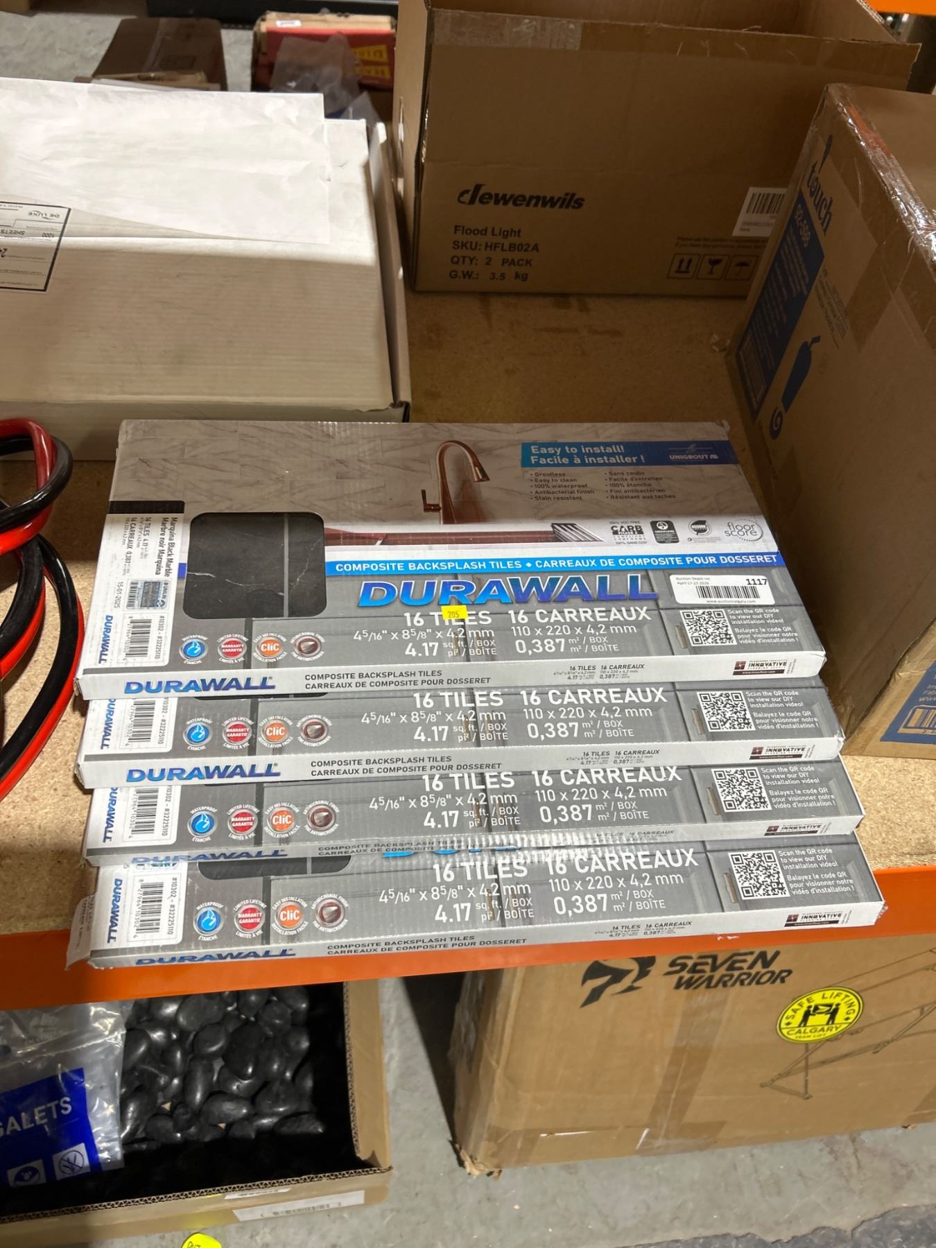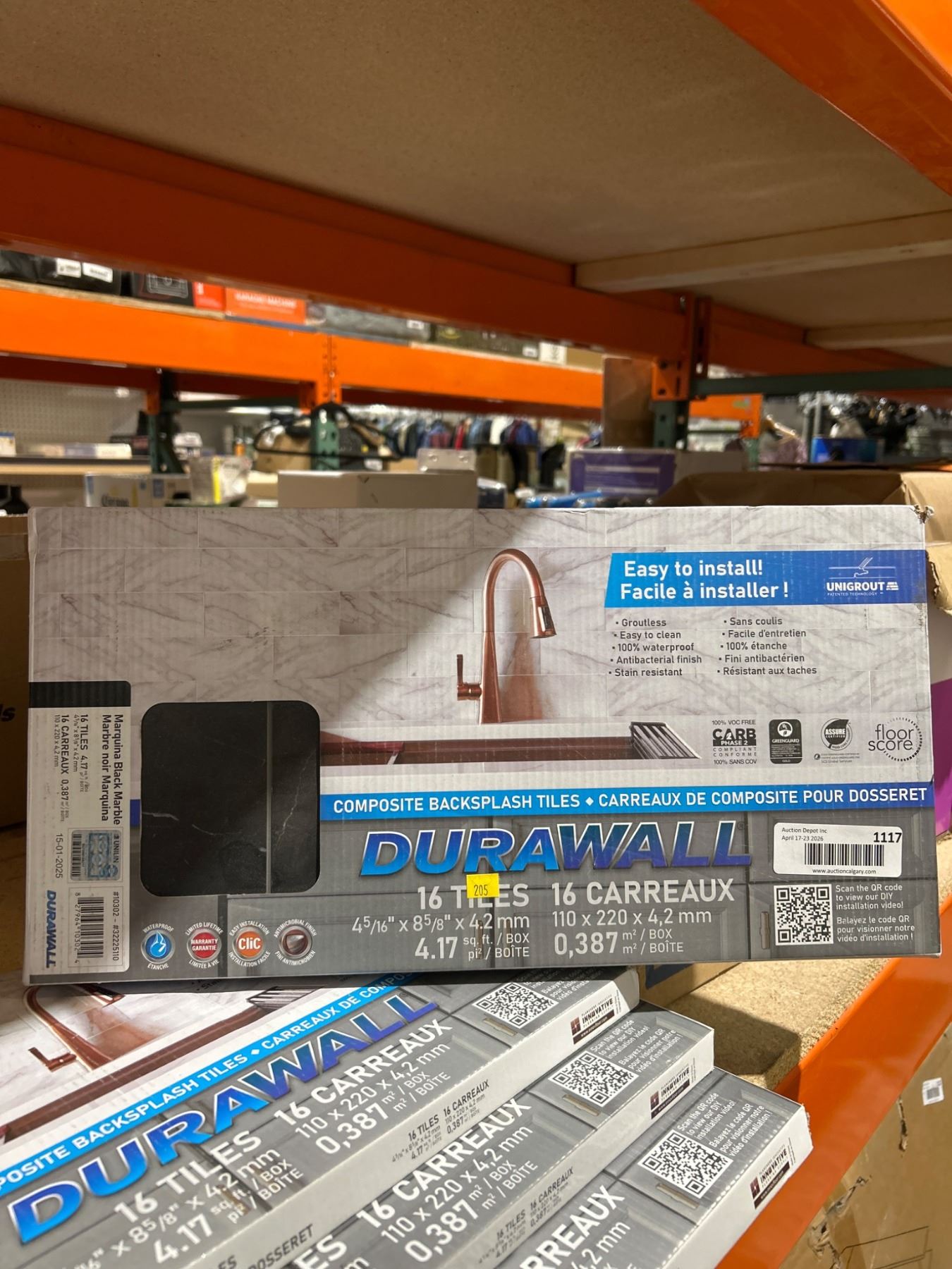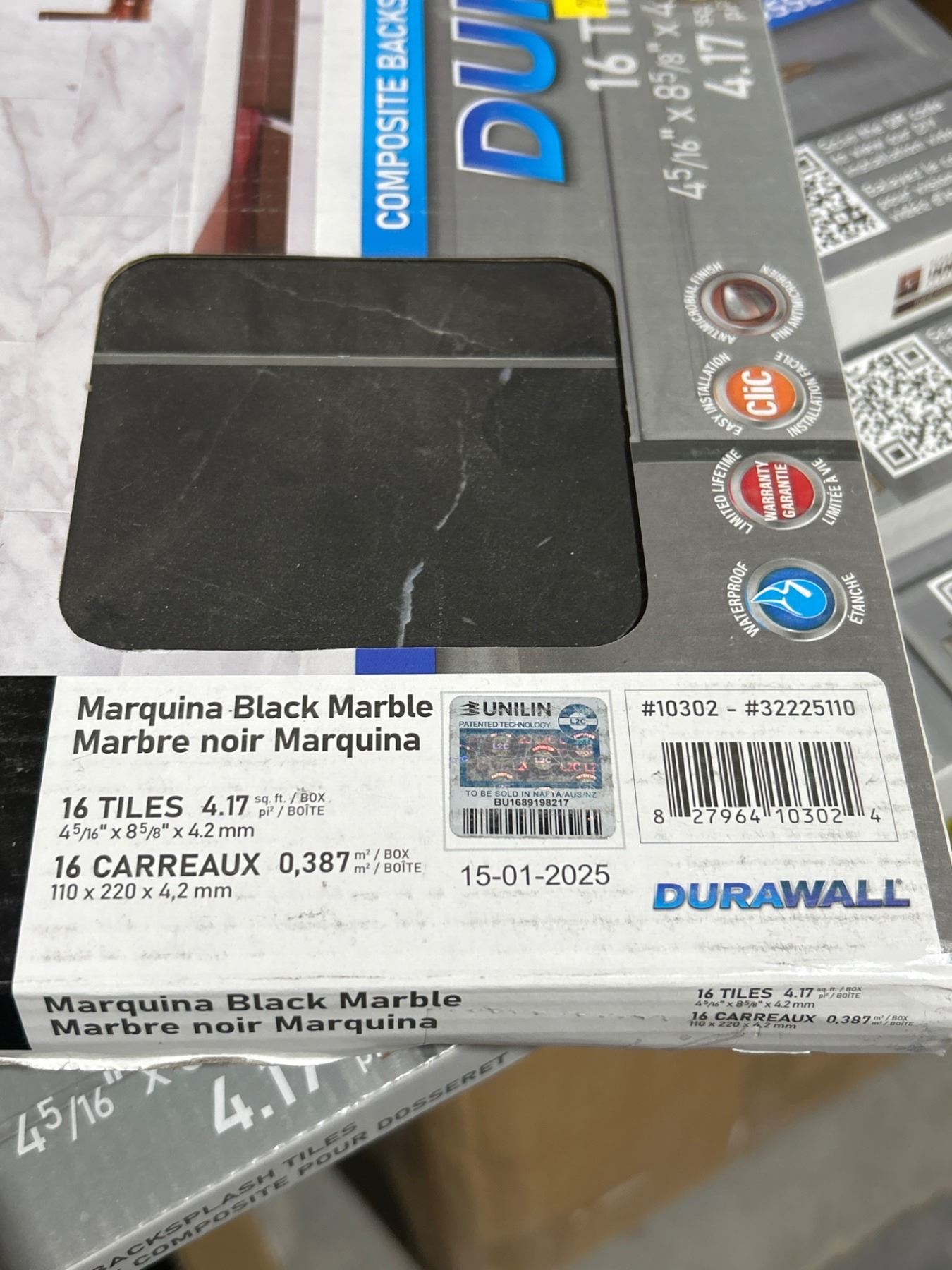 Lot 1117 Lot of 3 - DuraWall 16-Pack Black Marquina 4.33 x 8.67-in Vinyl Glue-Up Tiles