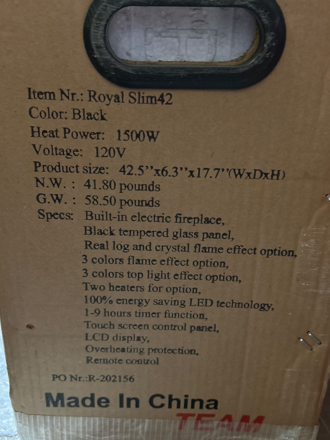 Royal Slim42 Electric Fireplace, 42-Inch, 1500W, Black **May Vary Slightly From Stock Photo**