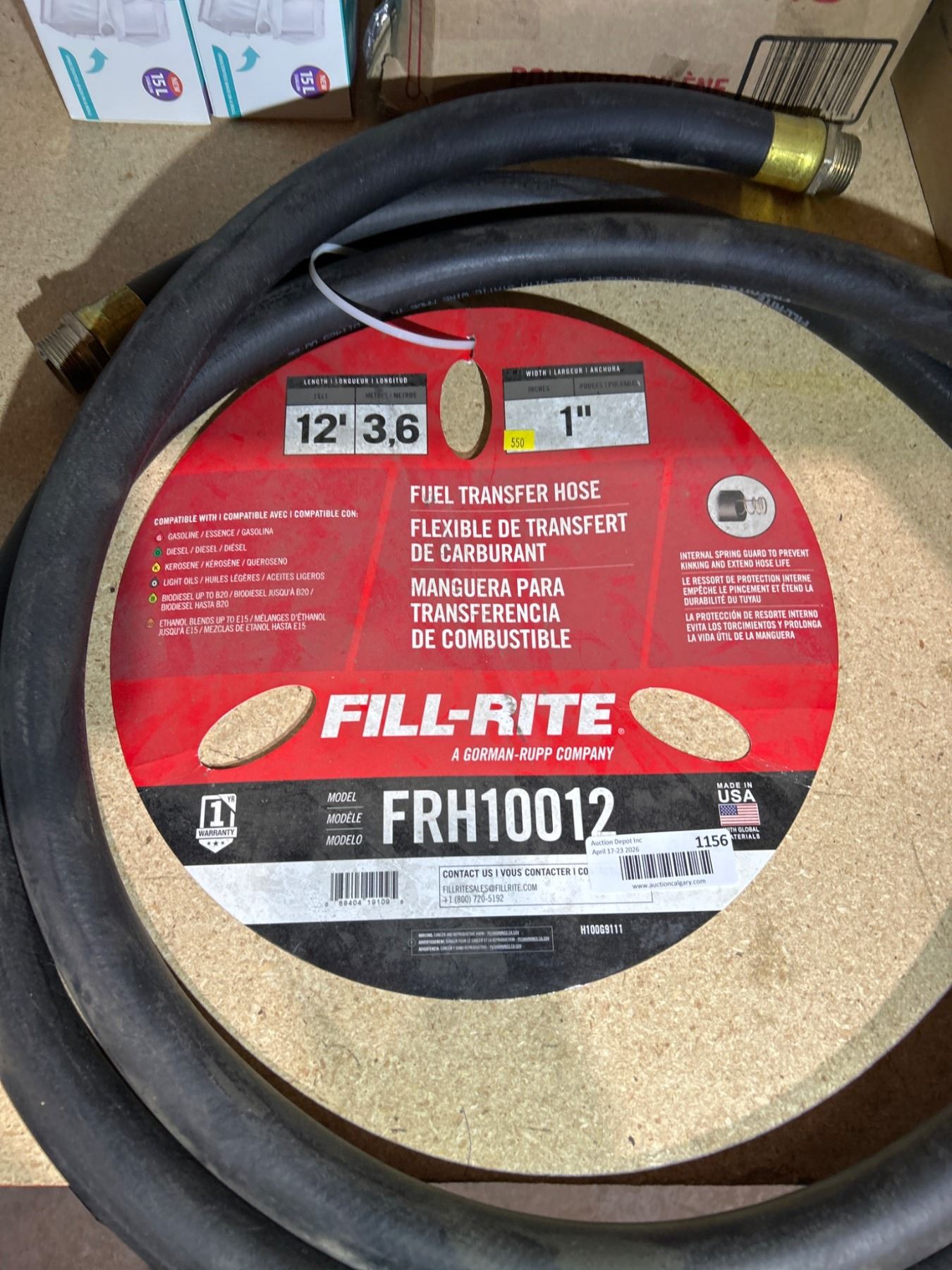 Lot 1156 Fill-Rite FRH10012 12 ft Fuel Transfer Hose with 1 in Diameter **Hose Only**