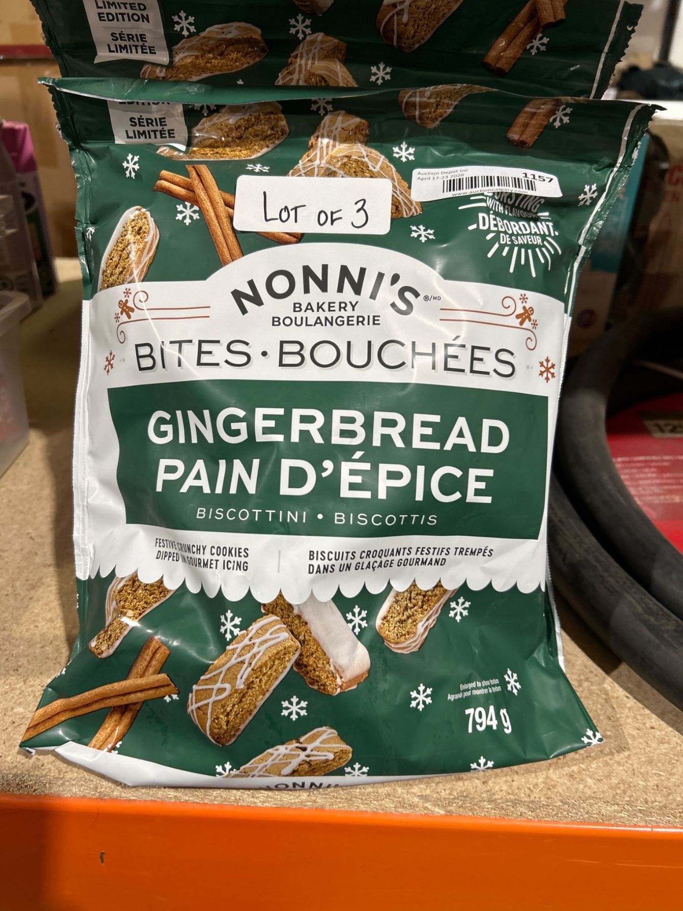 Lot 1157 Nonni's Bakery Bites Bouchées Gingerbread Biscotti 794g Lot of 3
