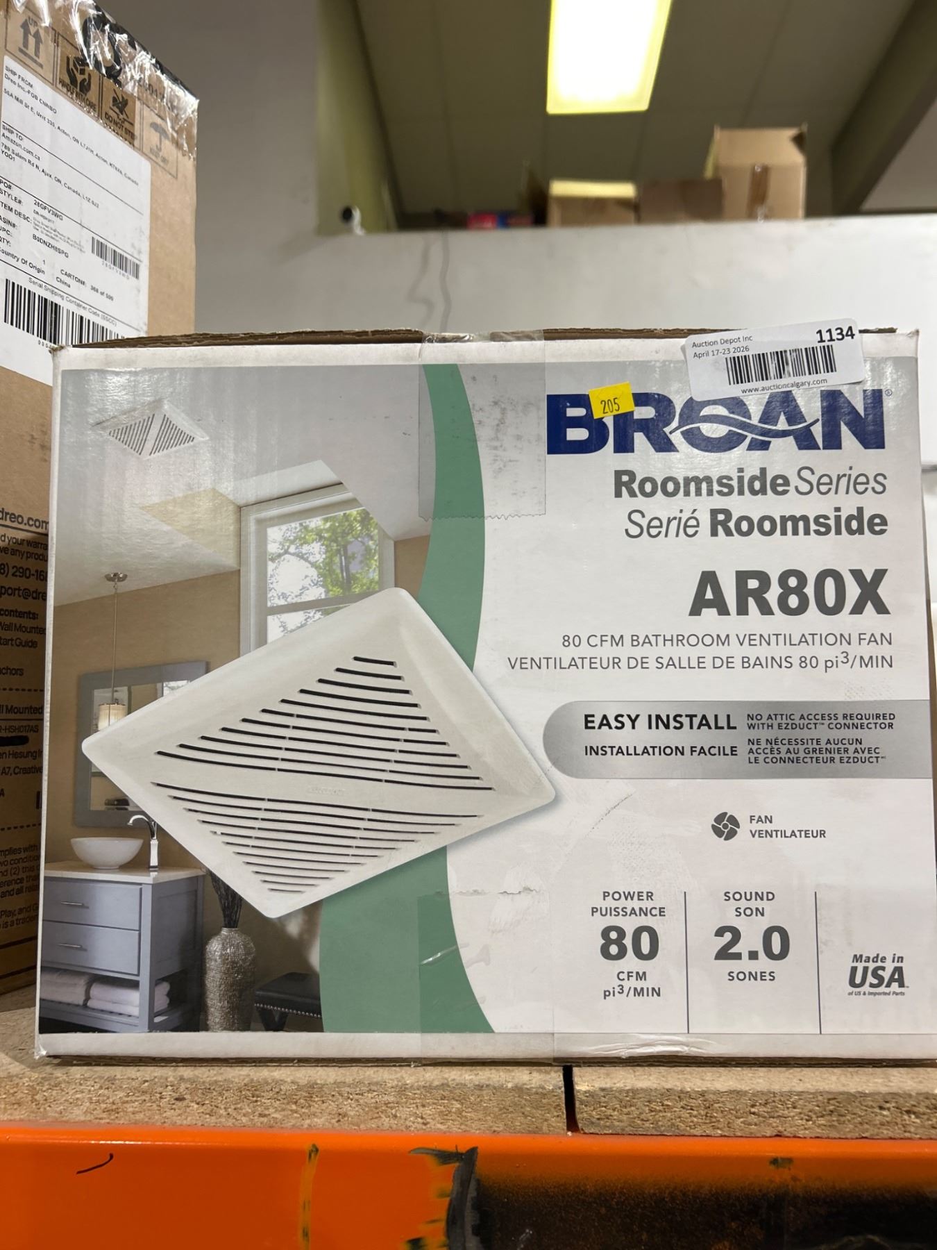 Lot 1190 Broan AR80X Roomside Bathroom Ventilation Fan, 80 CFM, 2.0 Sones