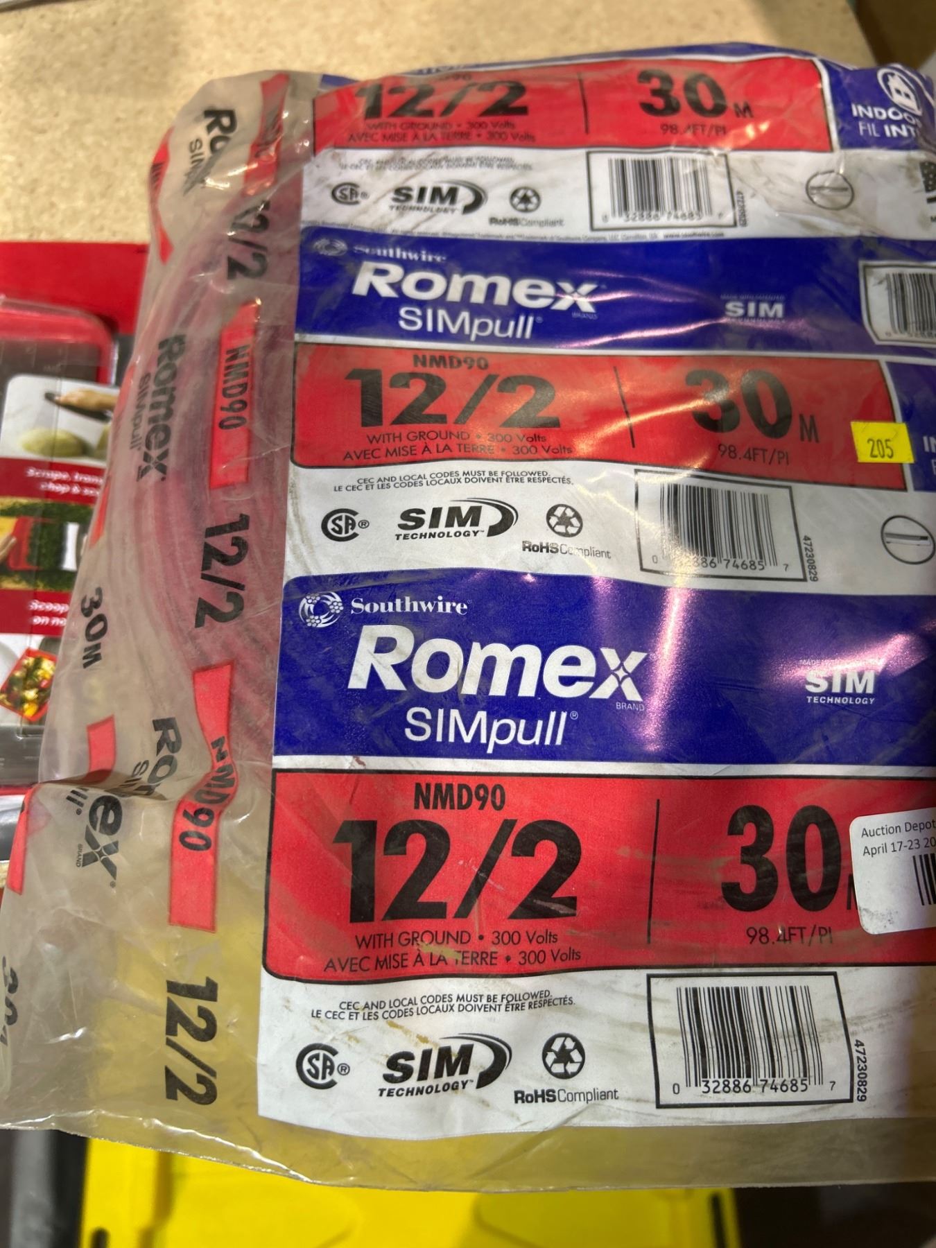 Lot 1191 Southwire 12/2 NMD90 30M Romex SIMpull Electrical Wire - Red