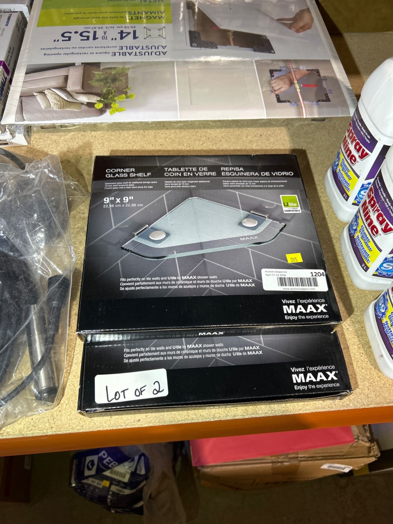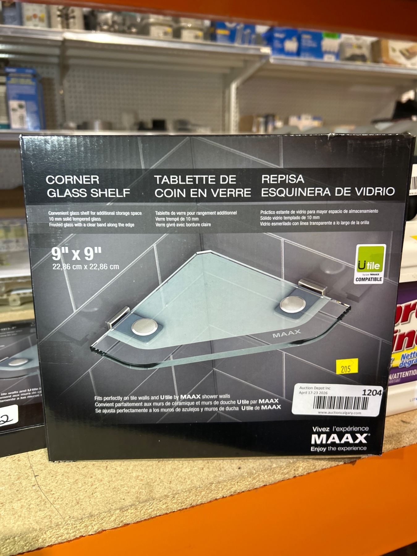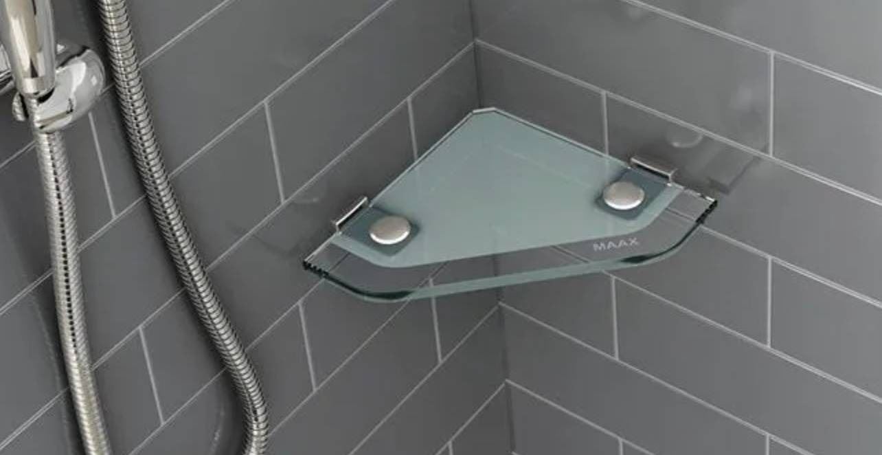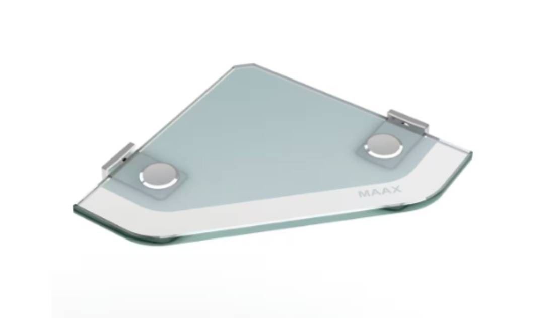 Lot 1204 Â Lot of 2 MAAX Corner Glass Shelf, 9 in x 9 in