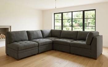 Modular Gray Fabric Sectional Sofa with Tufted Cushions and Wooden Legs