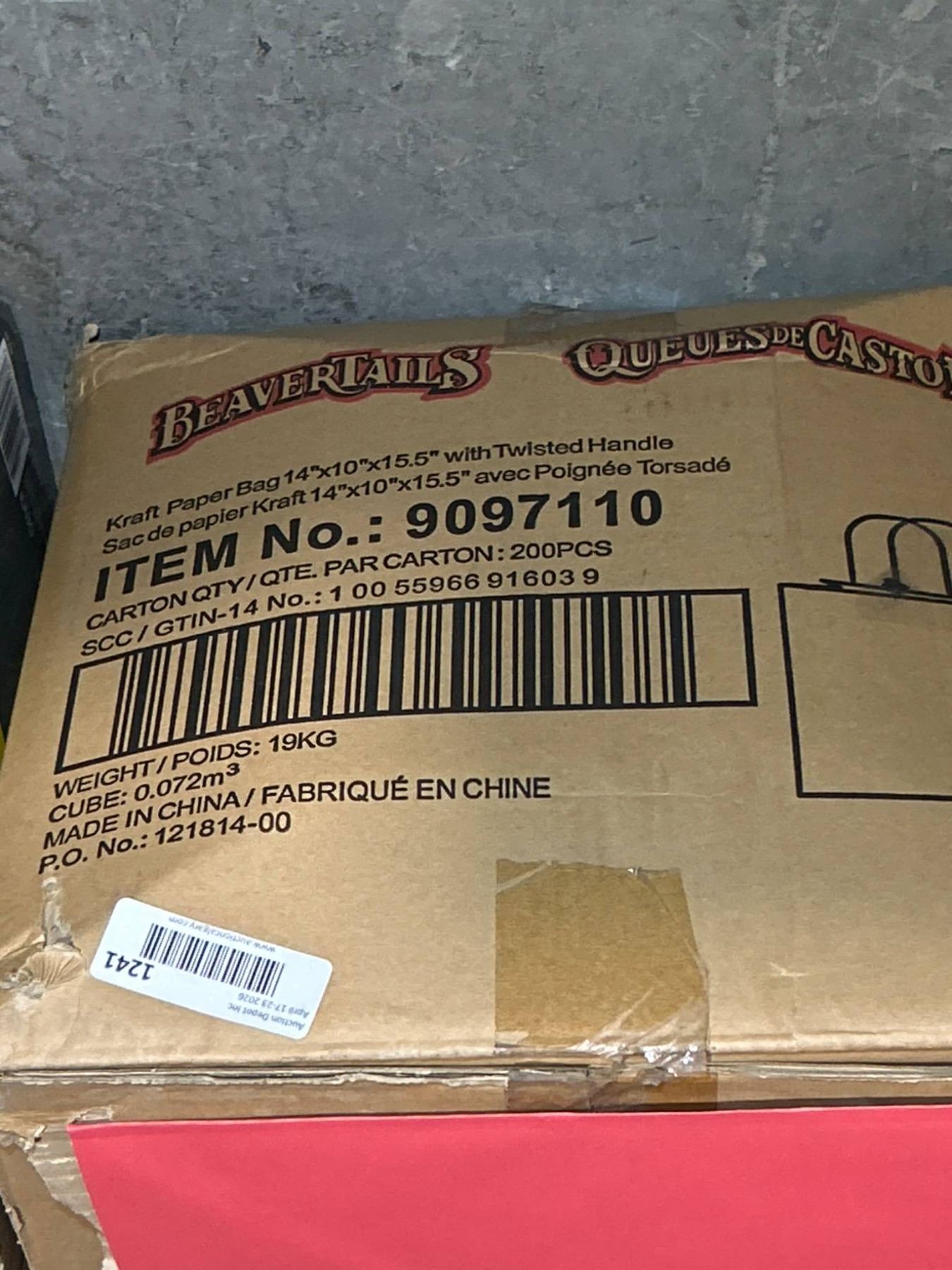 Lot 1241 BeaverTails Kraft Paper Bags With Twisted Handles, 14″ x 10″ x 15.5â€