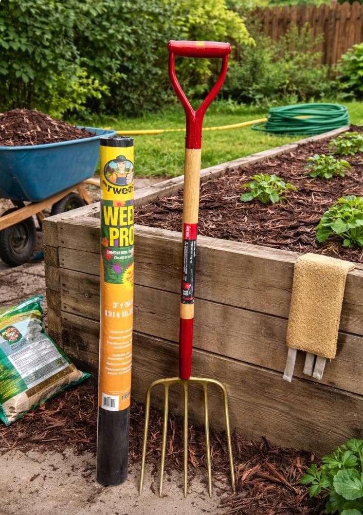 Garant Manure Fork and Dewitt Weed-Pro Landscaping Fabric