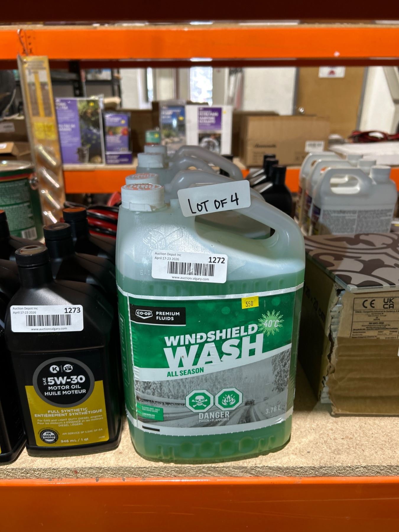 Lot 1272 Windshield Washer Fluid, All-Season, Lot of 4, Approx. 3.78 L Each