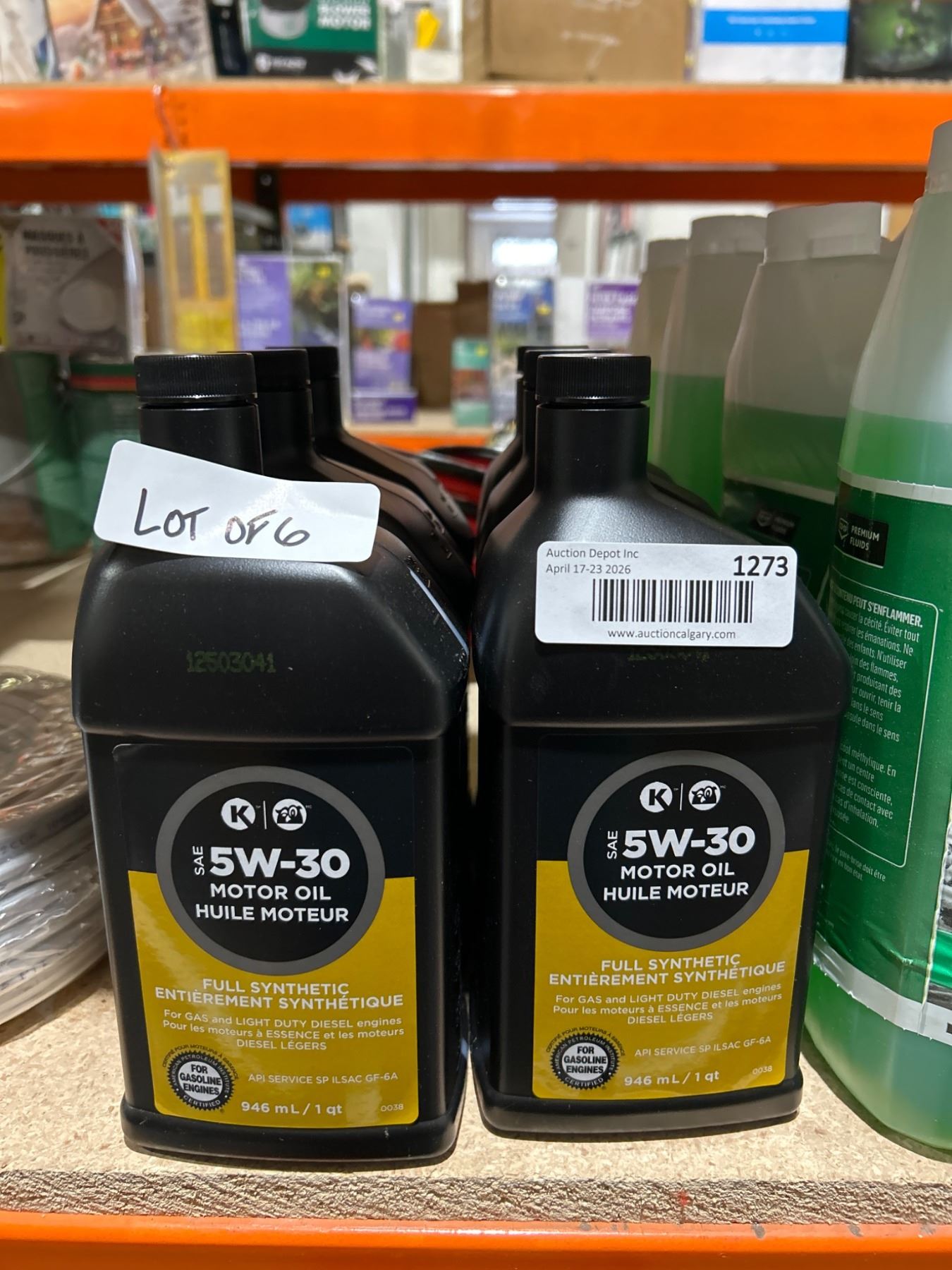 Lot 1273 LOT of 6 Circle K 5W-30 SAE Full Synthetic Motor Oil Bottles – 946 mL Each