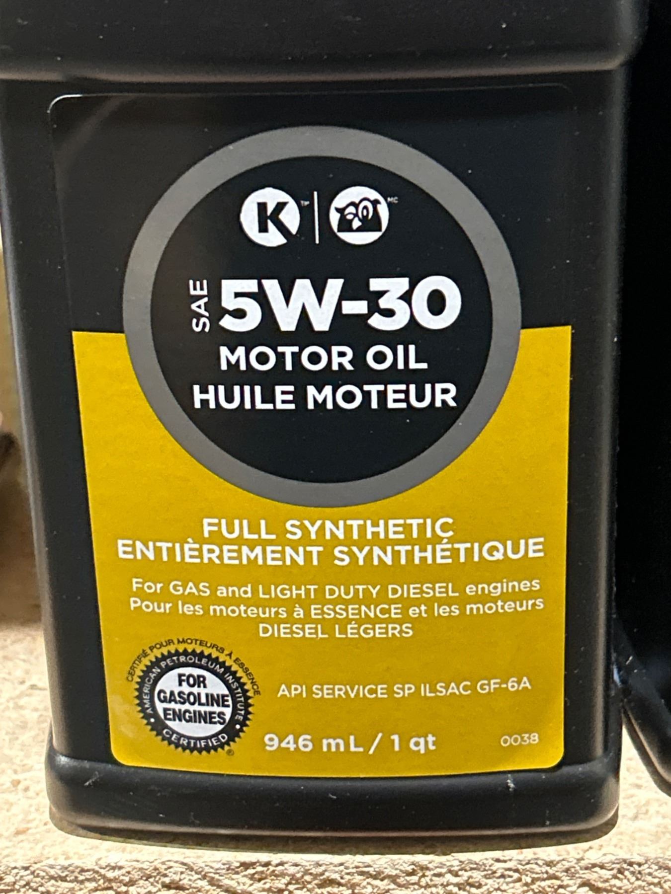 Two Circle K 5W-30 SAE Full Synthetic Motor Oil Bottles – 946 mL Each