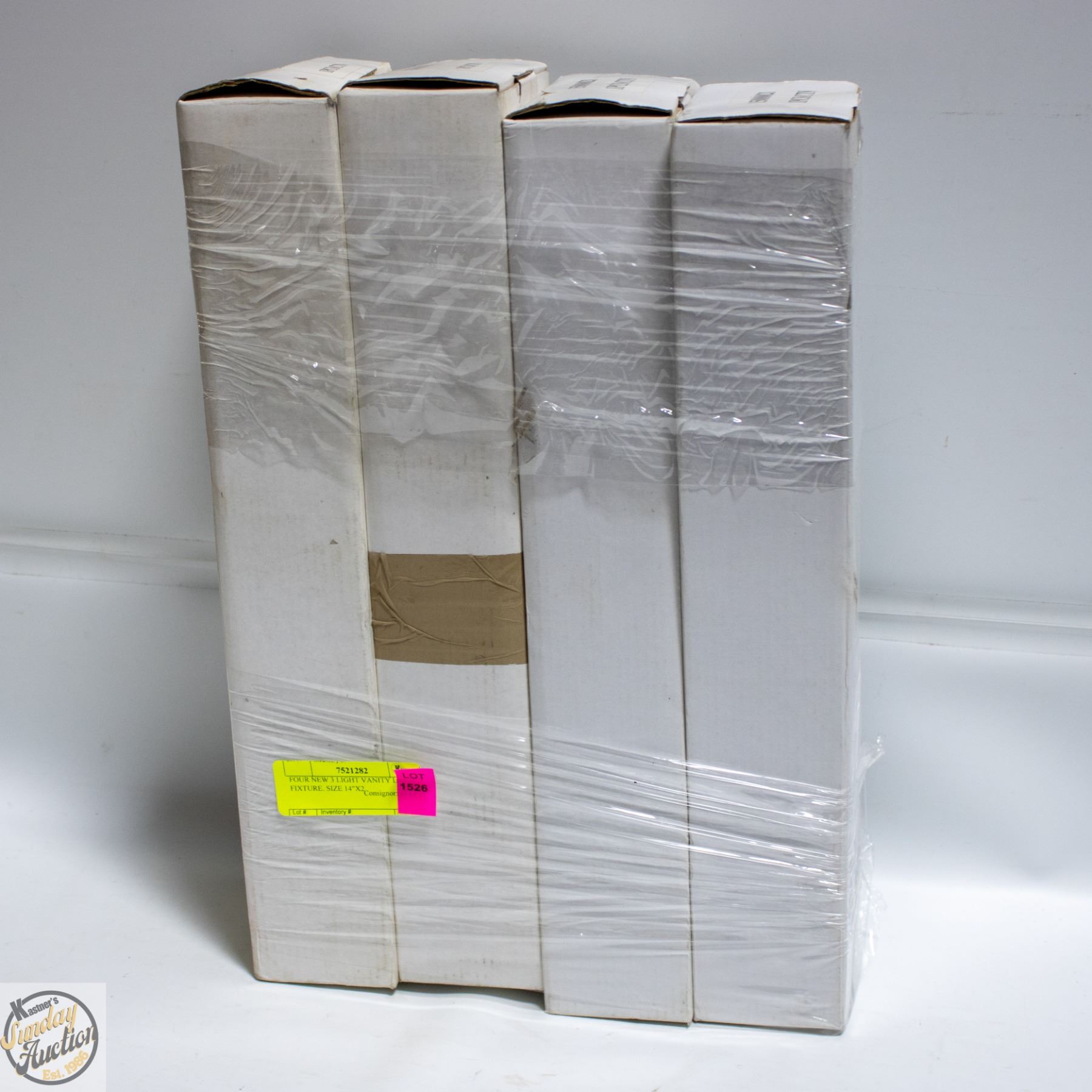 Lot 1526 FOUR NEW 3 LIGHT VANITY LIGHT FIXTURE. SIZE 14"X2