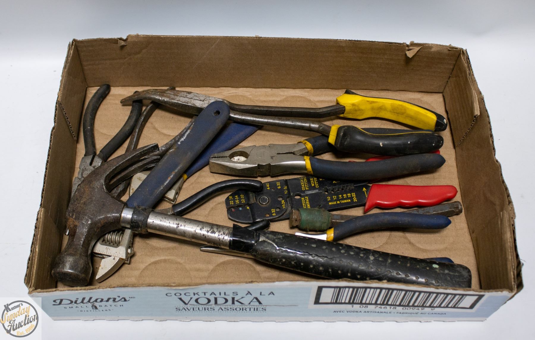 Lot 1593 FLAT W/VARIOUS HAND TOOLS GARAGE SURPLUS