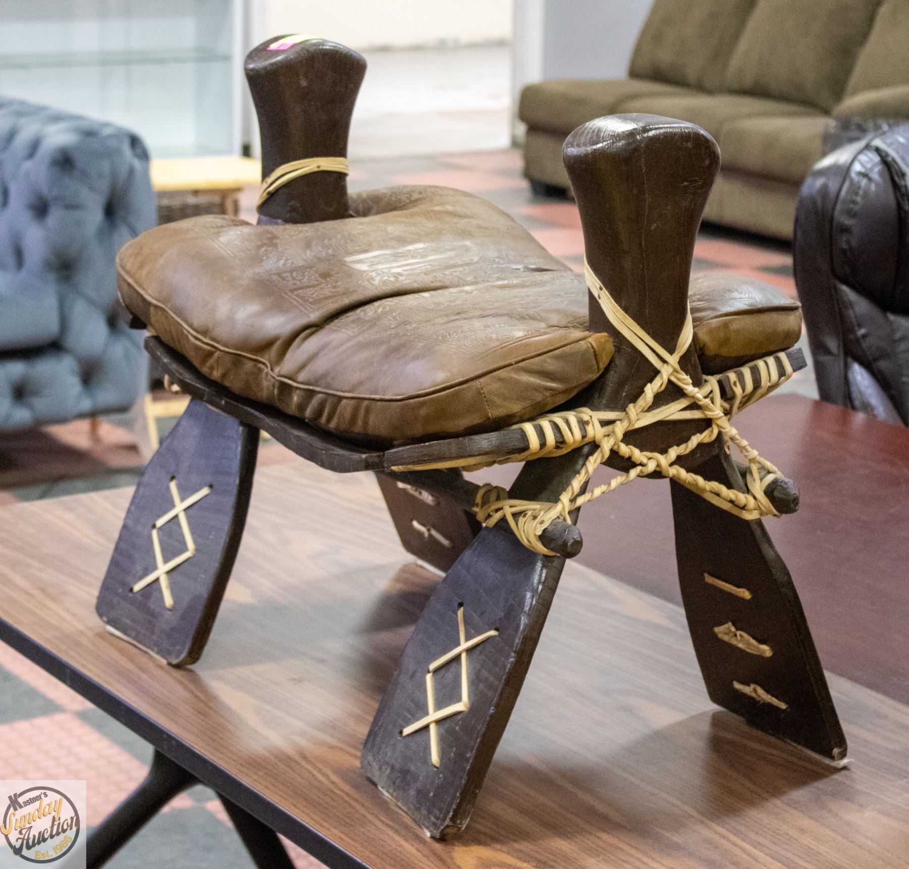 Lot 1698 VINTAGE AUTHENTIC EGYPTIAN CAMEL SADDLE CHAIR