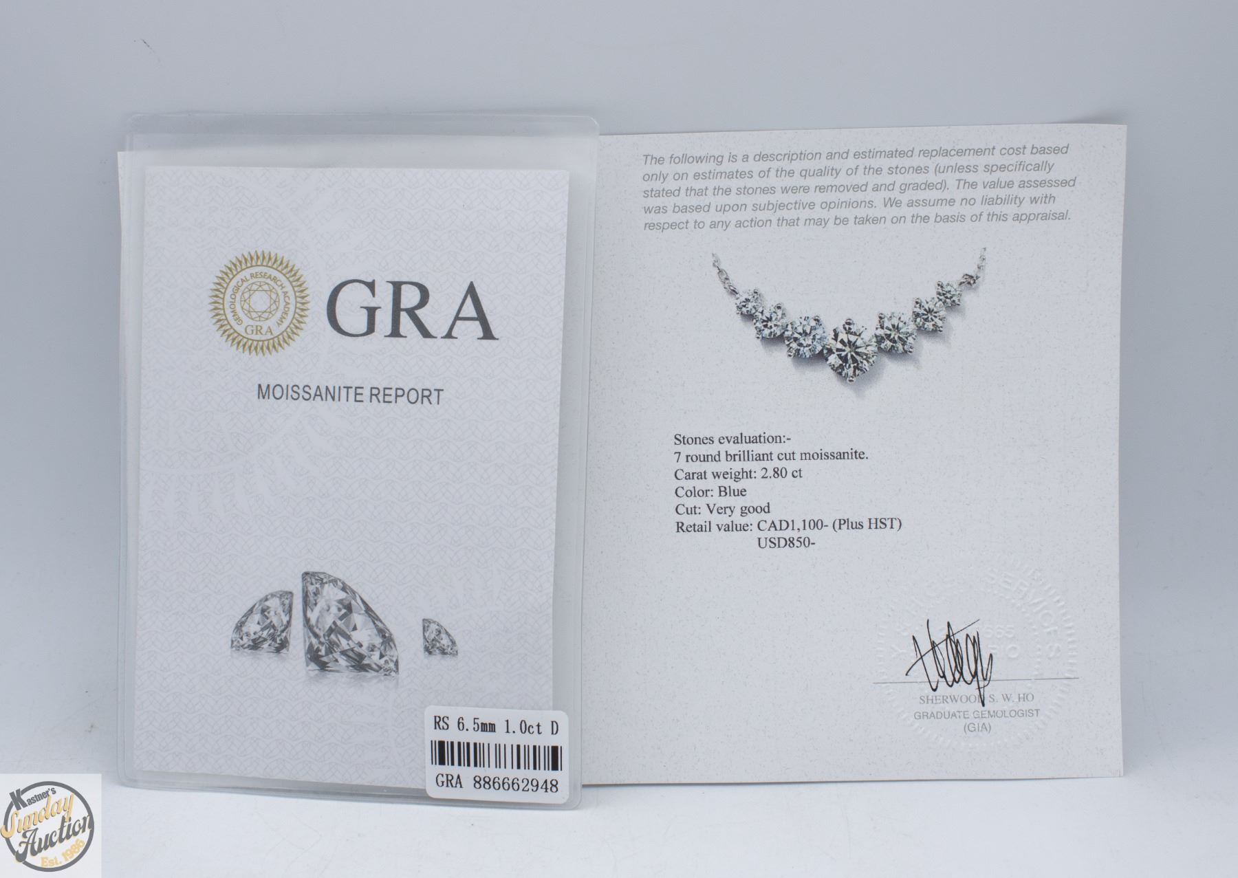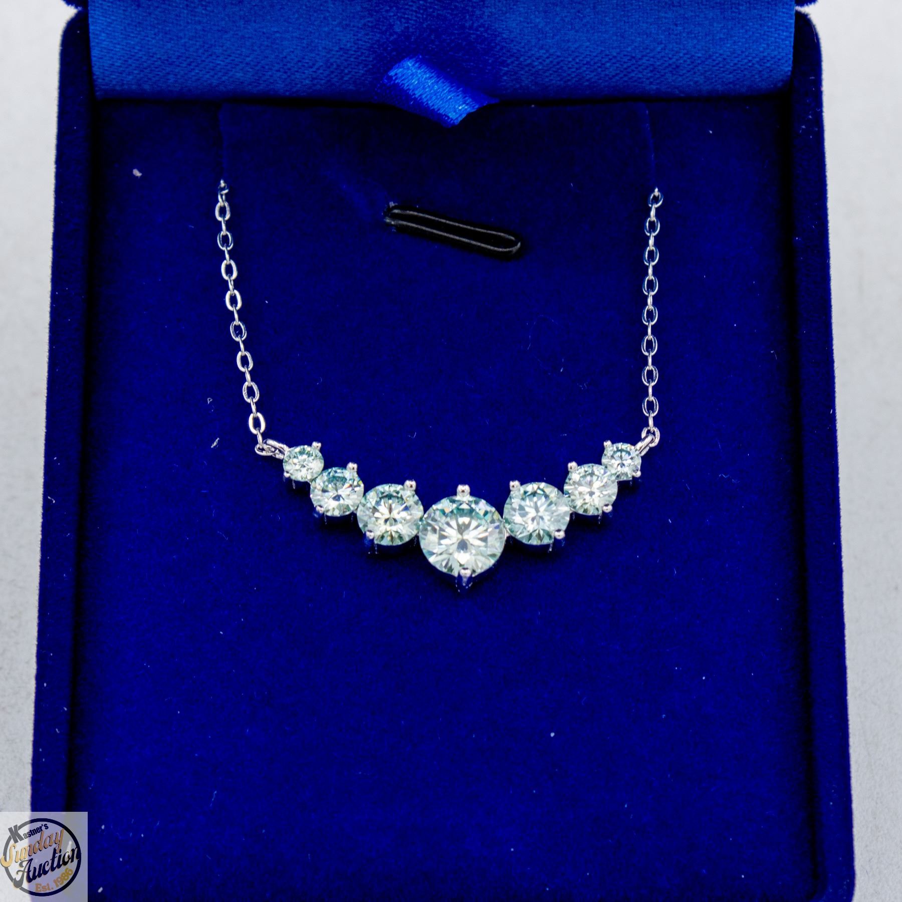 BRILLIANT CUT MOISSANITE STONES VVS BLUE COLOR WITH THE 7 MOISSANITE STONES SET GRADUATING DOWN IN SIZE FROM CENTER SET IN 925 SILVER PENDANT RETAIL VALUE $1,100.00 **ALL ITEMS MUST BE REMOVED BY 5PM SATURDAY, APRIL 25TH 2026. ALL REMAINING ITEMS WILL BE SUBJECT TO A $6.00 PER DAY STORAGE CHARGE. ANY ITEMS REMAINING AFTER MONDAY, MAY 11TH 2026 WILL BE CONSIDERED FORFEITED. NO REFUNDS WILL BE ISSUED FOR FORFEITED ITEMS. TO SCHEDULE A PICK UP APPOINTMENT CLICK HERE