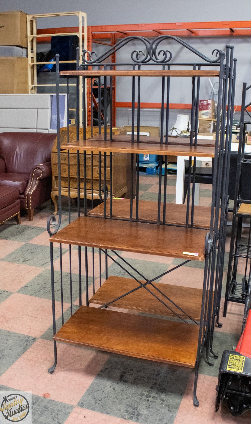 Lot 1887 LARGE CAST IRON BAKERS RACK WITH 4 SHELVES H-70"