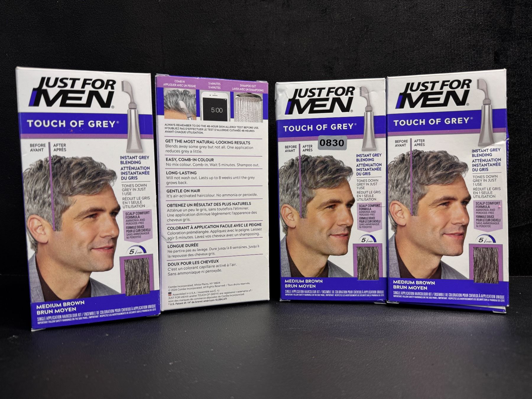 Lot 830 4 Boxes of Just for Men Touch of Grey Medium Brown - New